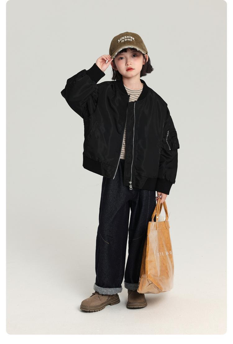 Pudding Haru Ropa Exterior para Niños 2025 Otoño Nuevo Estilo Chaqueta Bomber para Niños Diseño de Espalda Esta Semana Ropa Exterior para Niñas
