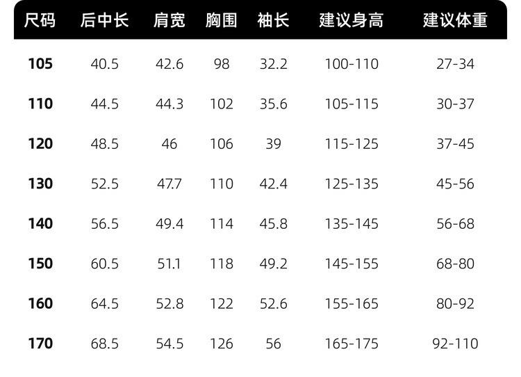 Children (3~8 years old, 100~140cm)