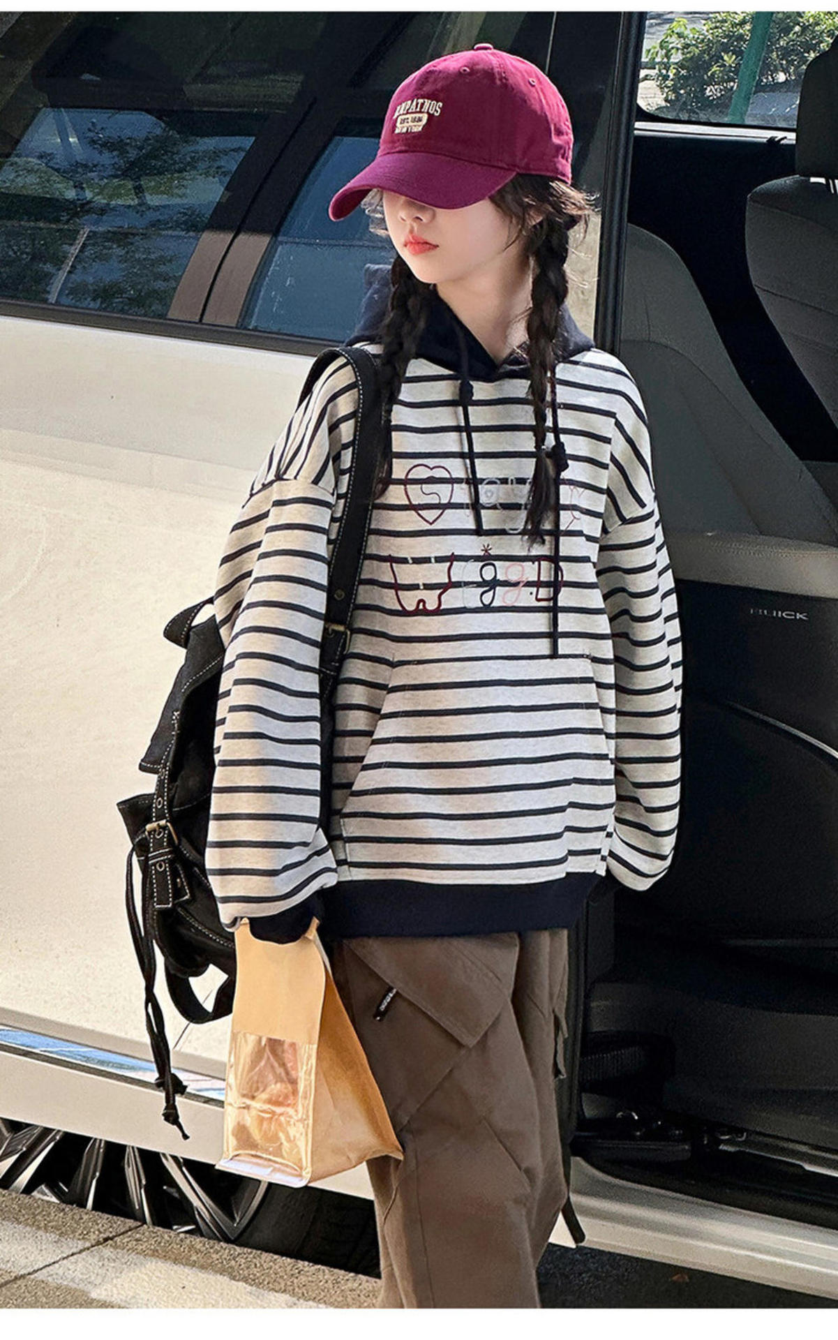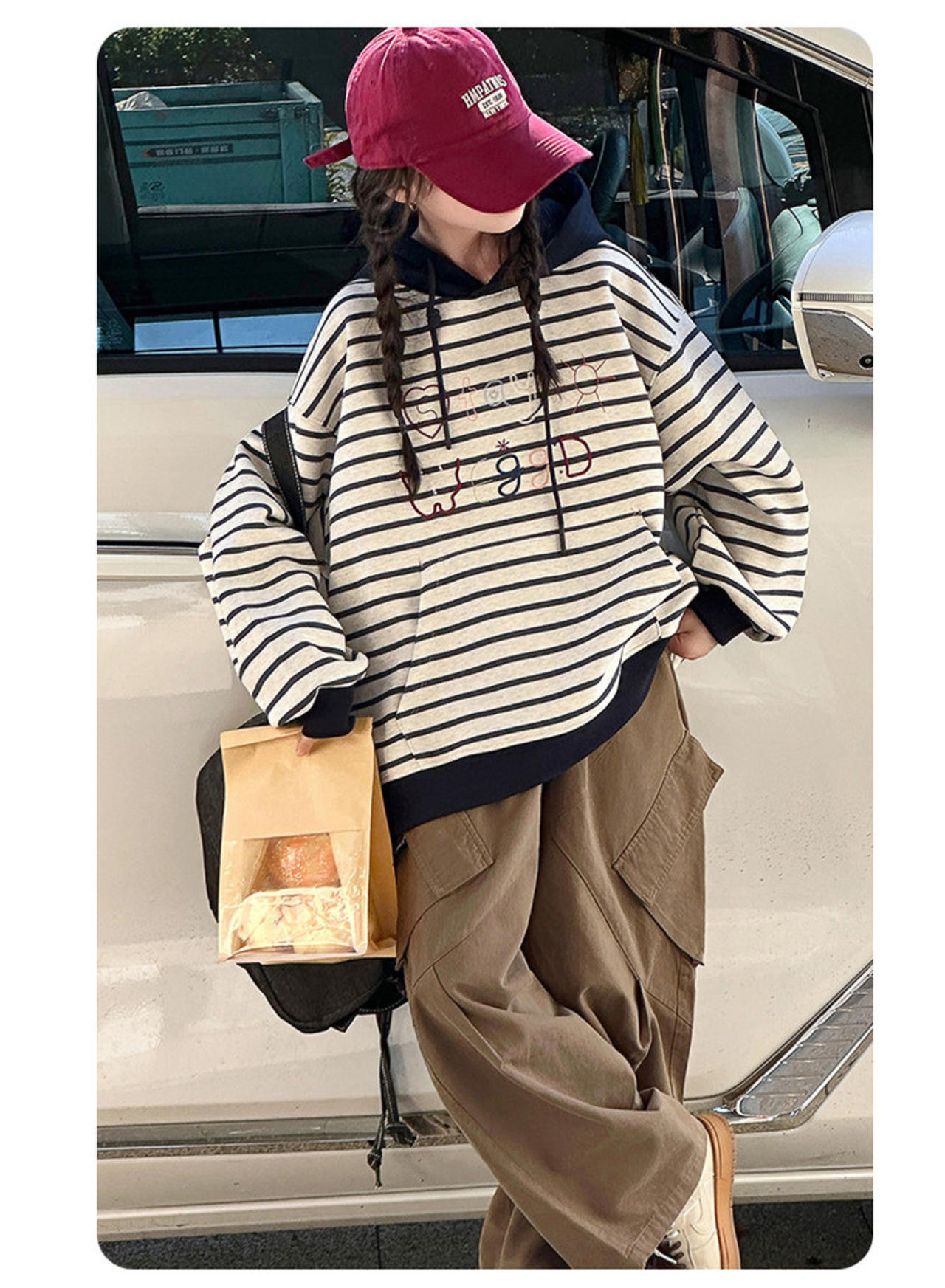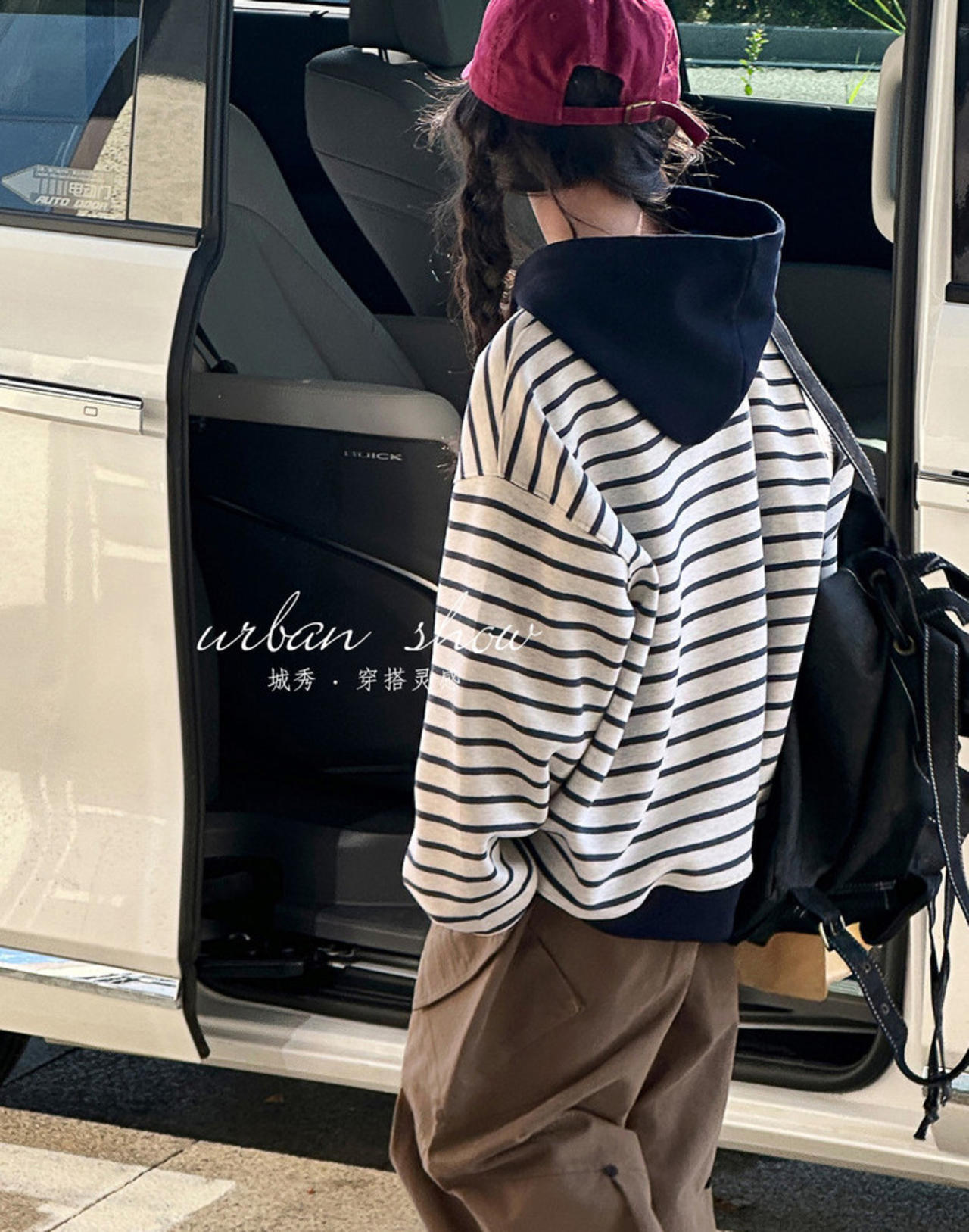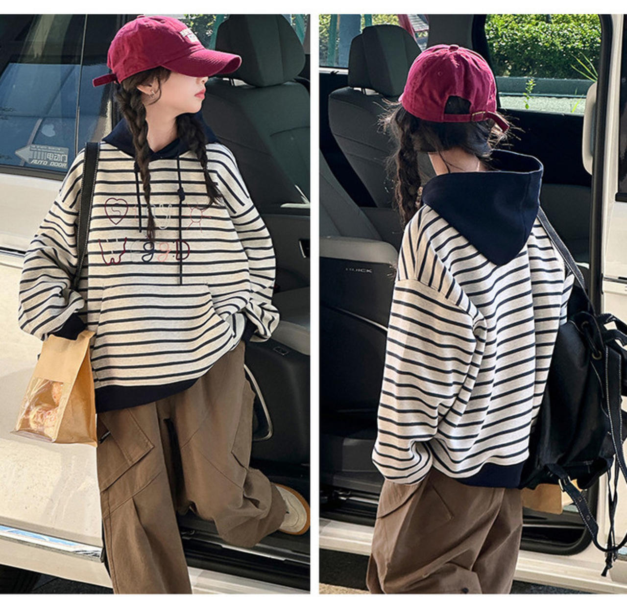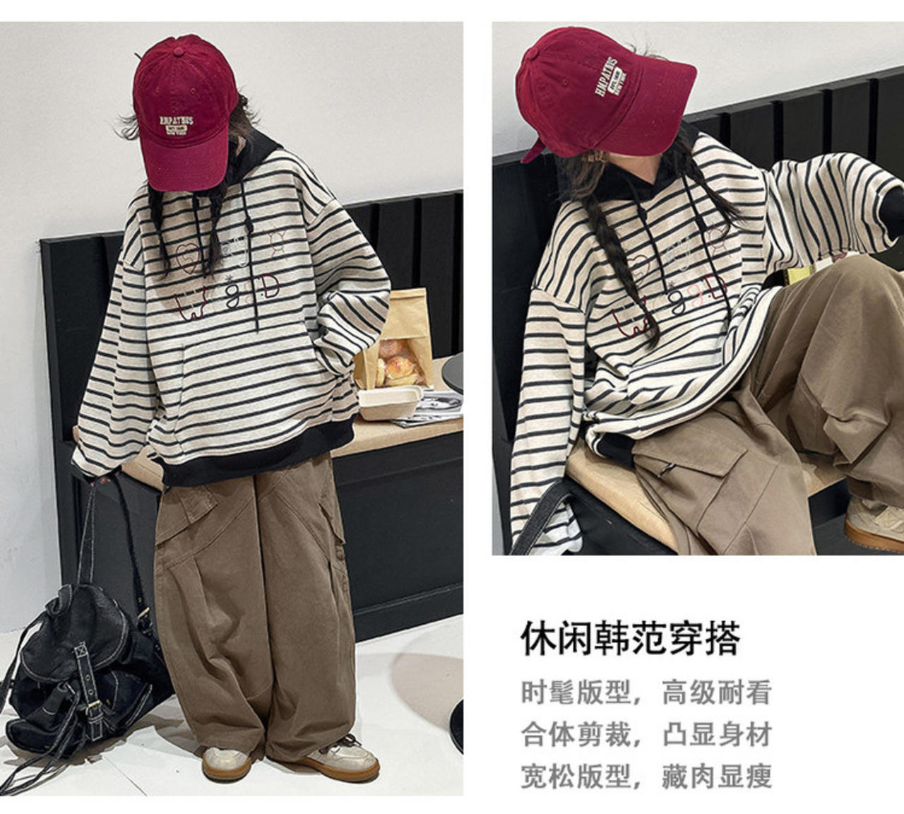Sudadera para Niña Top Suelto Primavera Otoño Jersey Estilo Perezoso Tendencia Coreana Rayas Moda Casual Versátil