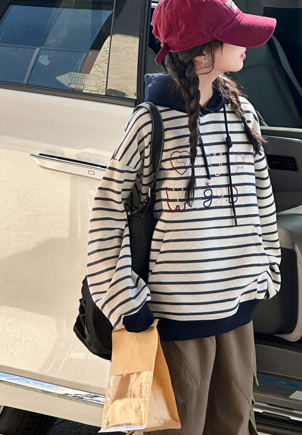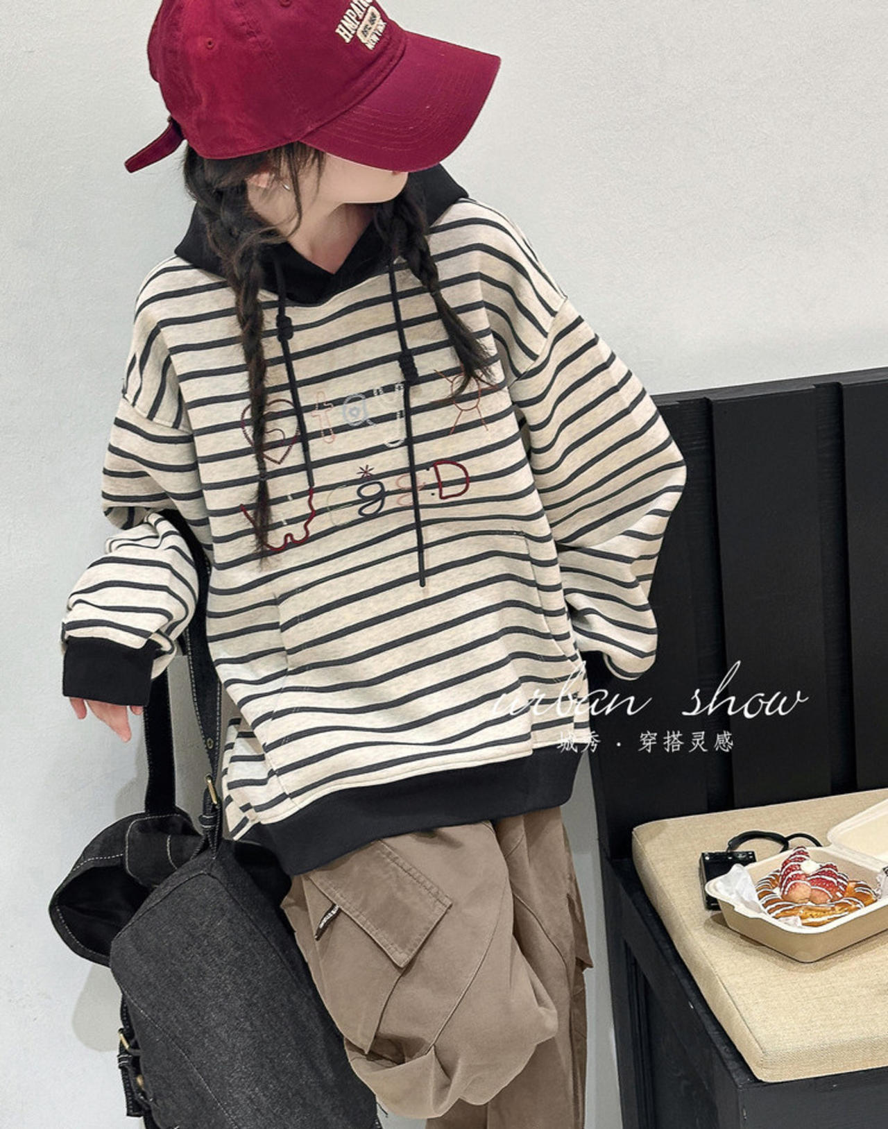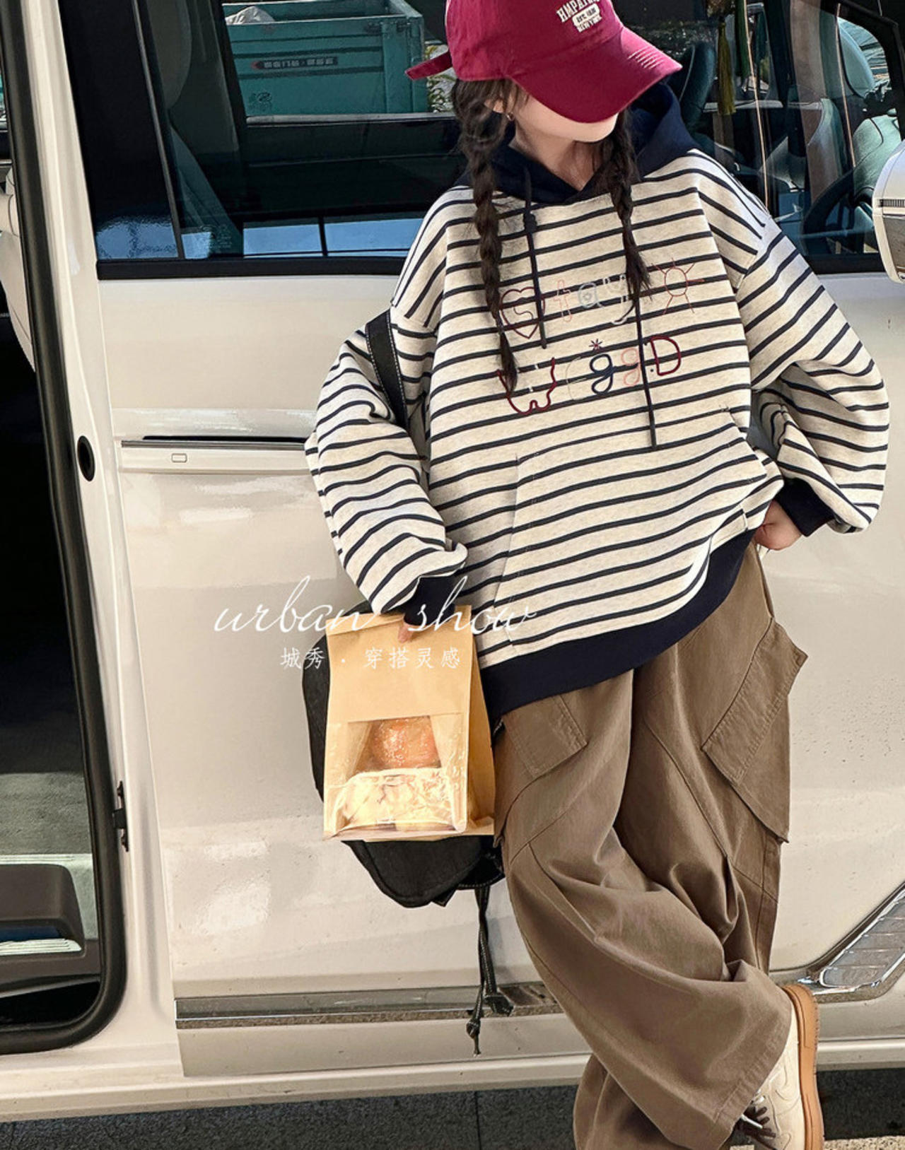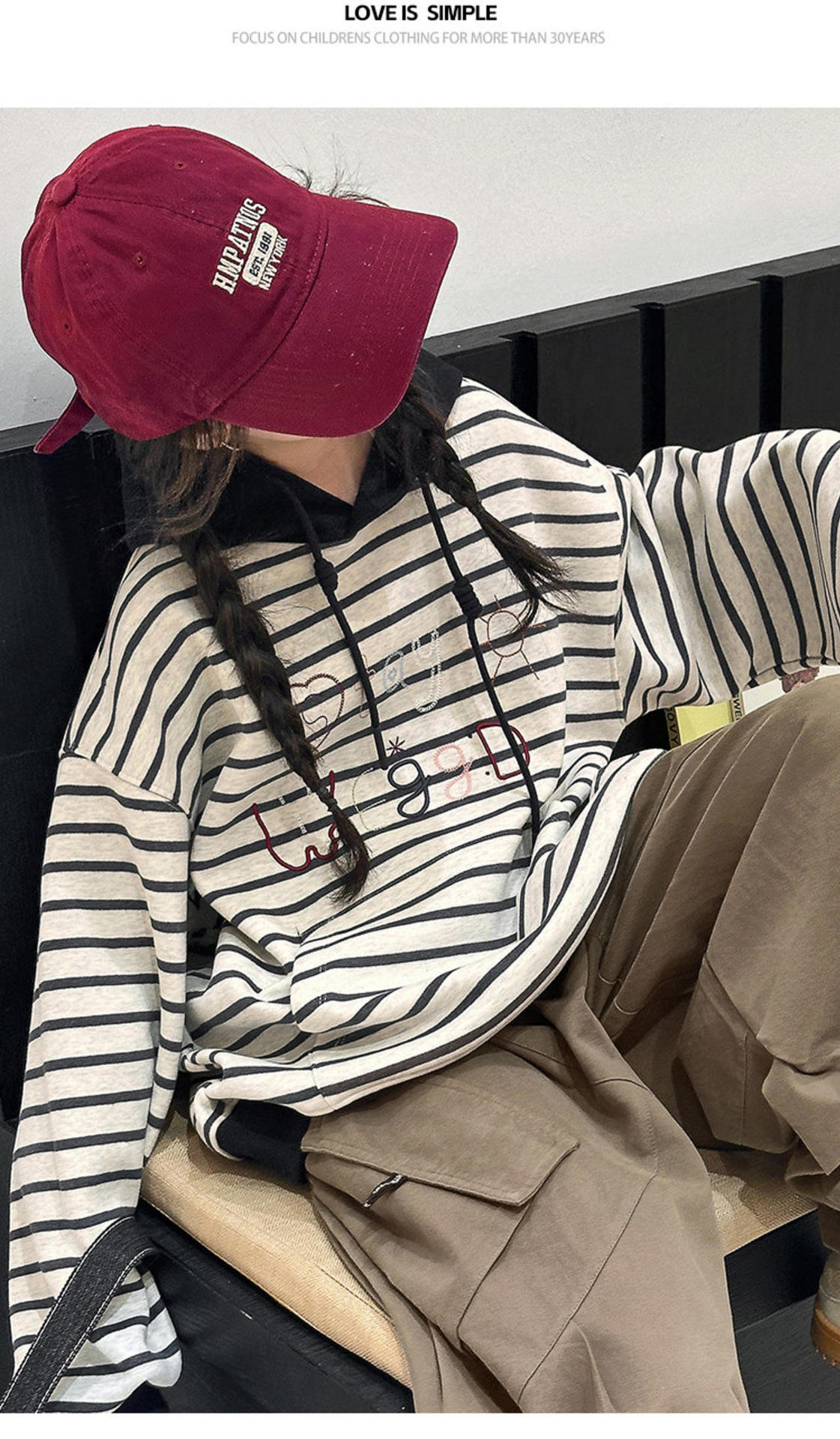 Sudadera para Niña Top Suelto Primavera Otoño Jersey Estilo Perezoso Tendencia Coreana Rayas Moda Casual Versátil