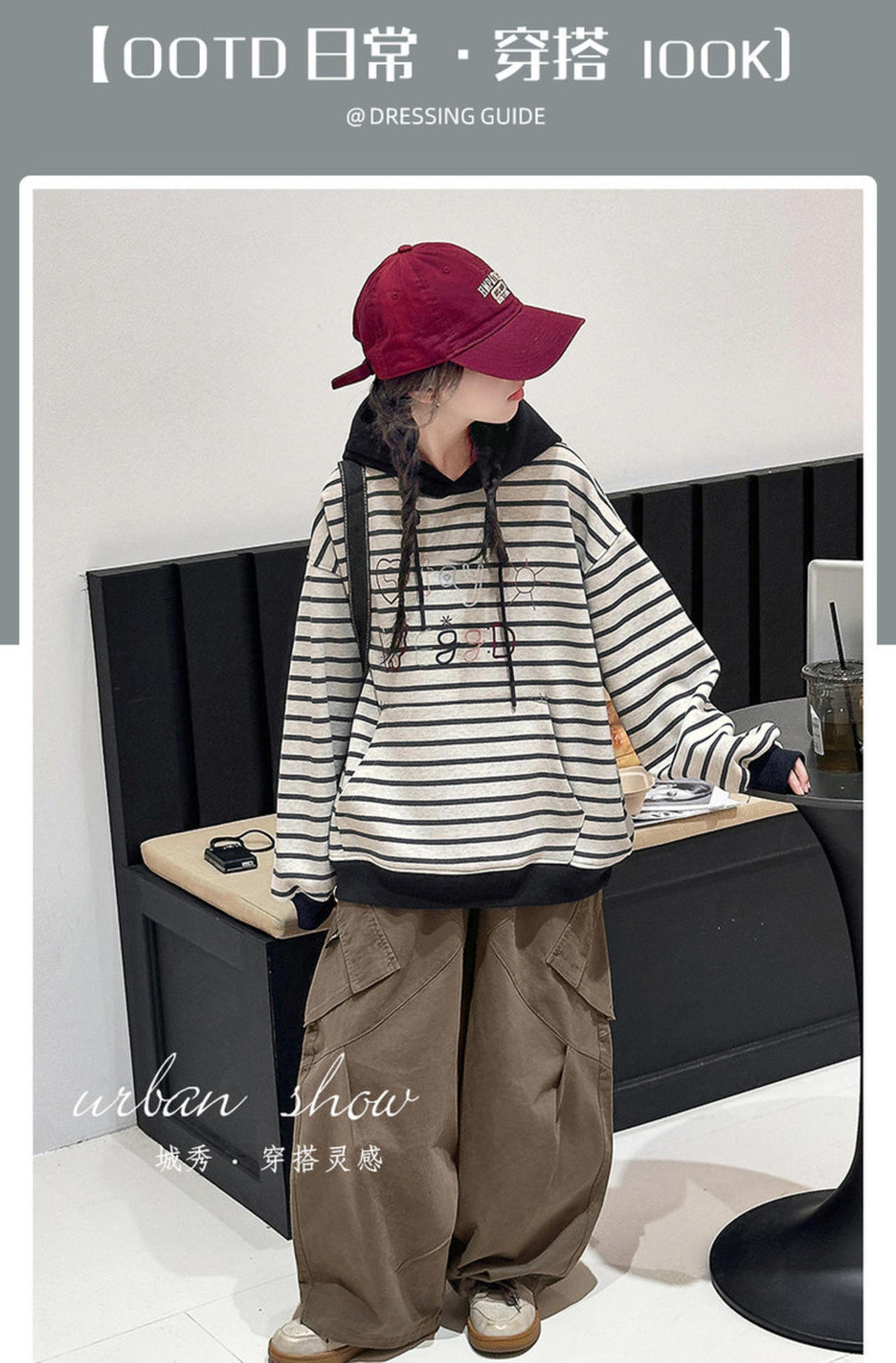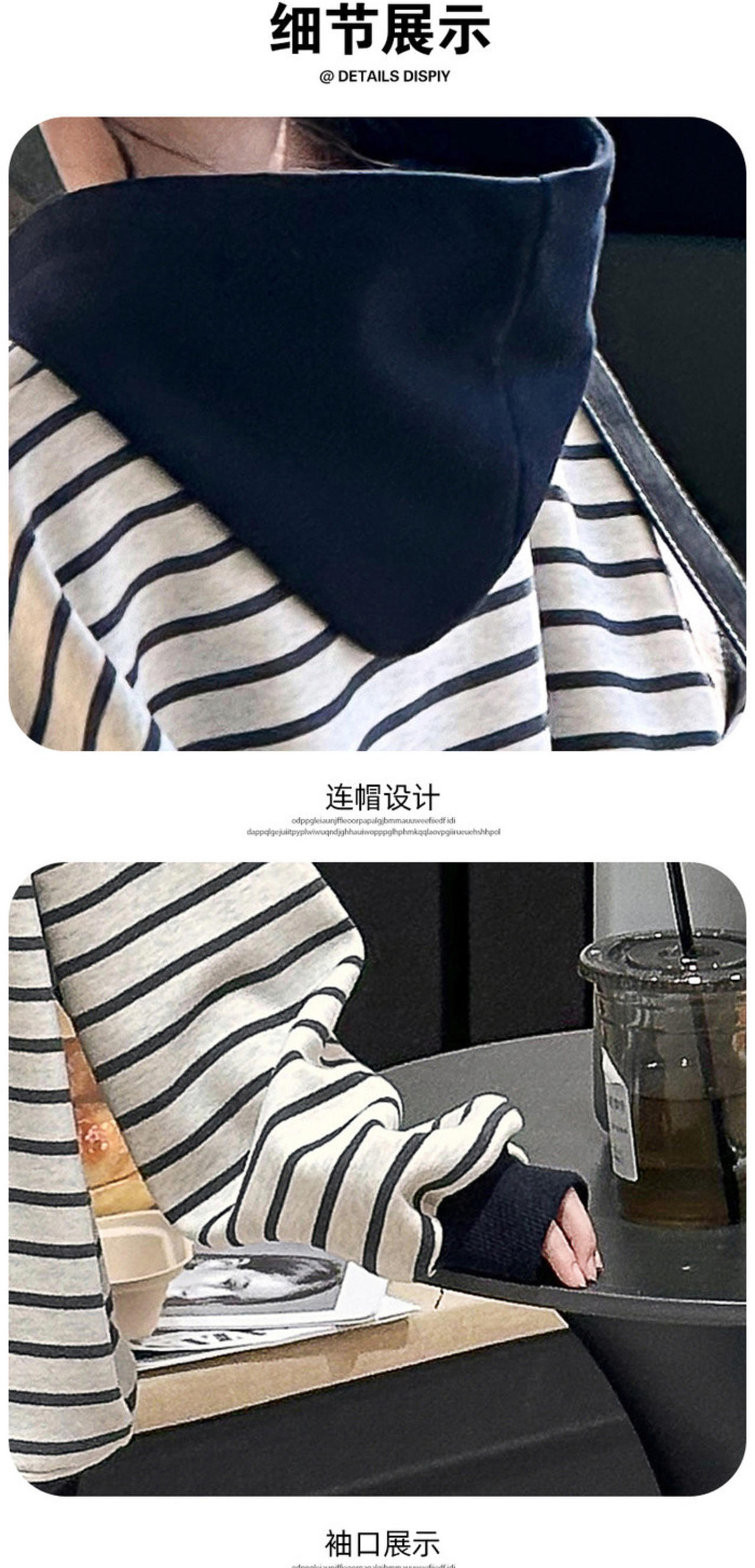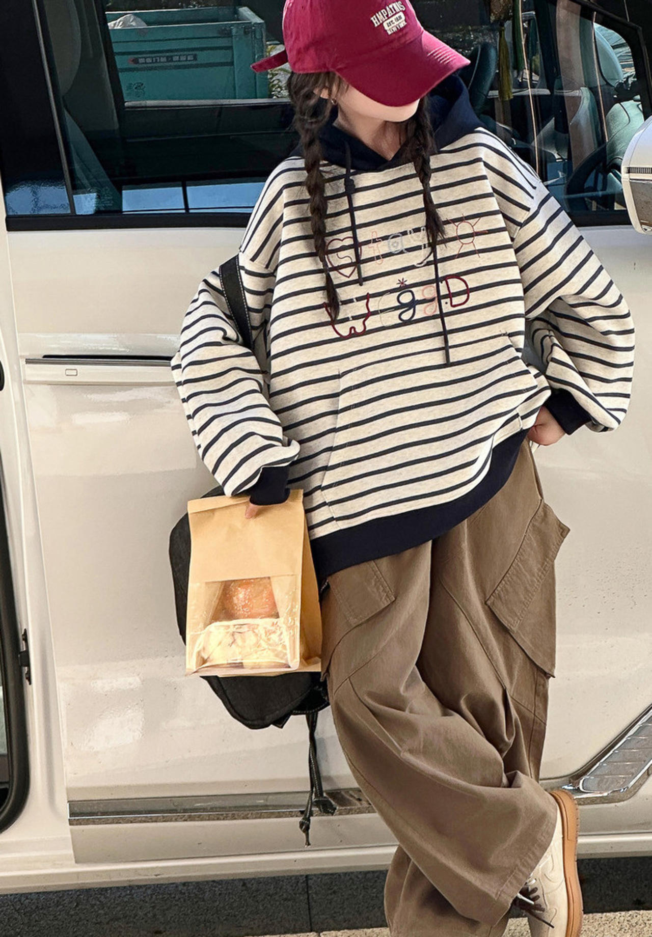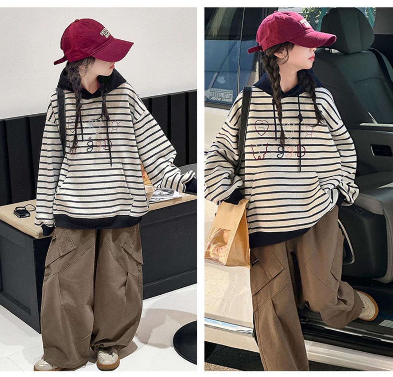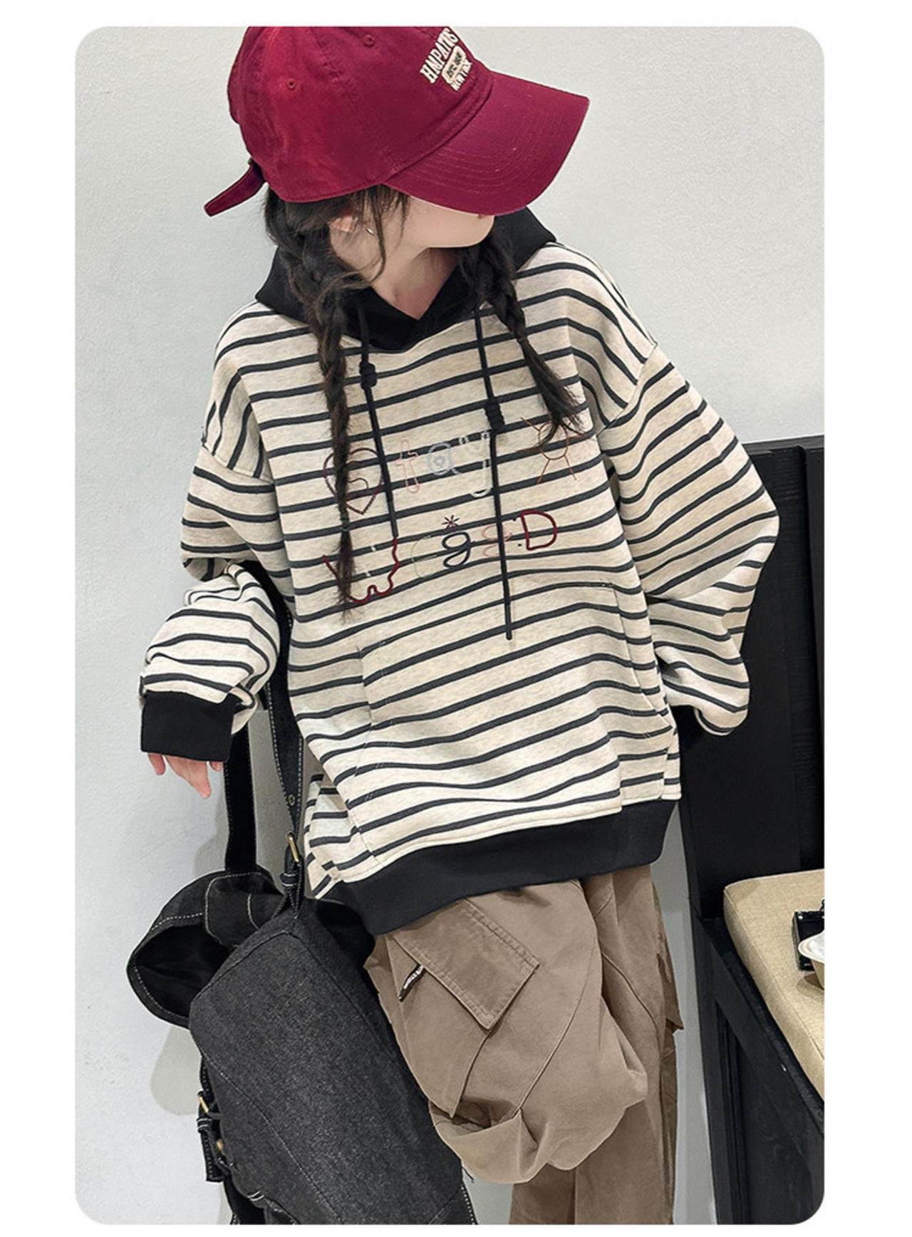 Sudadera para Niña Top Suelto Primavera Otoño Jersey Estilo Perezoso Tendencia Coreana Rayas Moda Casual Versátil