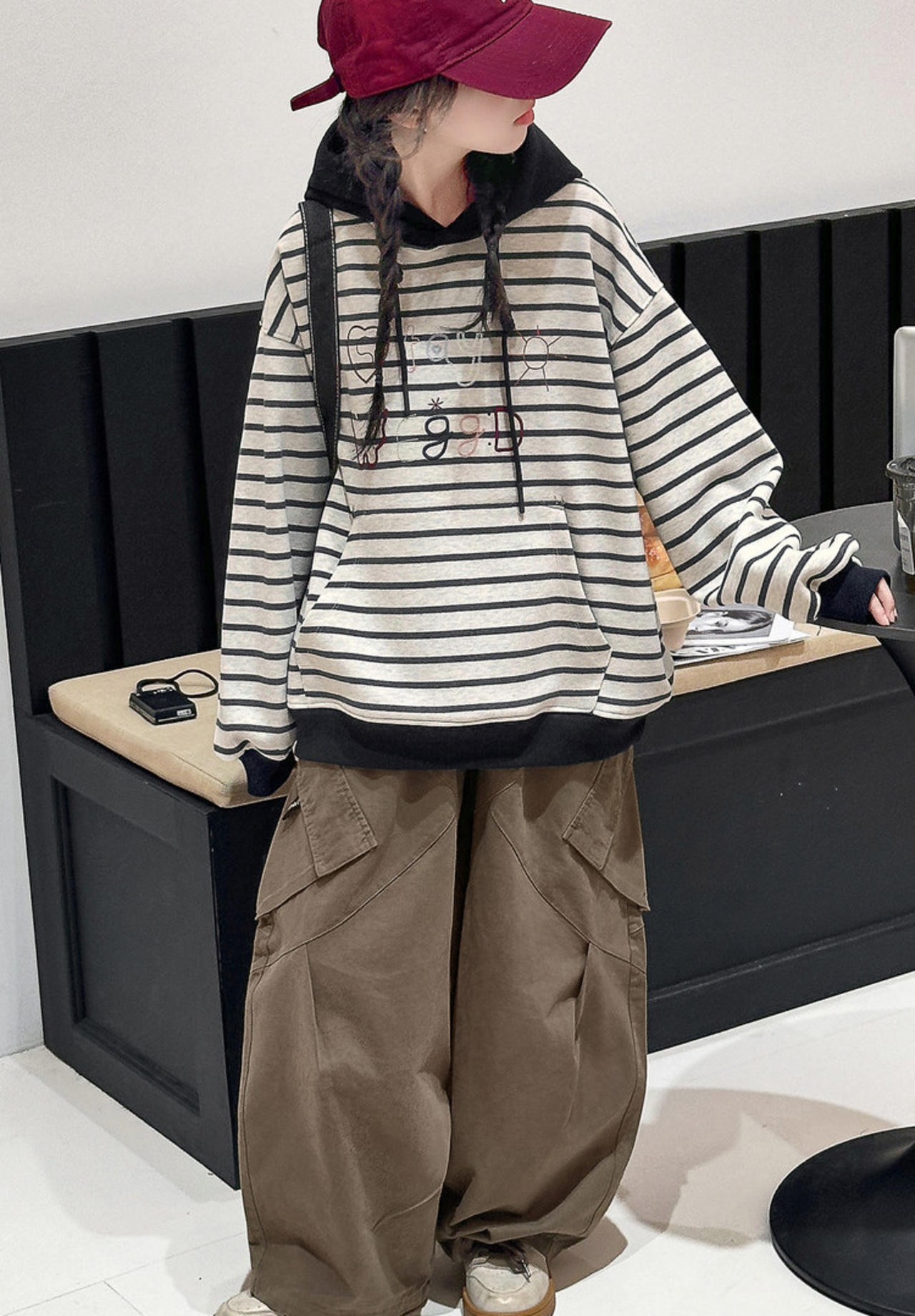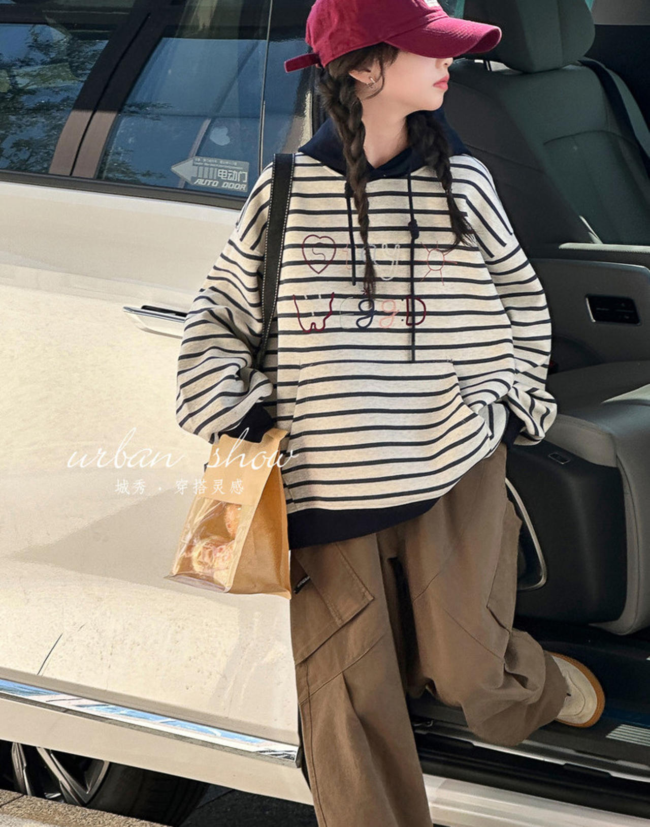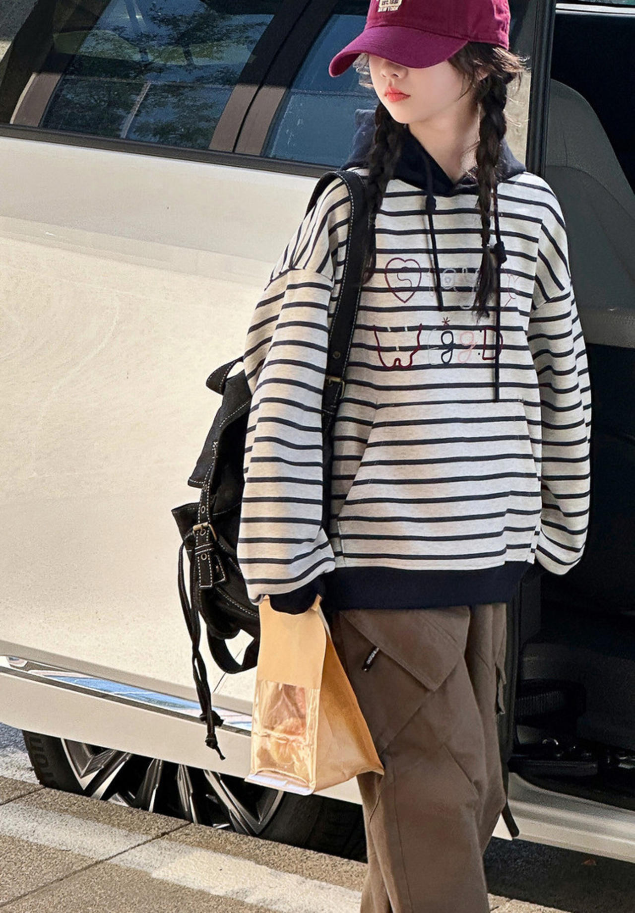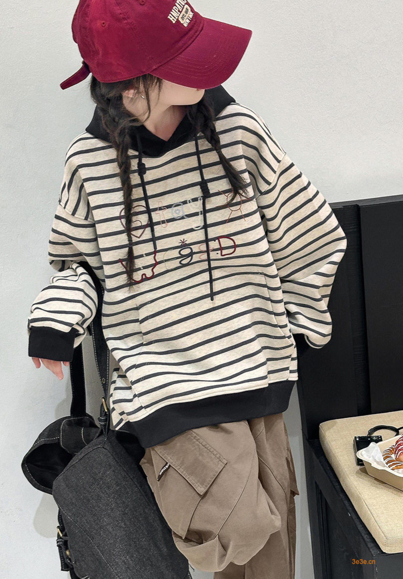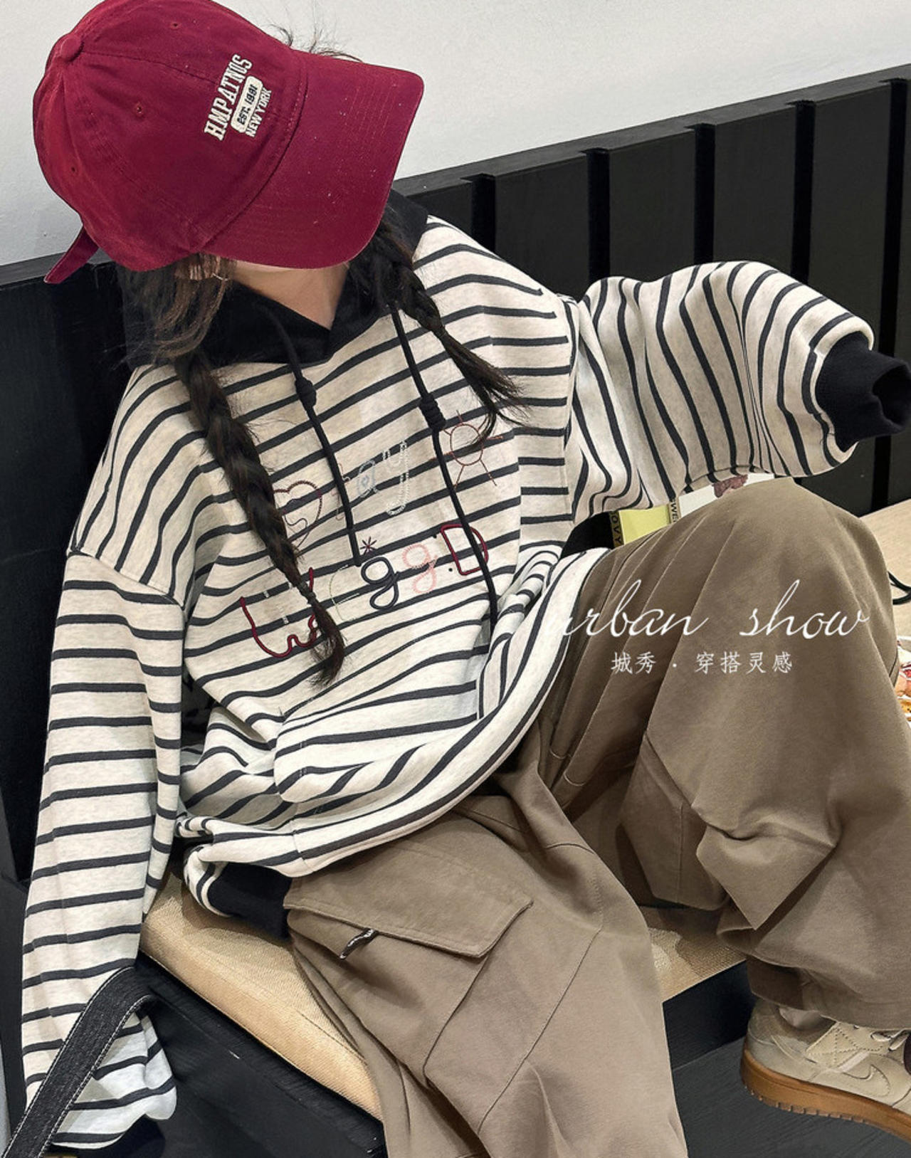 Sudadera para Niña Top Suelto Primavera Otoño Jersey Estilo Perezoso Tendencia Coreana Rayas Moda Casual Versátil