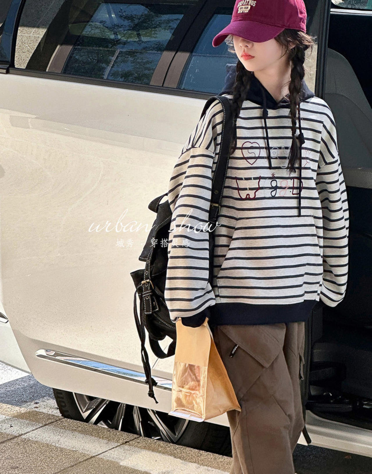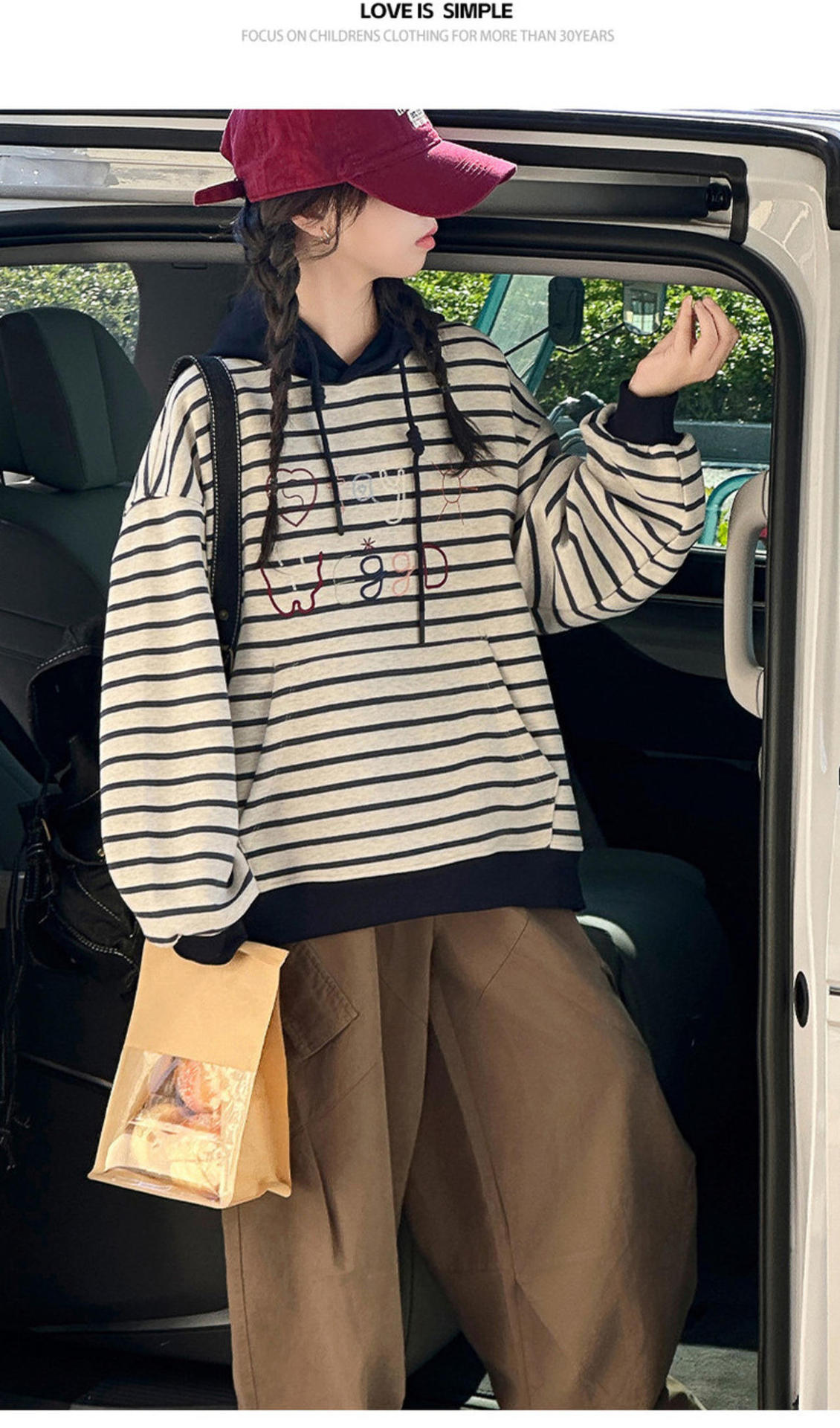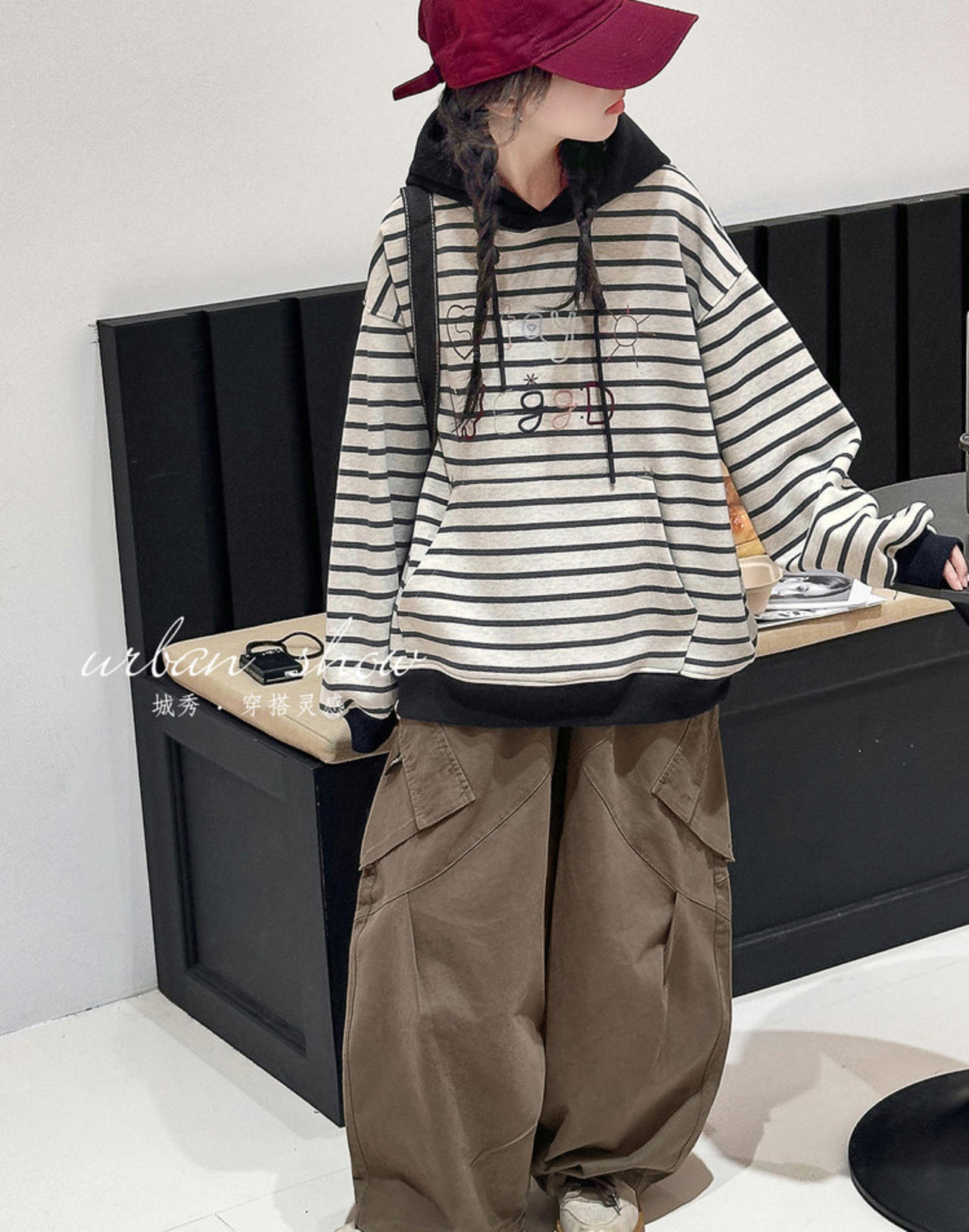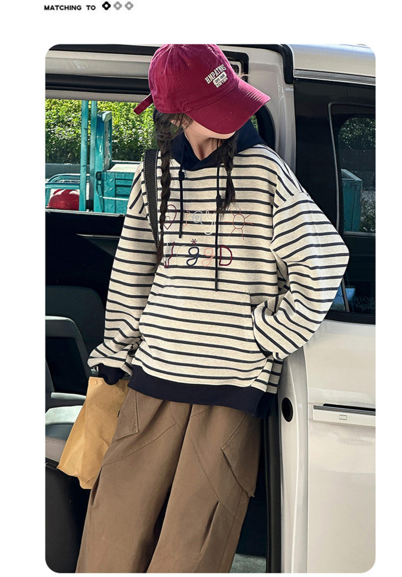 Sudadera para Niña Top Suelto Primavera Otoño Jersey Estilo Perezoso Tendencia Coreana Rayas Moda Casual Versátil