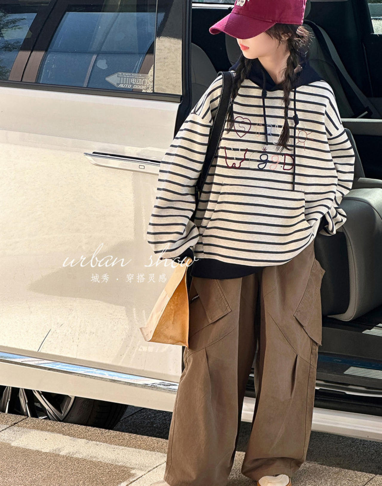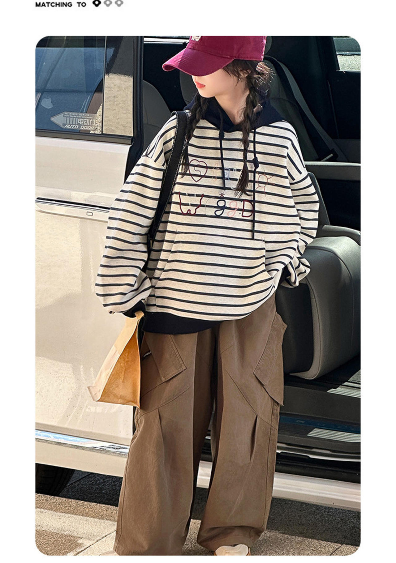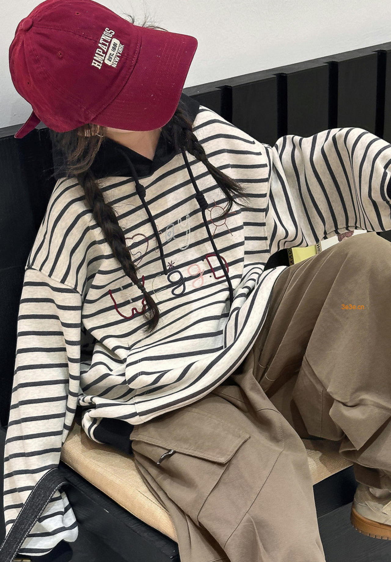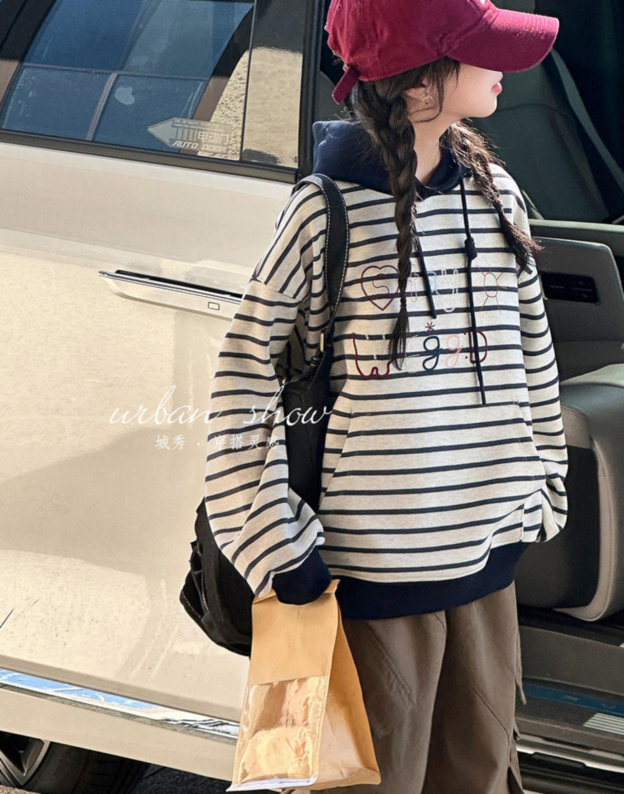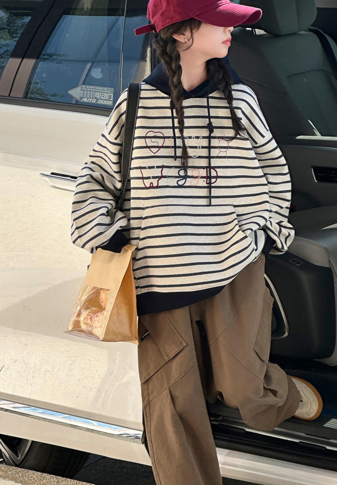 Sudadera para Niña Top Suelto Primavera Otoño Jersey Estilo Perezoso Tendencia Coreana Rayas Moda Casual Versátil