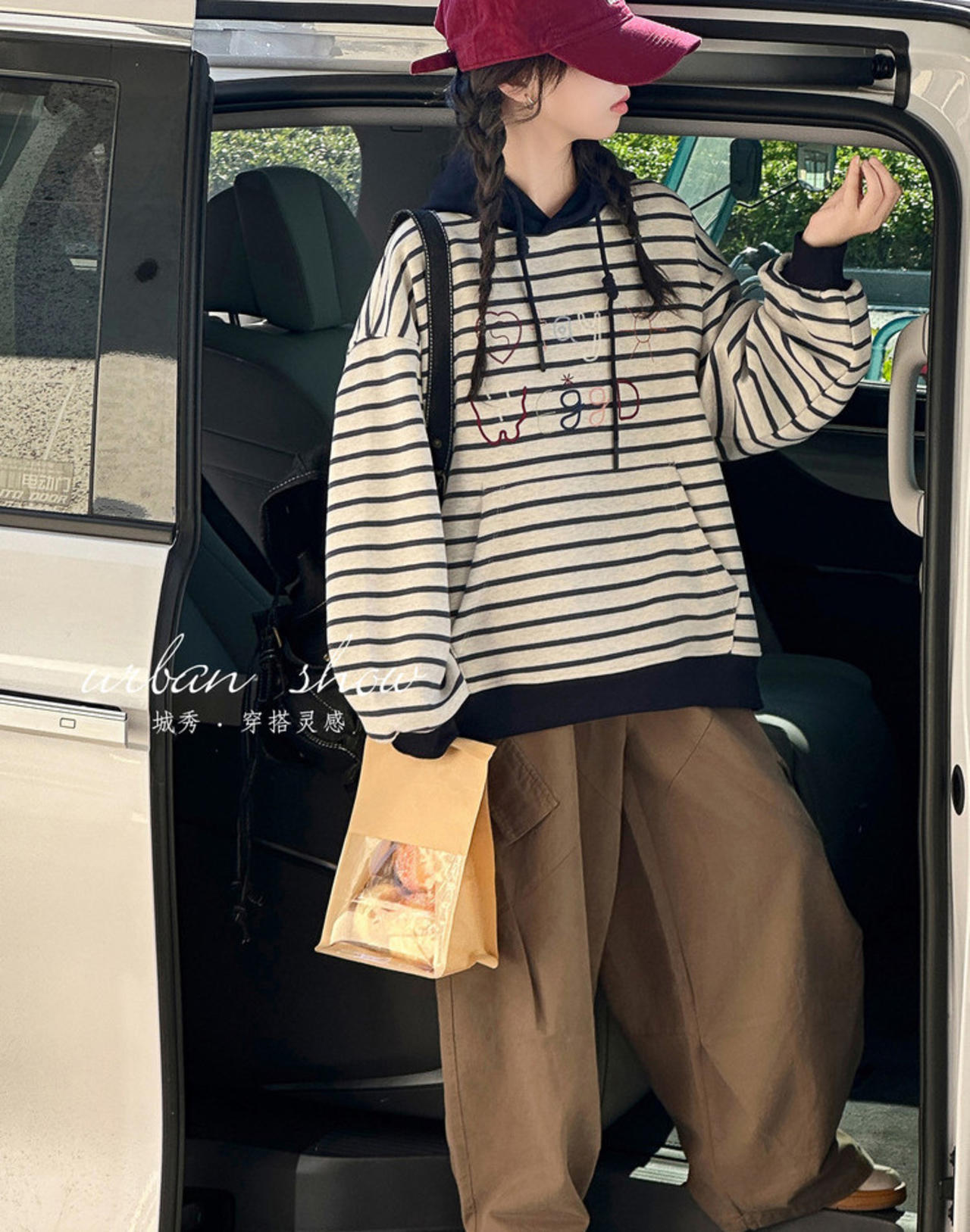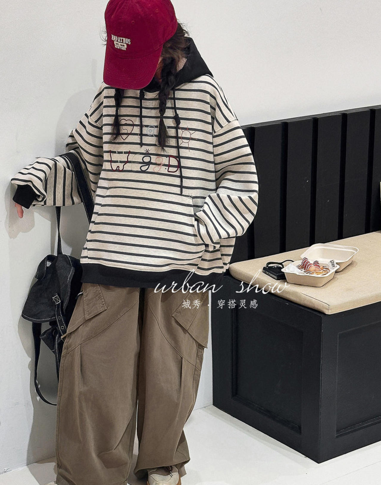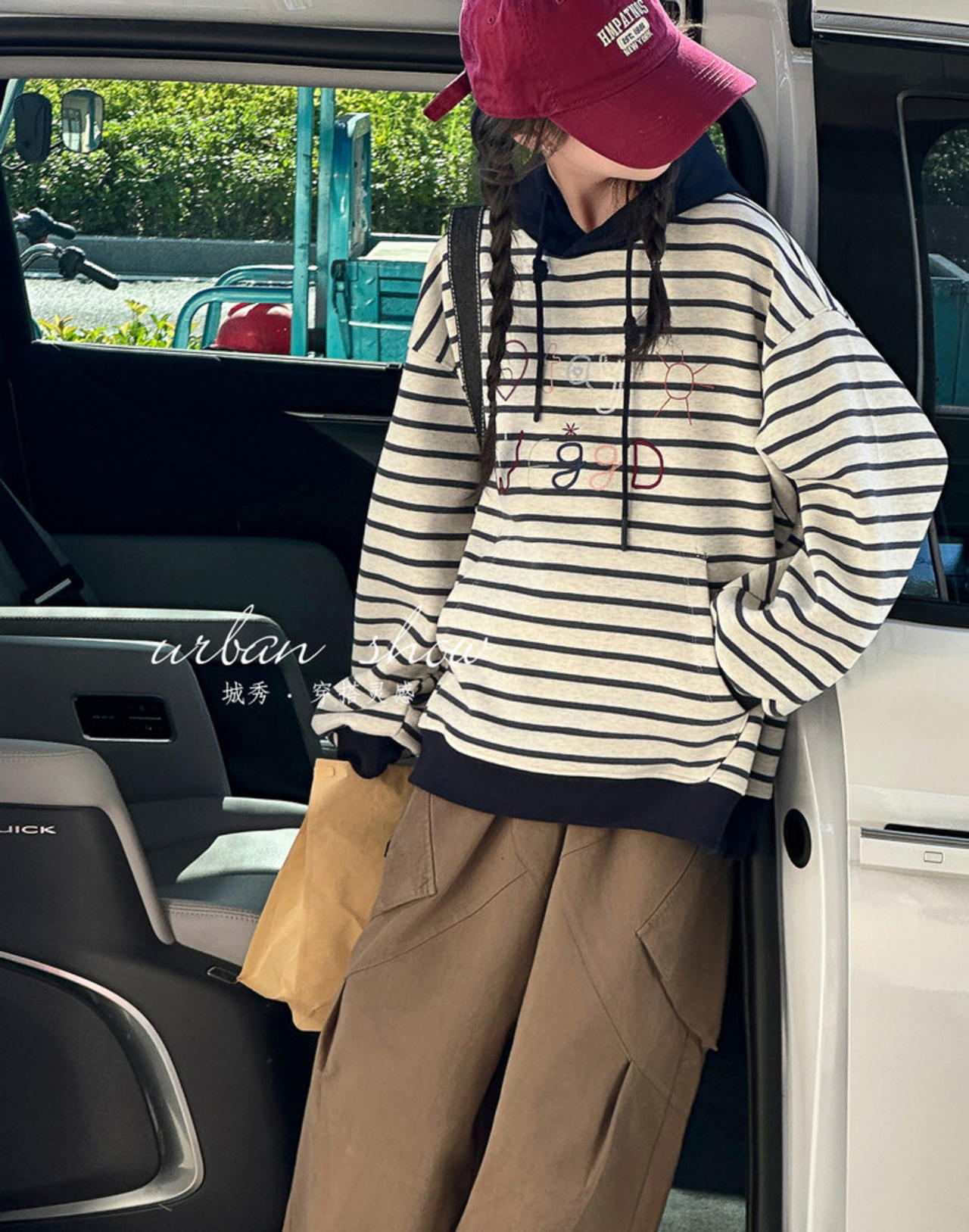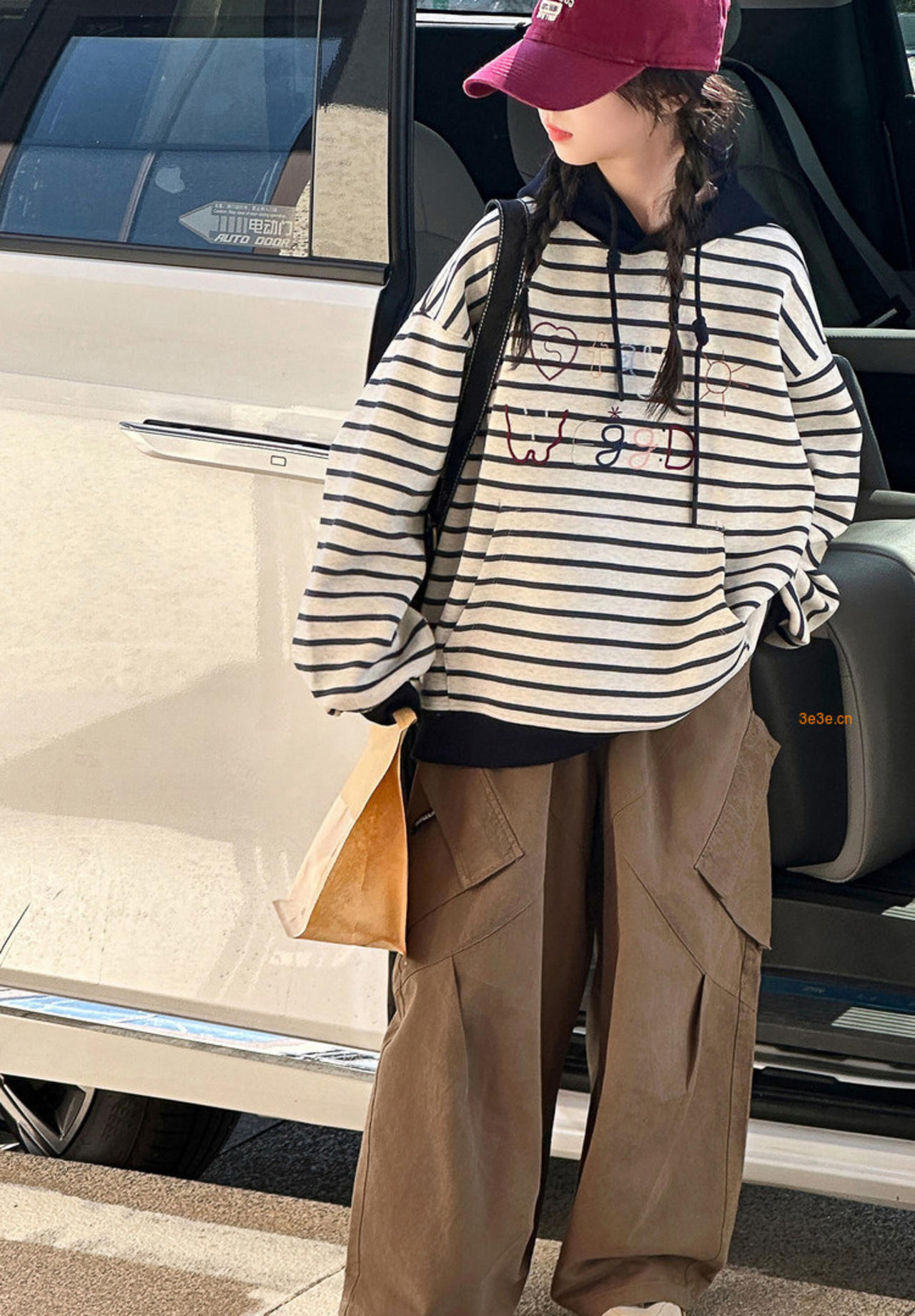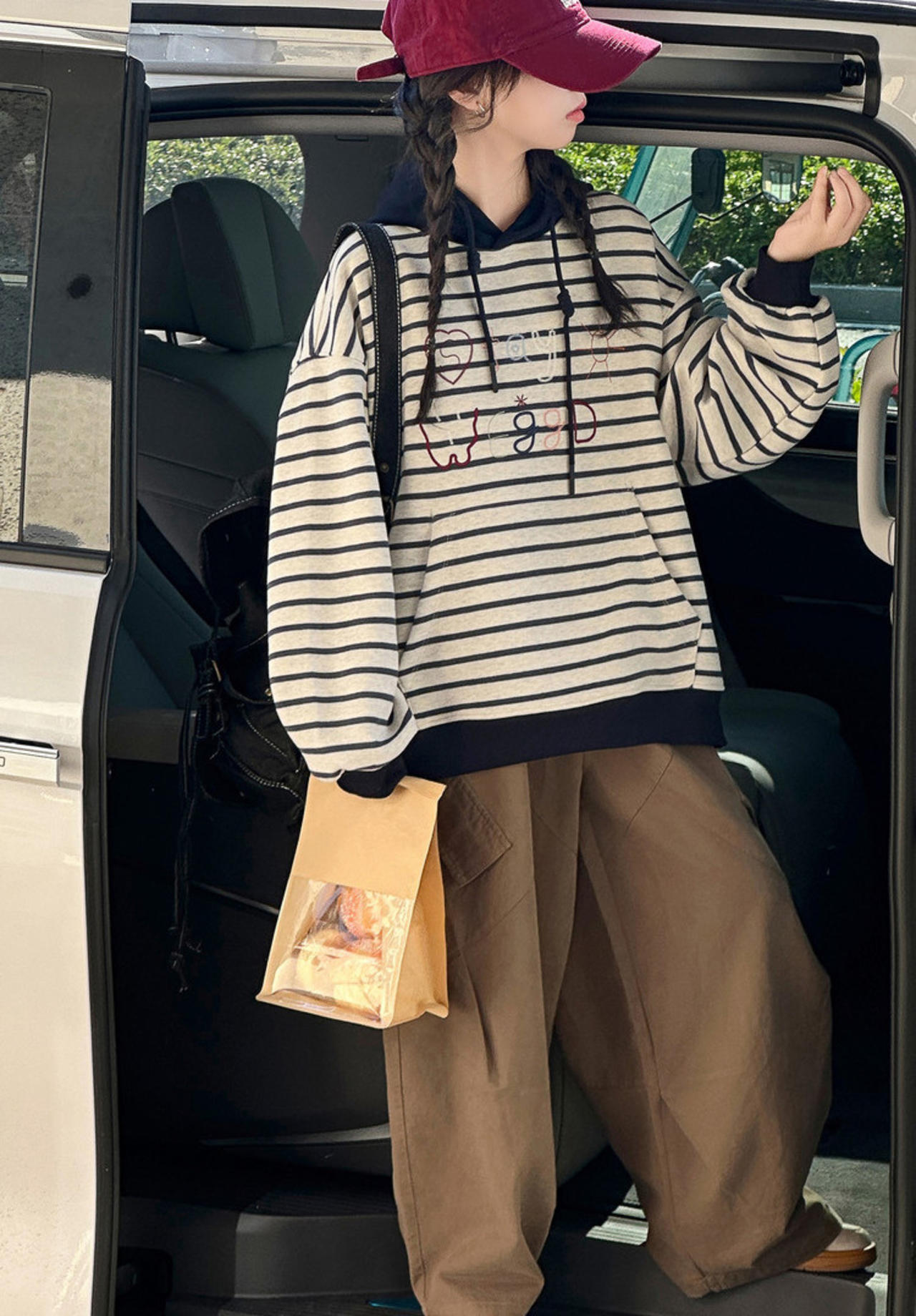 Sudadera para Niña Top Suelto Primavera Otoño Jersey Estilo Perezoso Tendencia Coreana Rayas Moda Casual Versátil