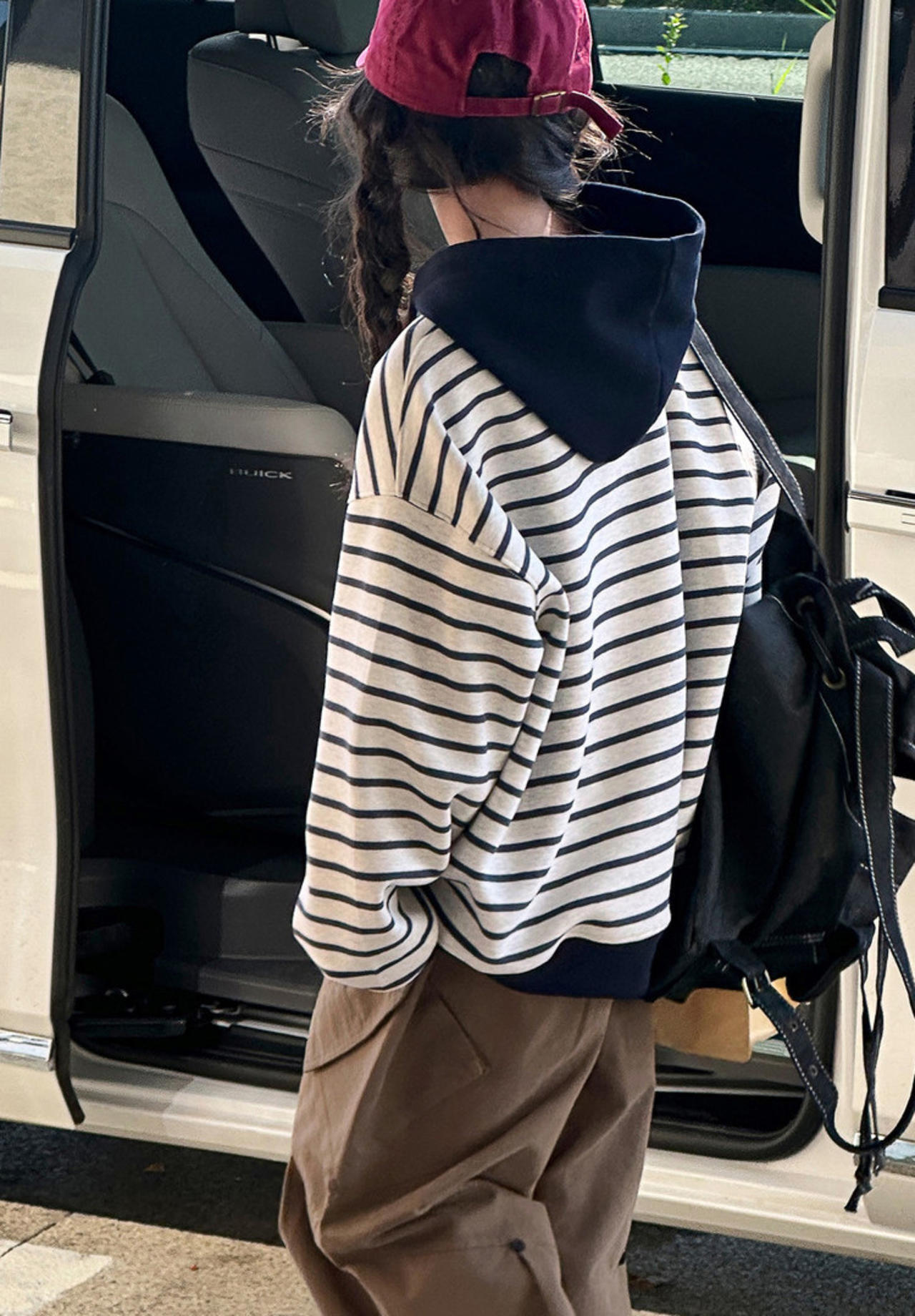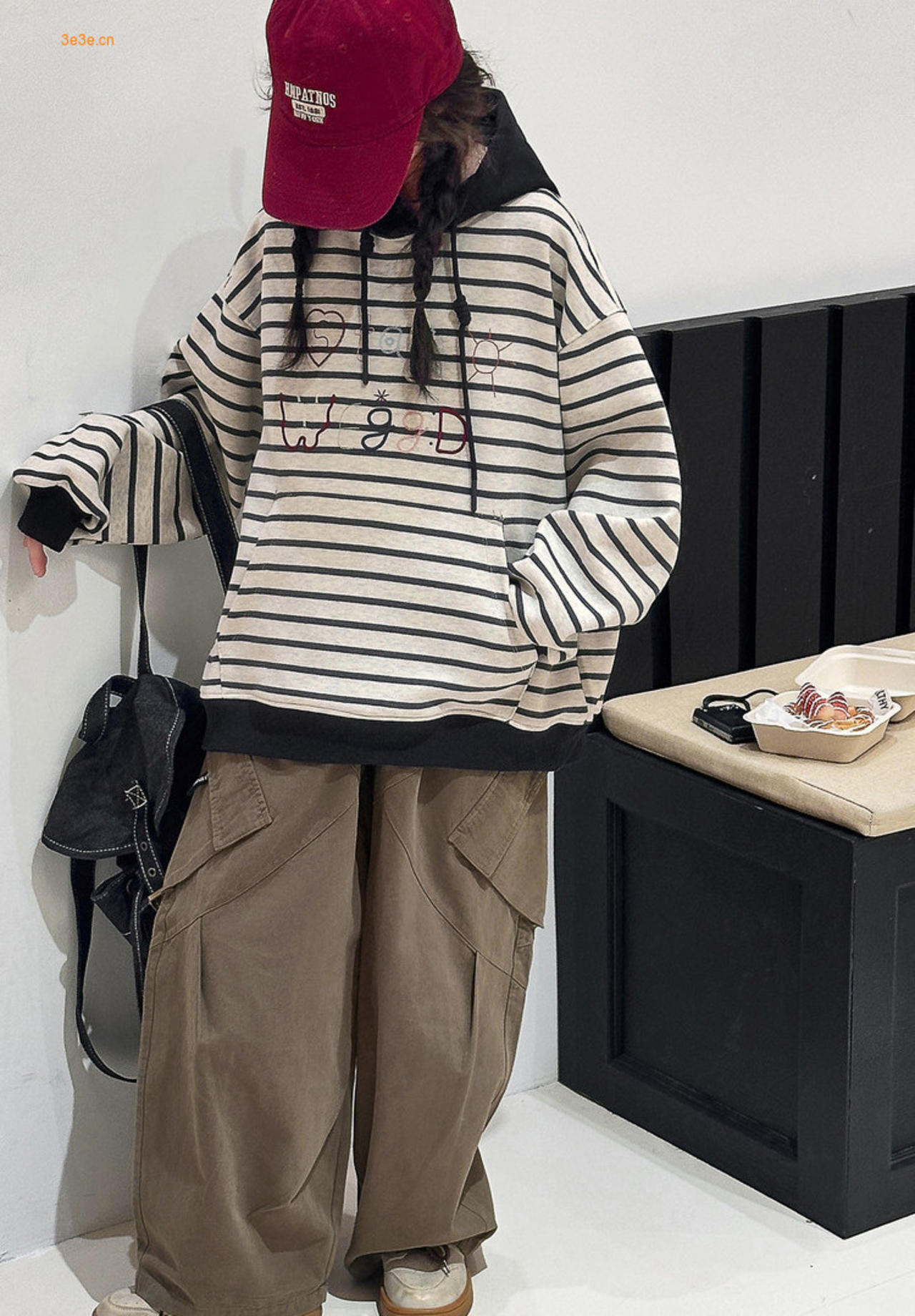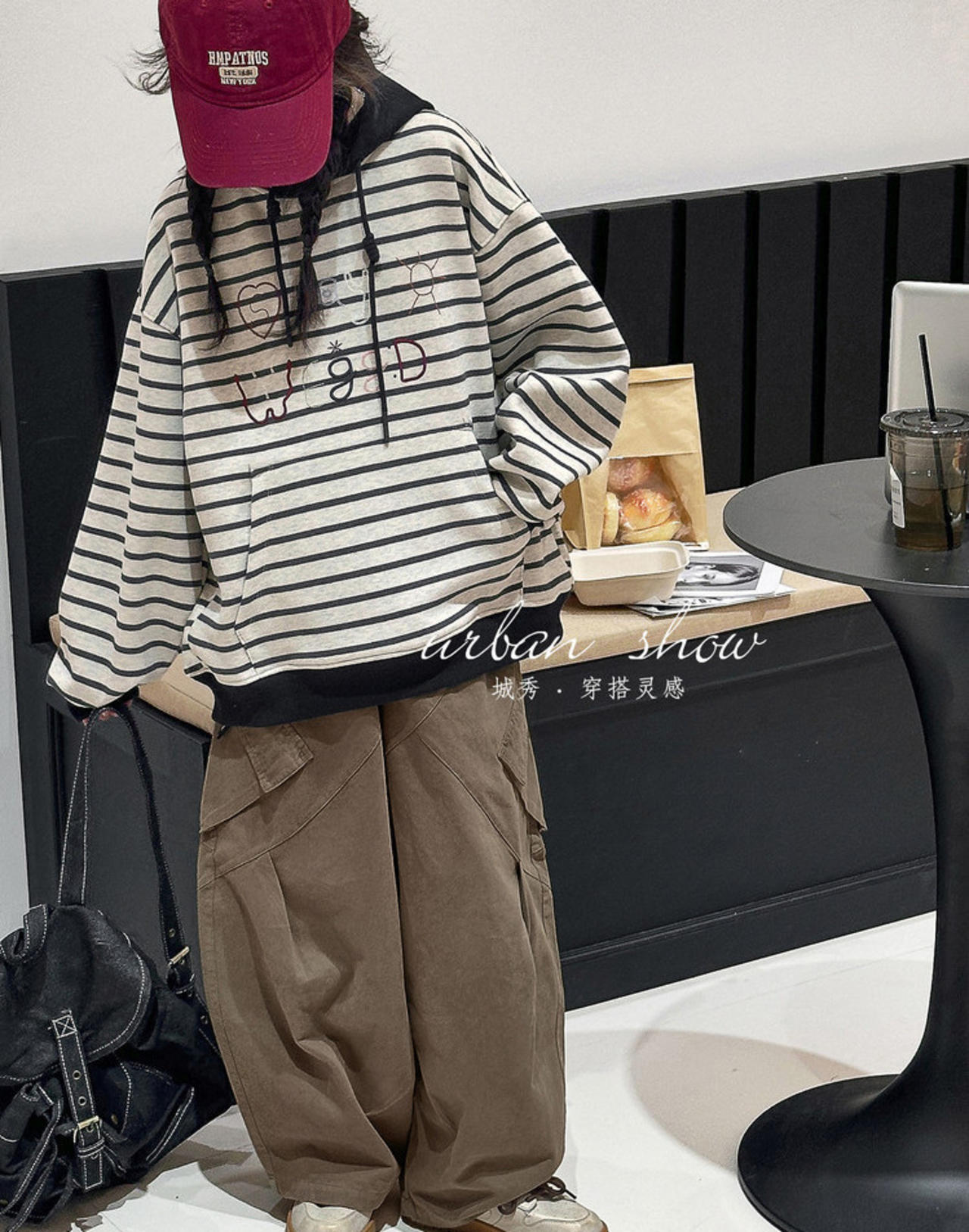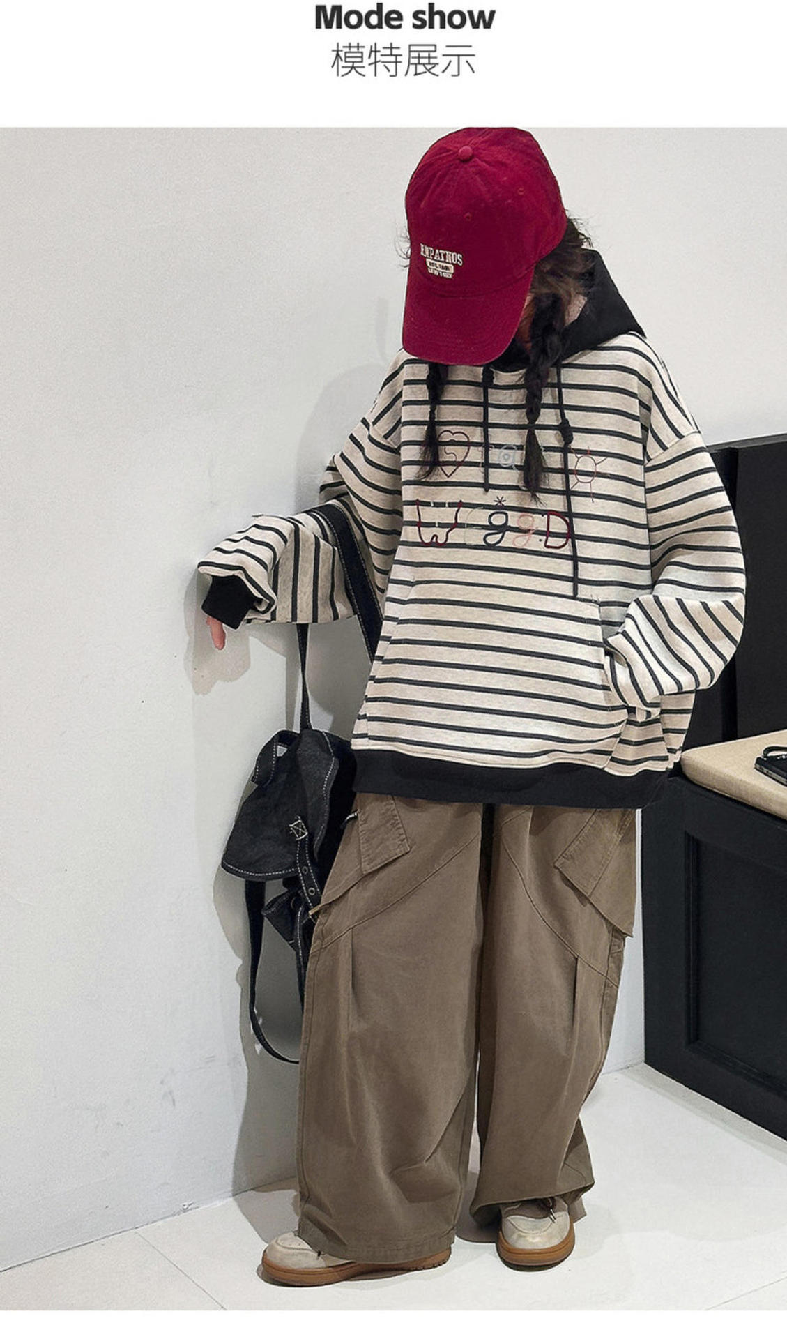 Sudadera para Niña Top Suelto Primavera Otoño Jersey Estilo Perezoso Tendencia Coreana Rayas Moda Casual Versátil