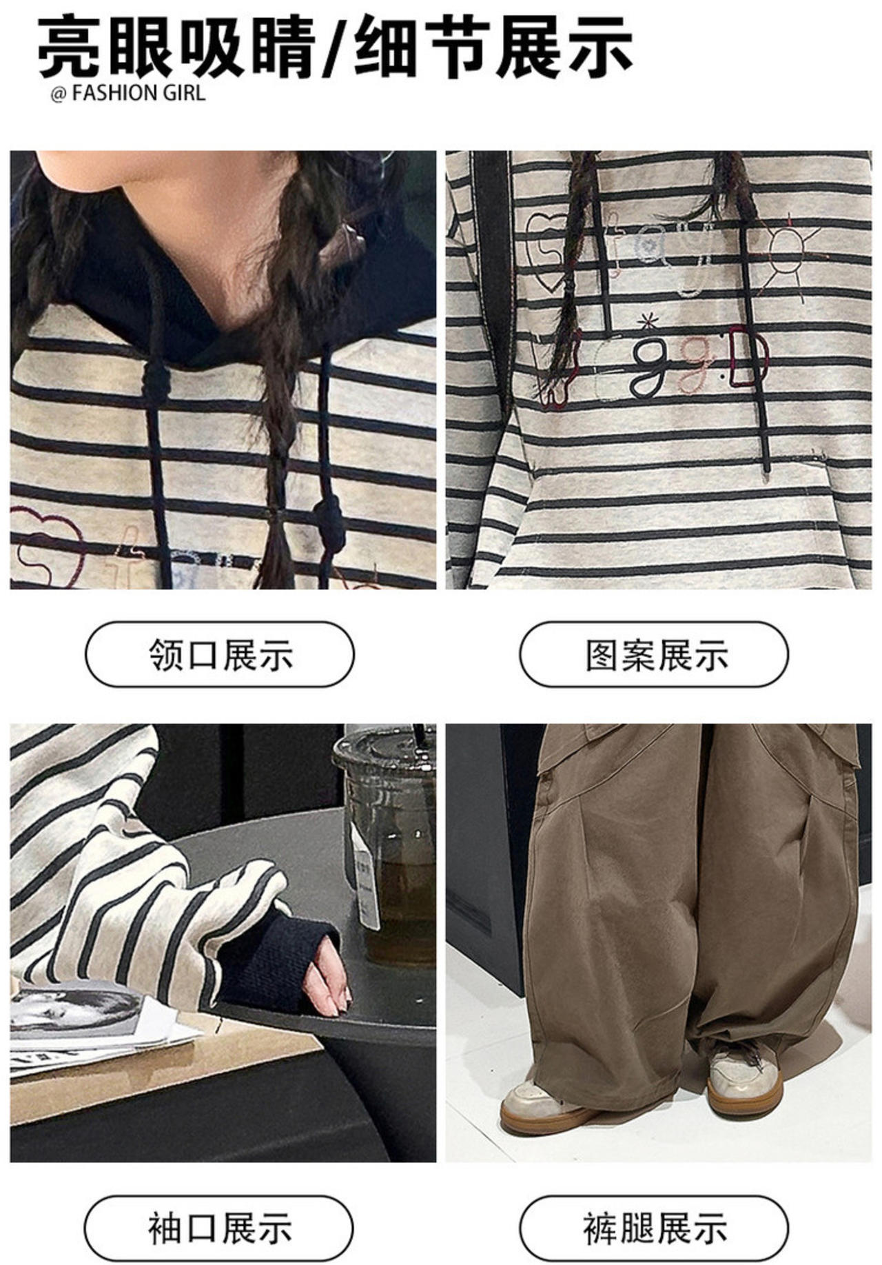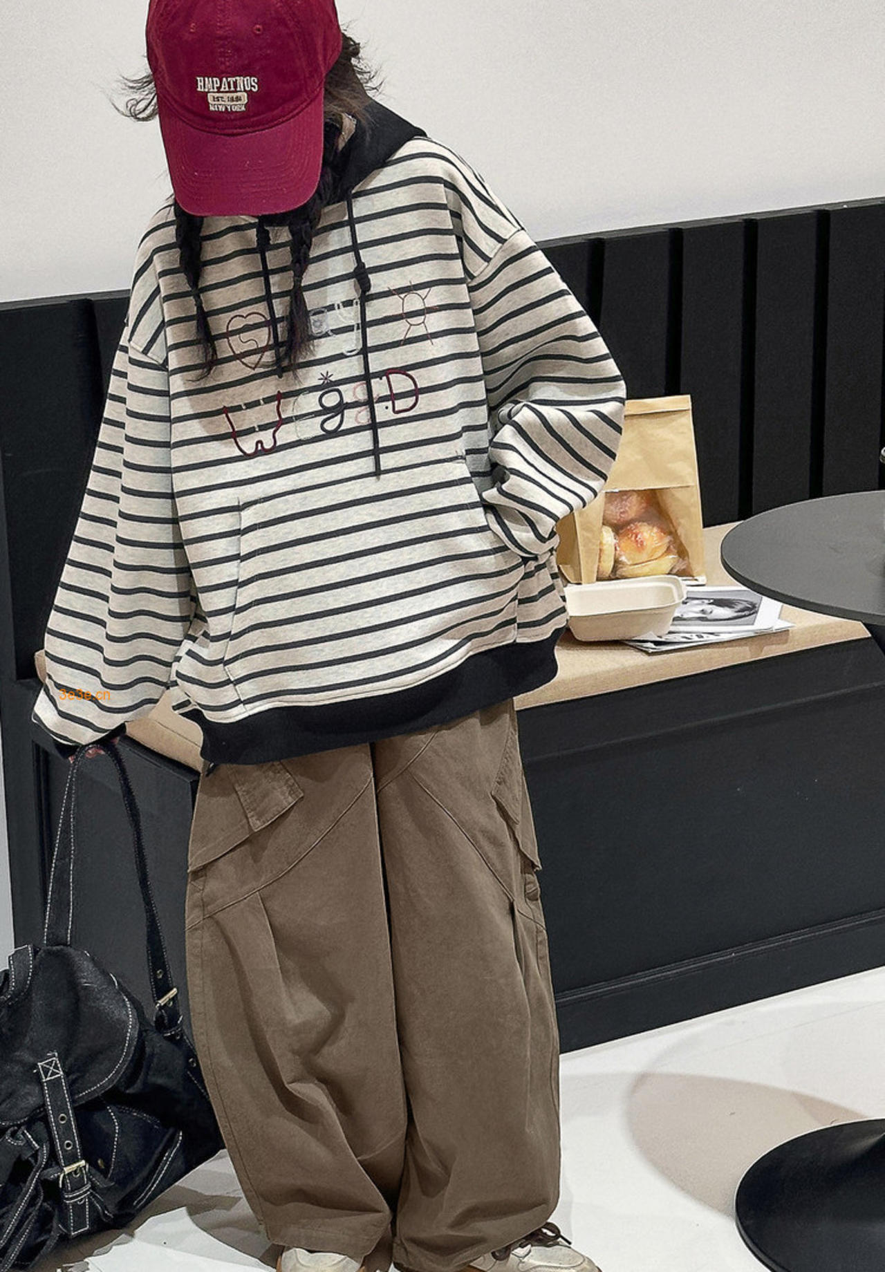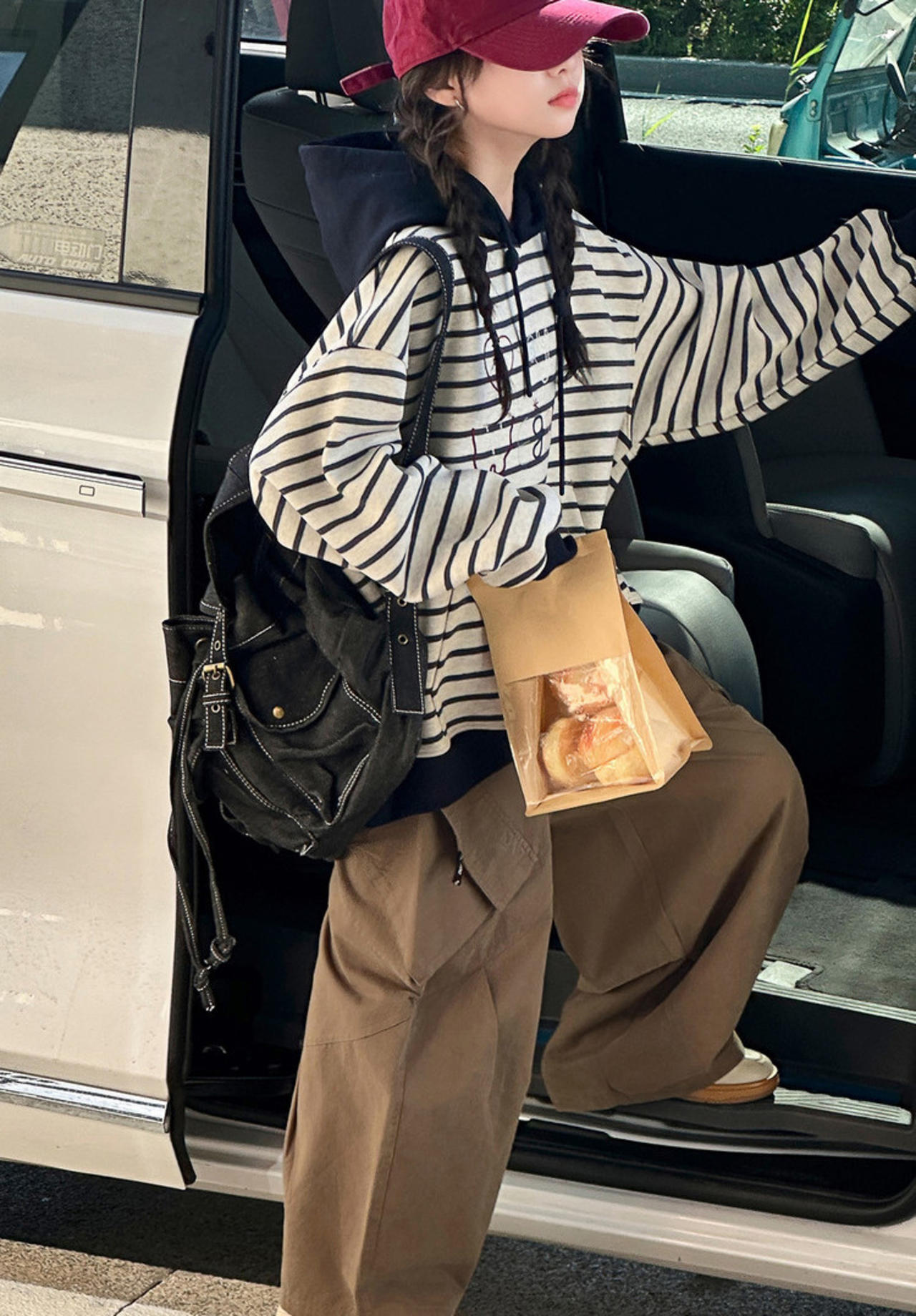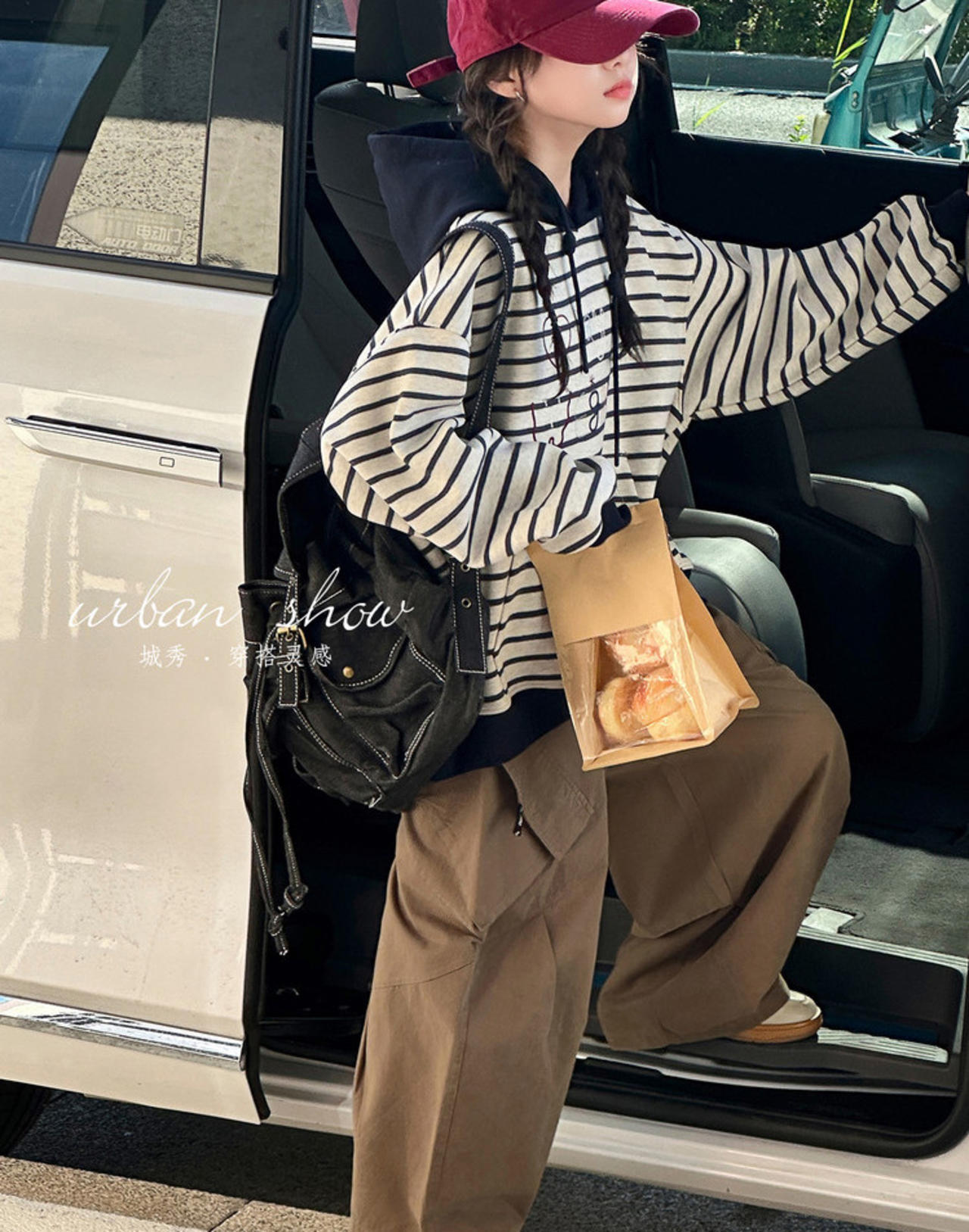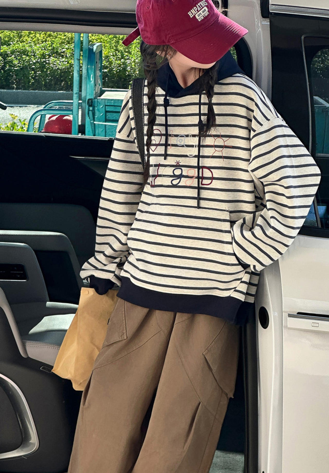 Sudadera para Niña Top Suelto Primavera Otoño Jersey Estilo Perezoso Tendencia Coreana Rayas Moda Casual Versátil