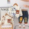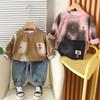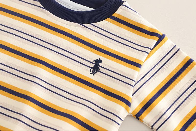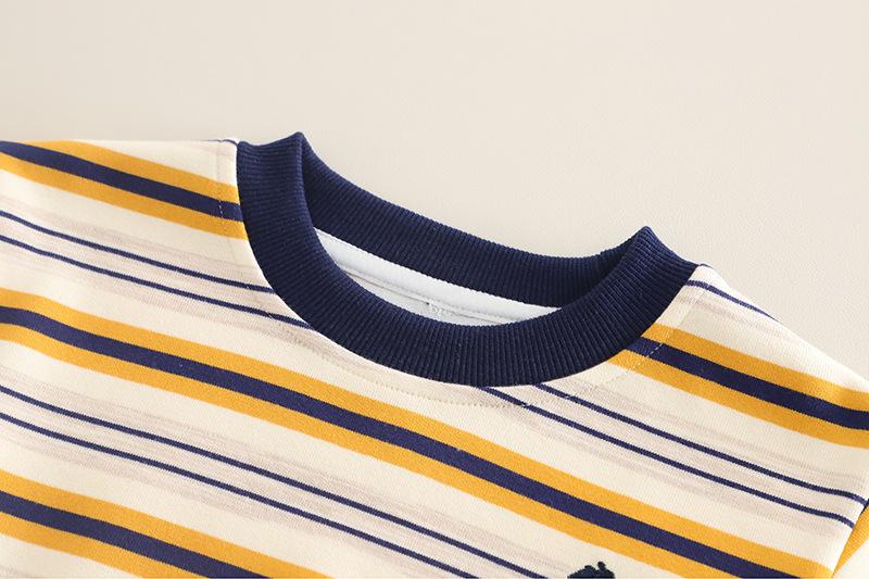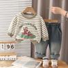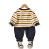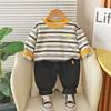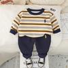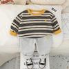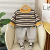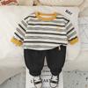 Conjunto de Otoño para Niños 2025 Nuevo Estilo de Otoño para Niños Sudadera de Moda a Rayas con Cuello Redondo Conjunto de Dos Piezas Envío Directo