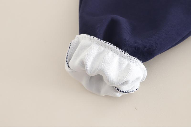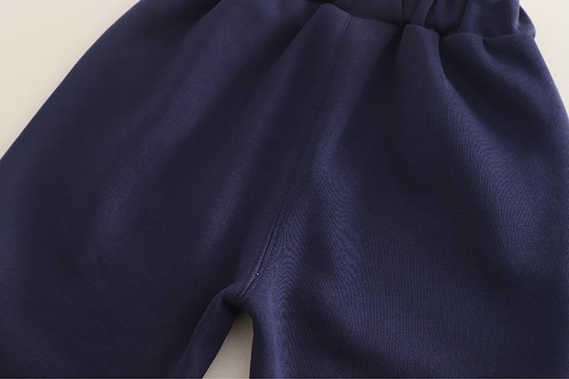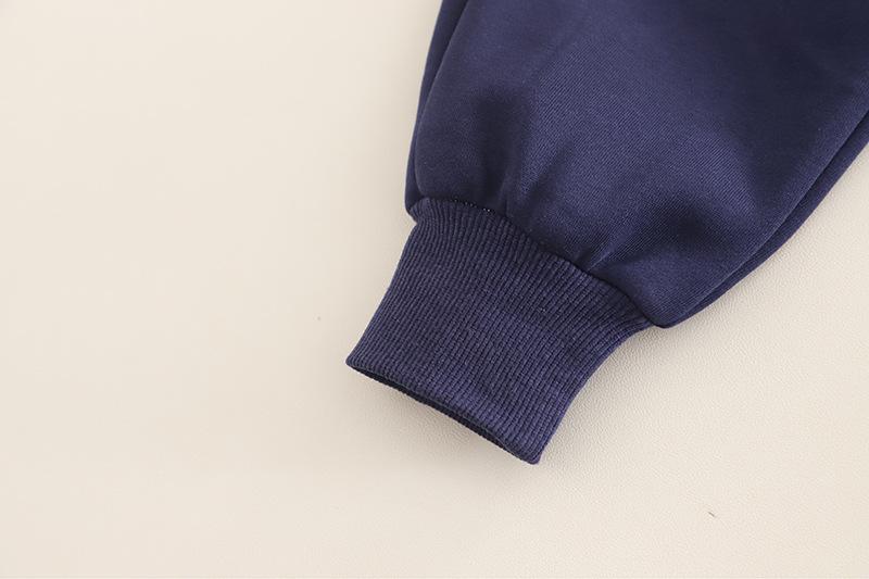 Navy Blue Striped Embroidered Sweatshirt Long Sleeve Set