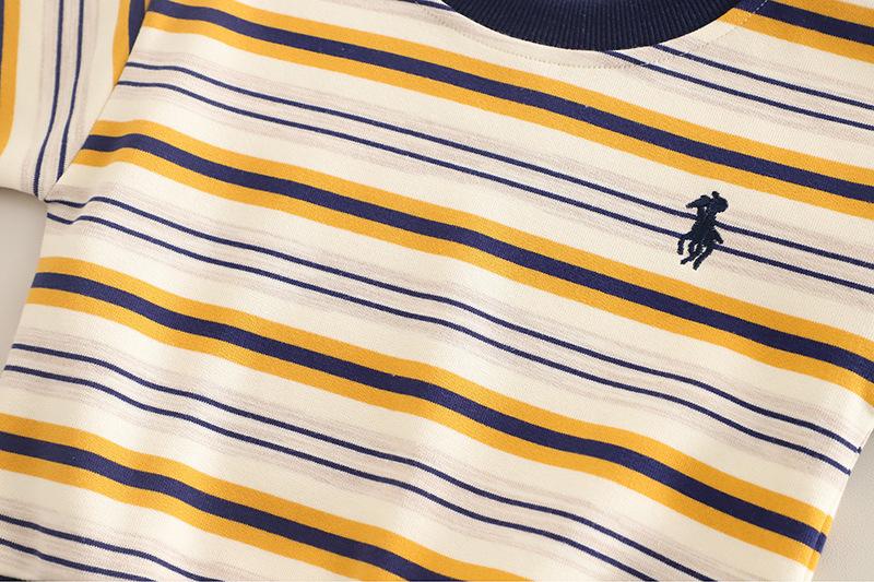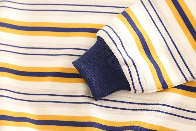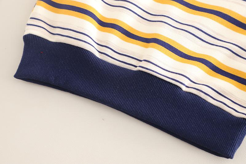 Navy Blue Striped Embroidered Sweatshirt Long Sleeve Set, Khaki Striped Embroidered Sweatshirt Long Sleeve Set...