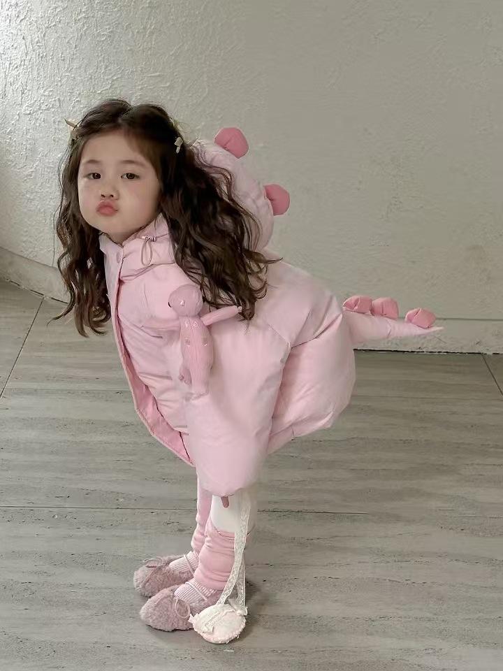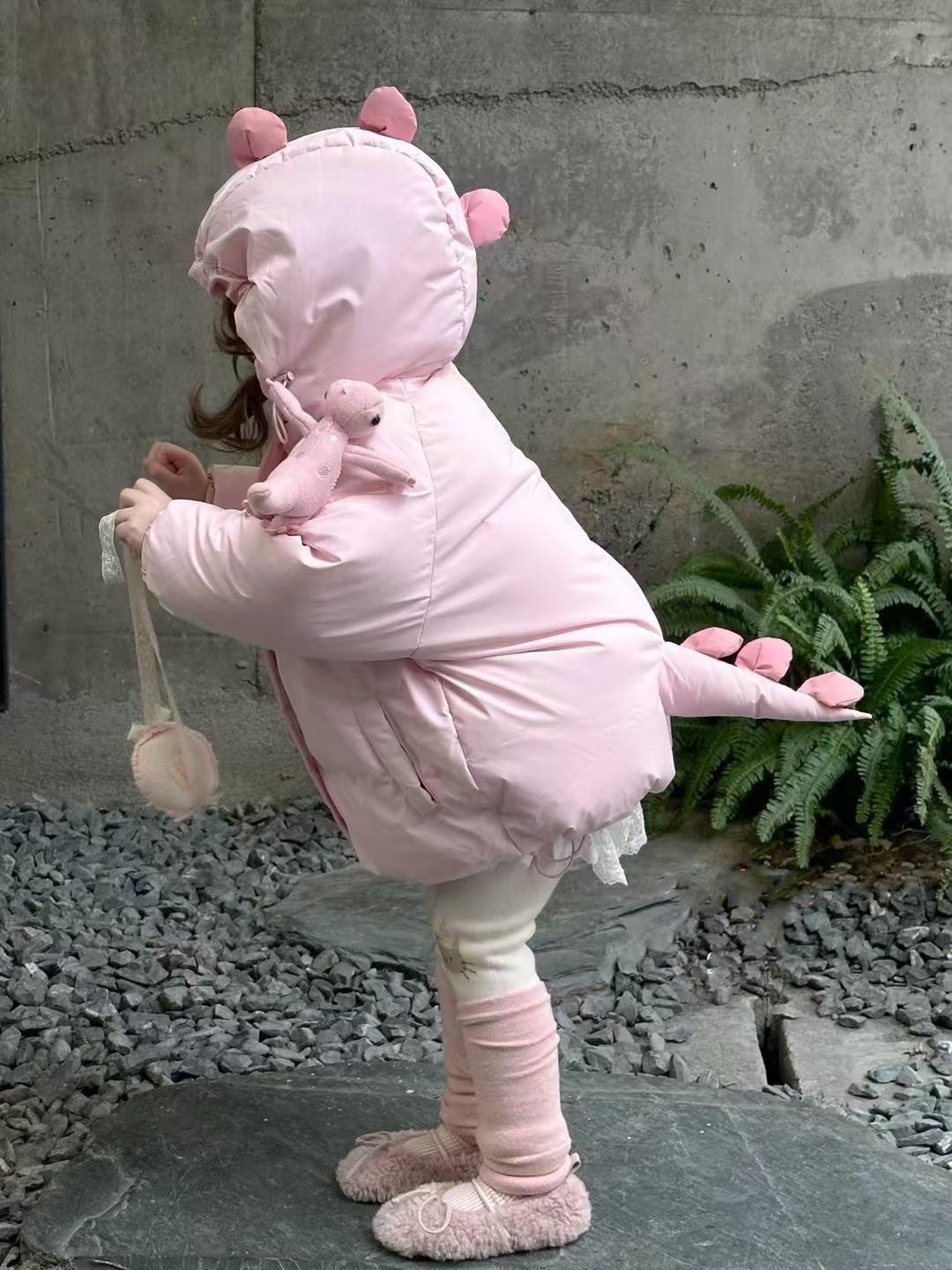 2024 Estilo Coreano Nueva Chaqueta de Plumón para Niños y Niñas Abrigo de Algodón con Forma de Dinosaurio de Dibujos Animados para Bebé
