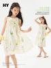 Ins Nuevo Vestido de Niñas Verano Ropa Infantil Dulce Estéreo Flor Grande Decorativa Malla Empalmada Sin Mangas Vestido de Princesa