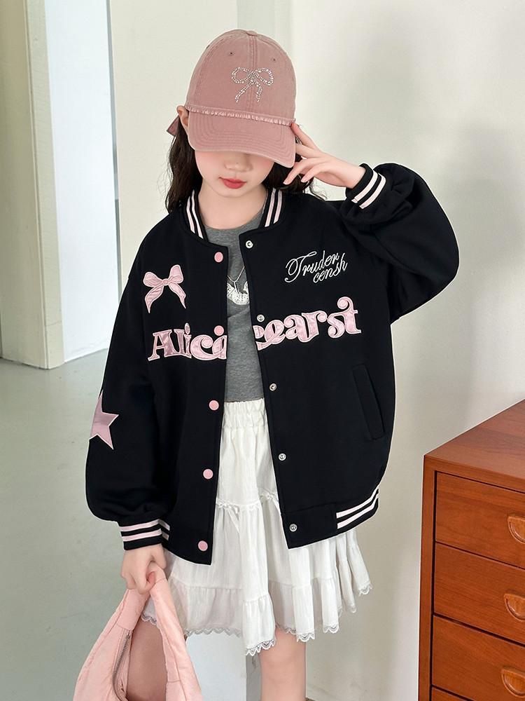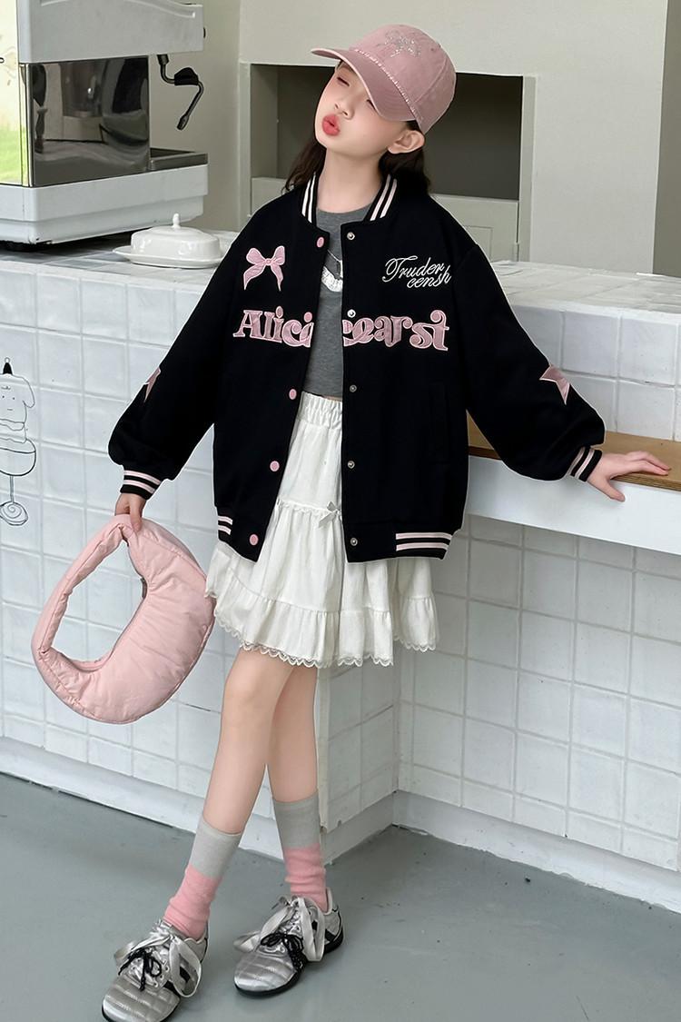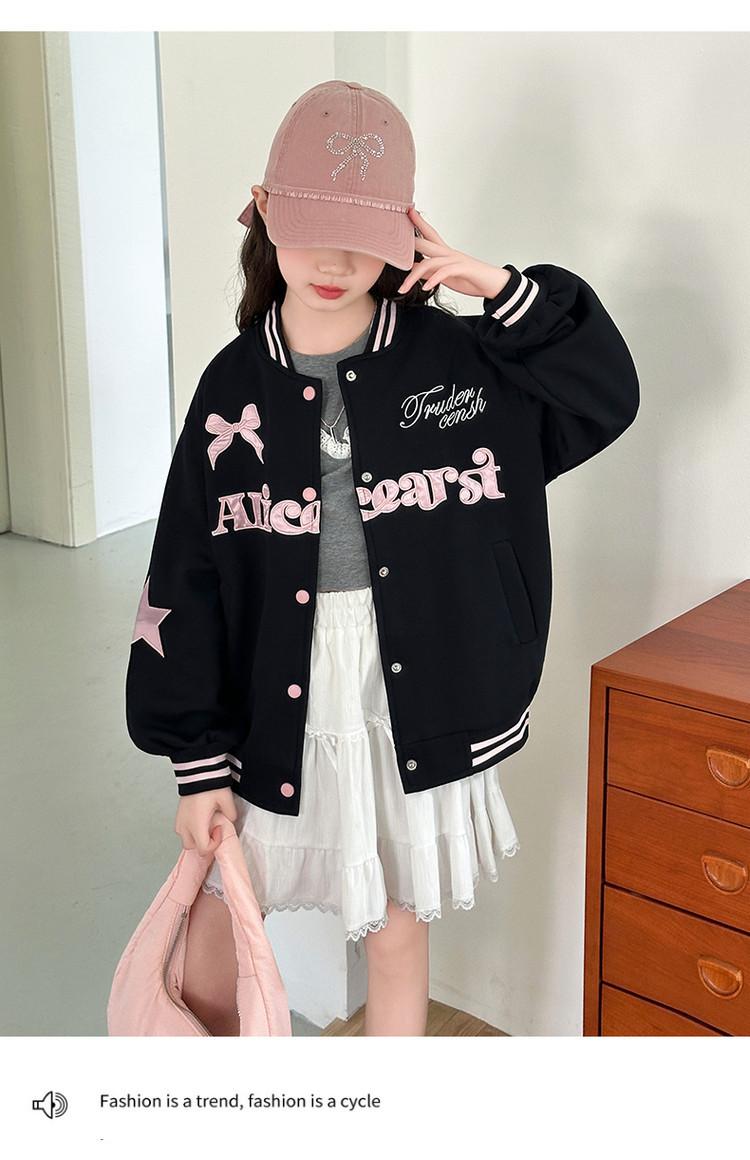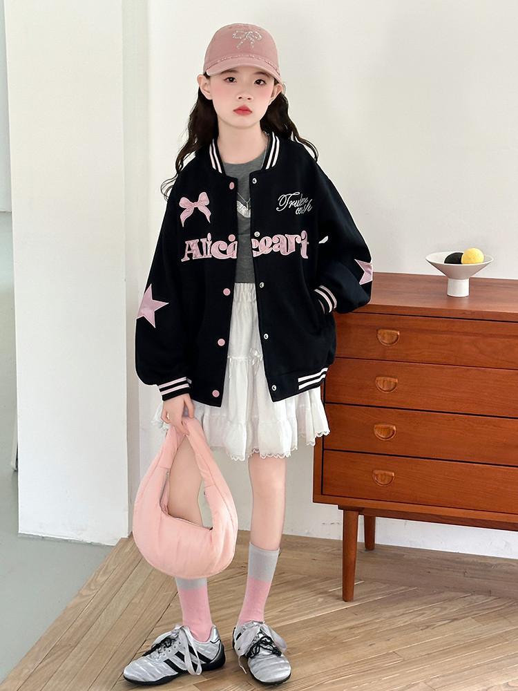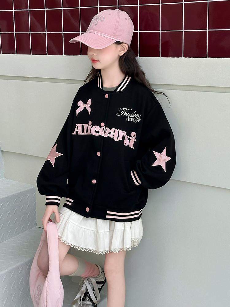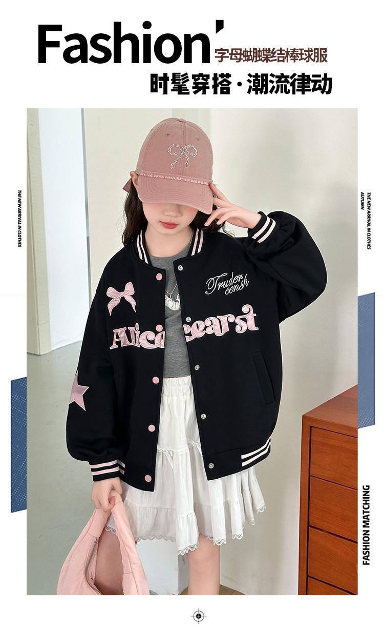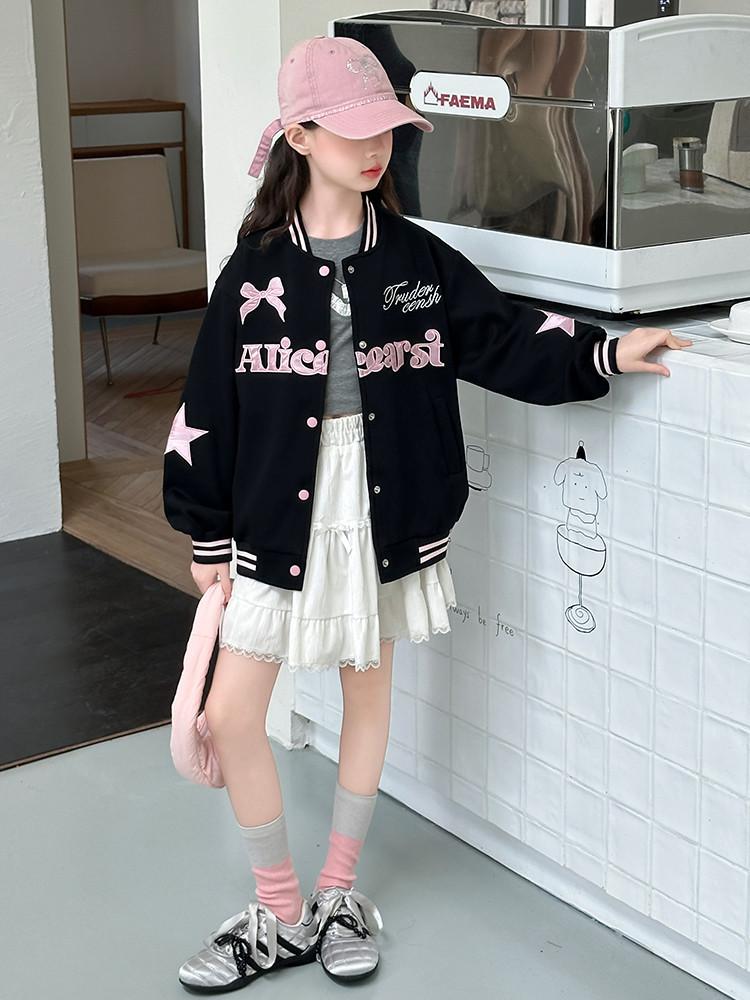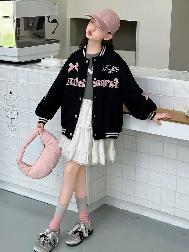 Chaqueta para Niñas 2025 Nueva Primavera y Otoño Niños Elegante Moda Medianos y Grandes Niña Bordado Lazo Uniforme de Béisbol