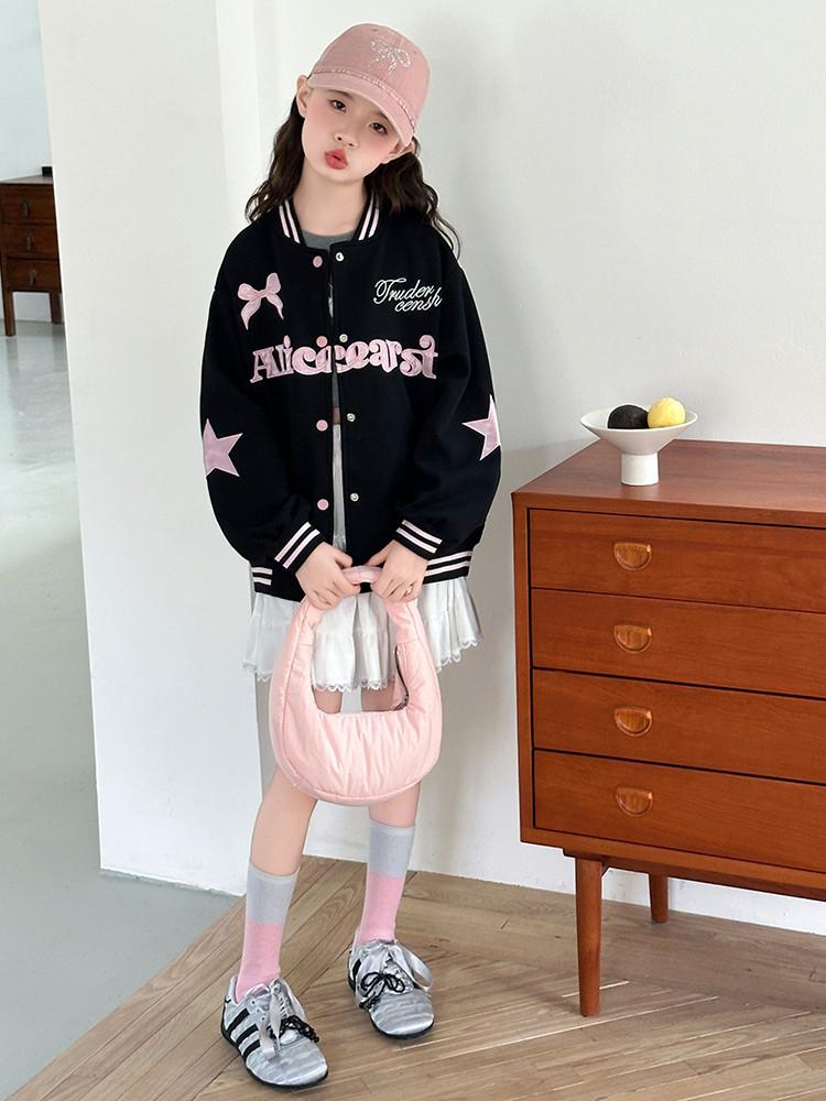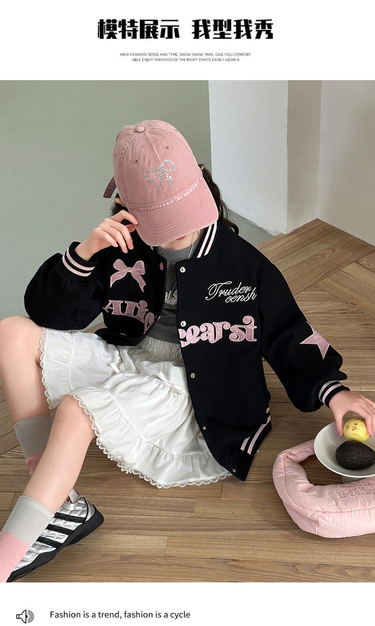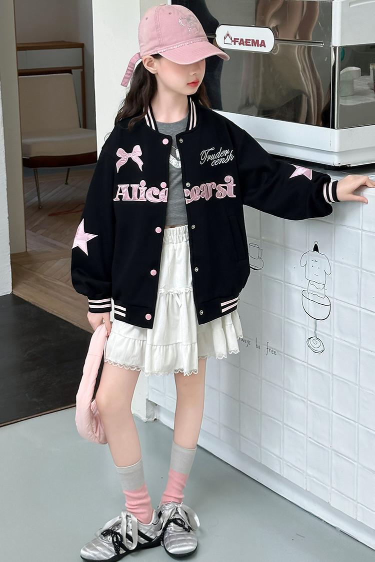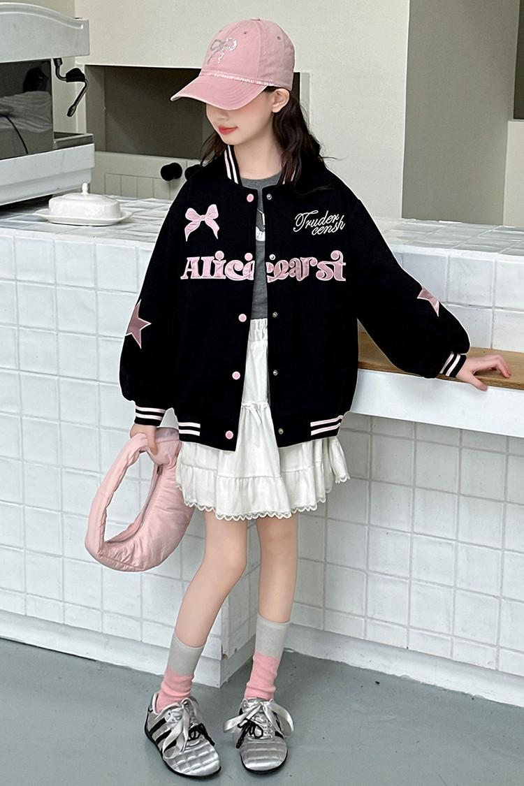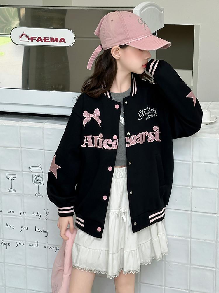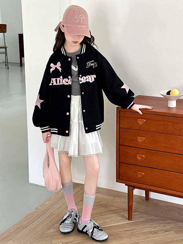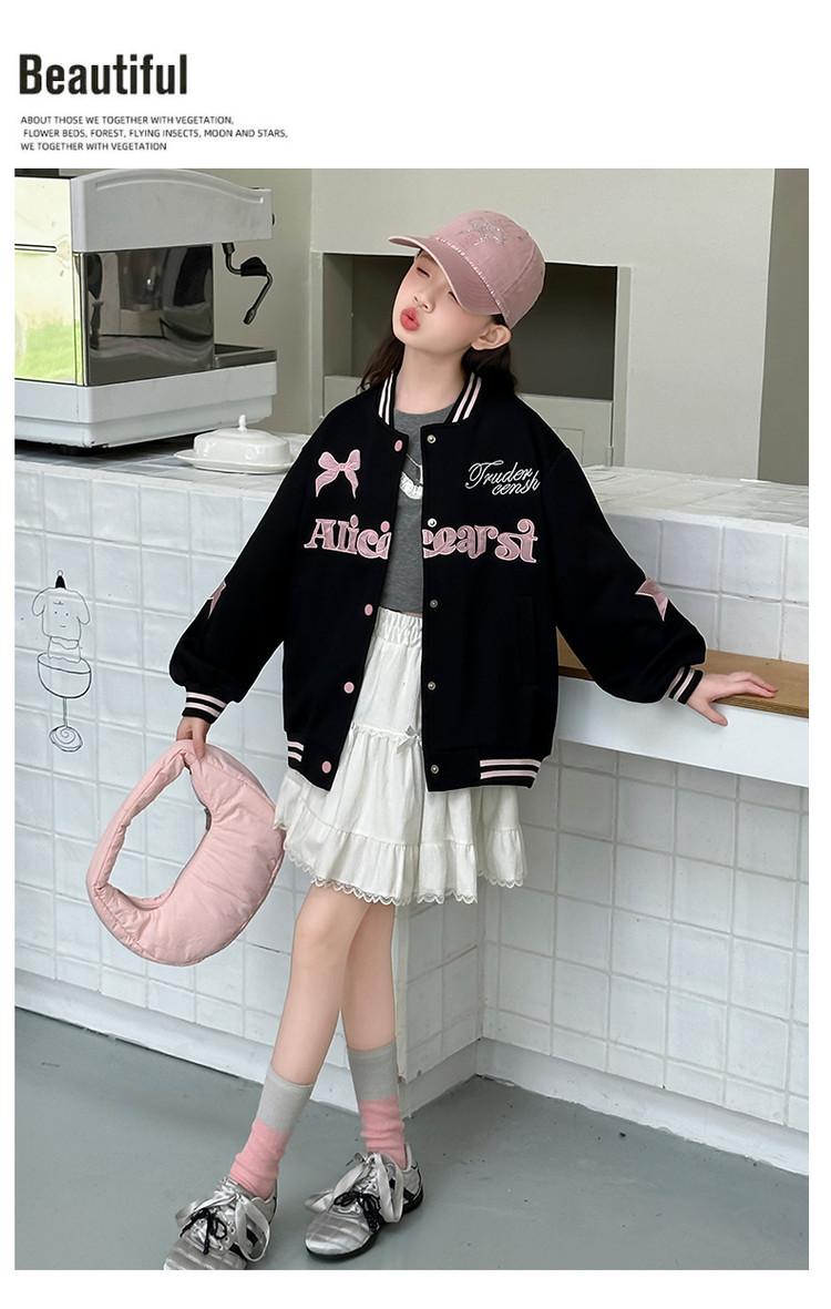 Chaqueta para Niñas 2025 Nueva Primavera y Otoño Niños Elegante Moda Medianos y Grandes Niña Bordado Lazo Uniforme de Béisbol