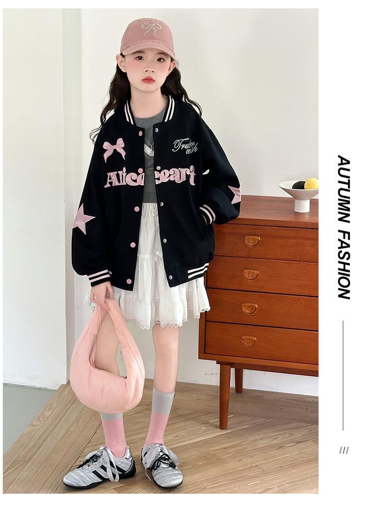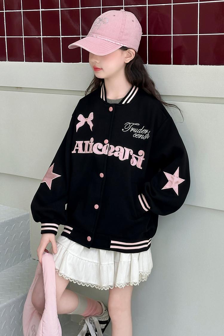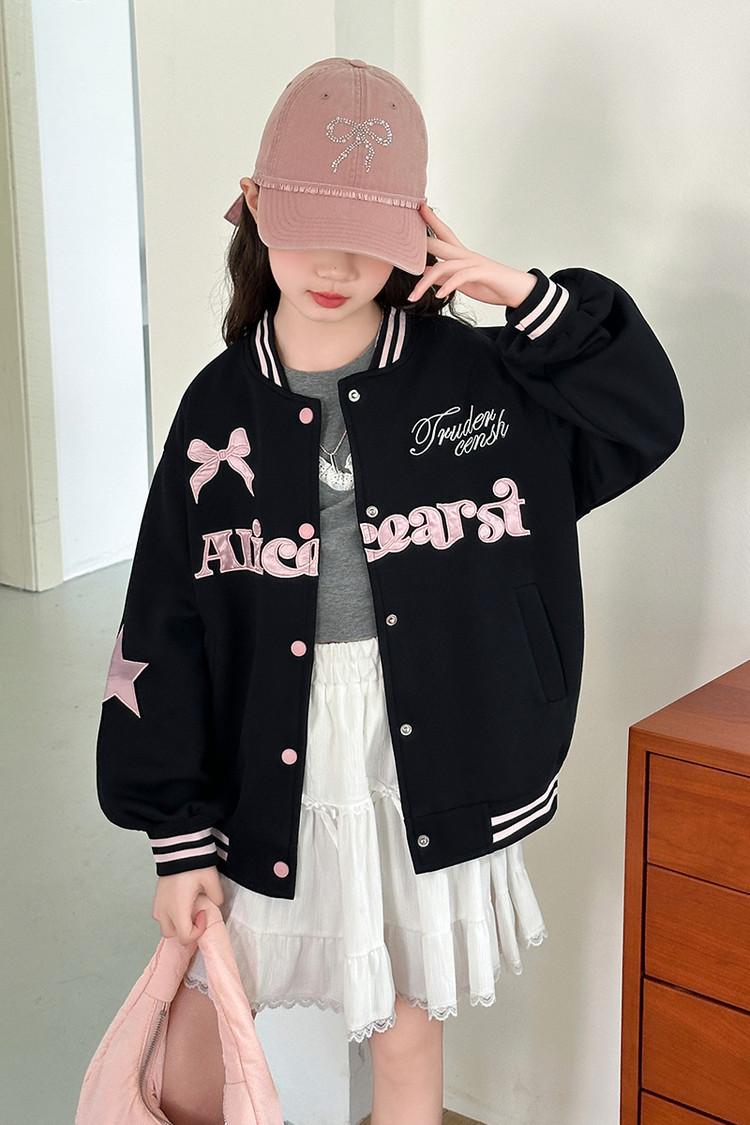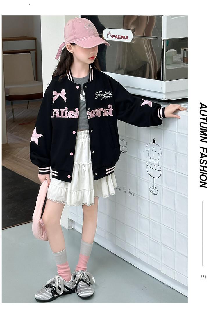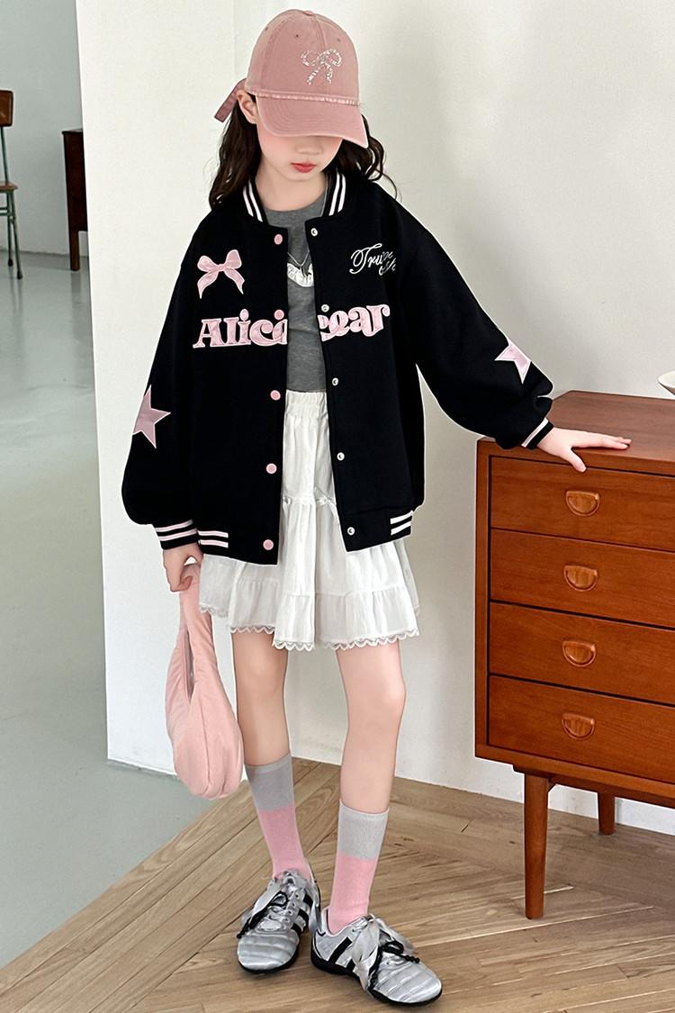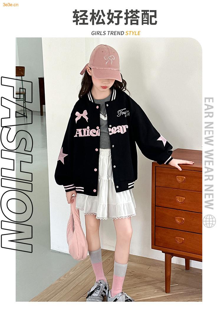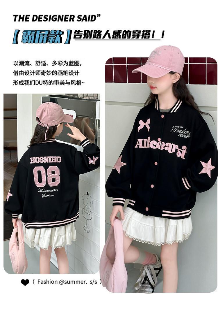 Chaqueta para Niñas 2025 Nueva Primavera y Otoño Niños Elegante Moda Medianos y Grandes Niña Bordado Lazo Uniforme de Béisbol