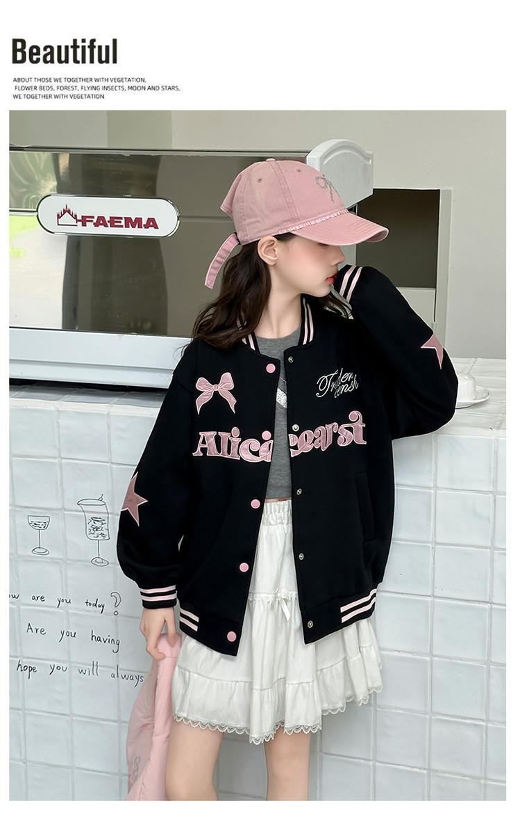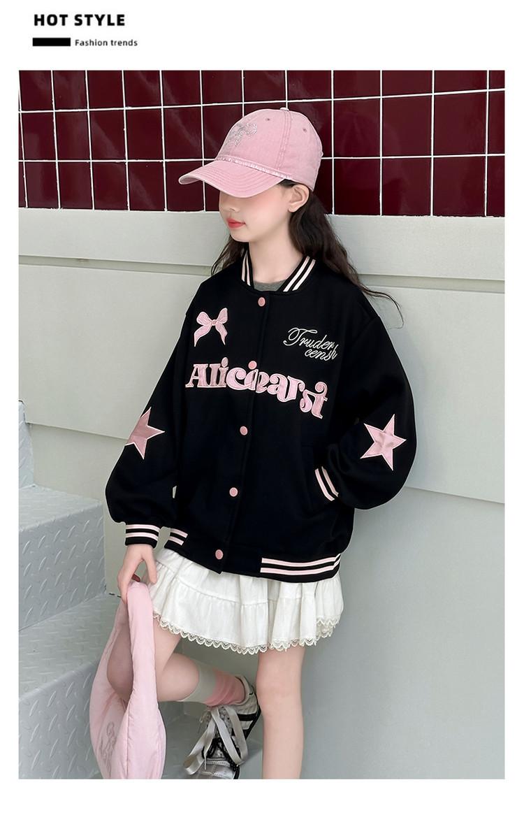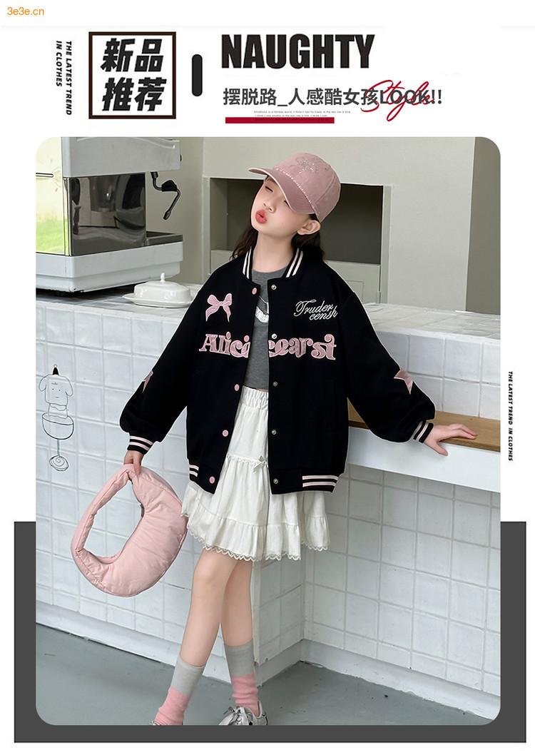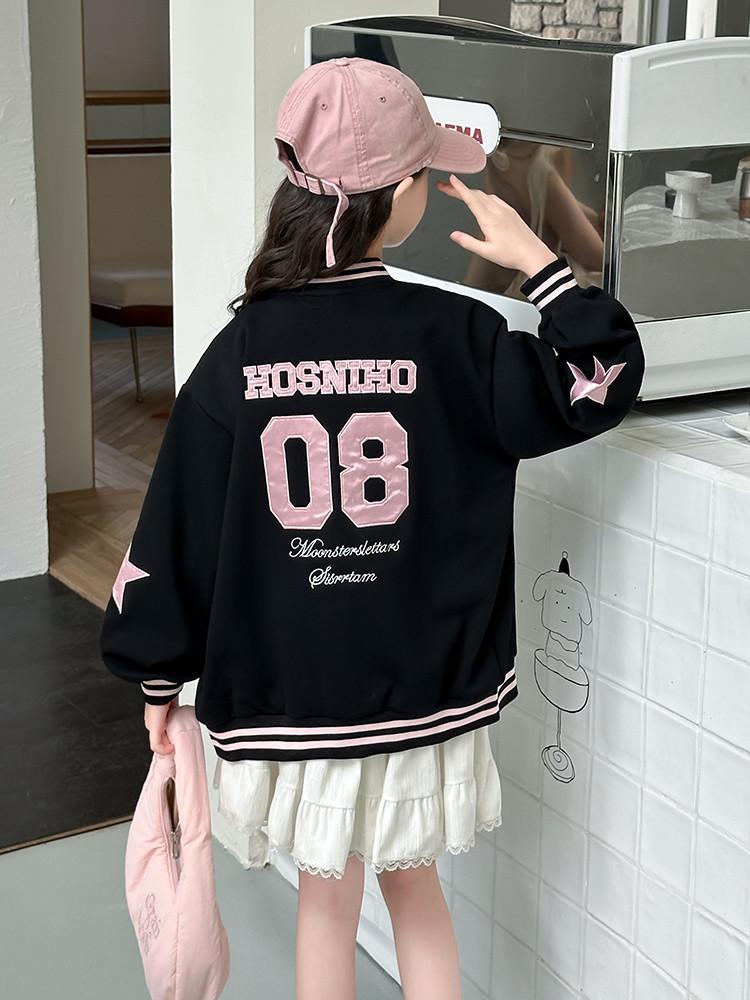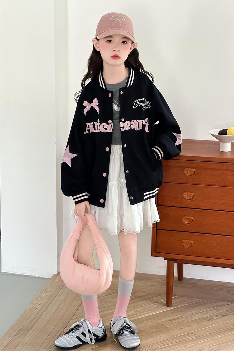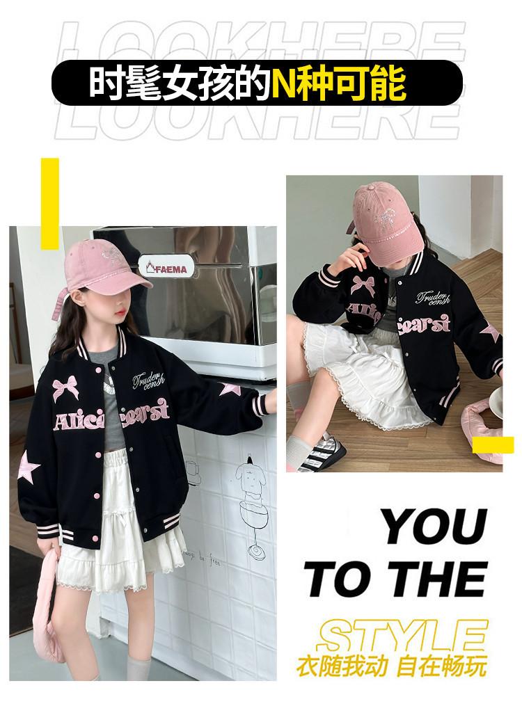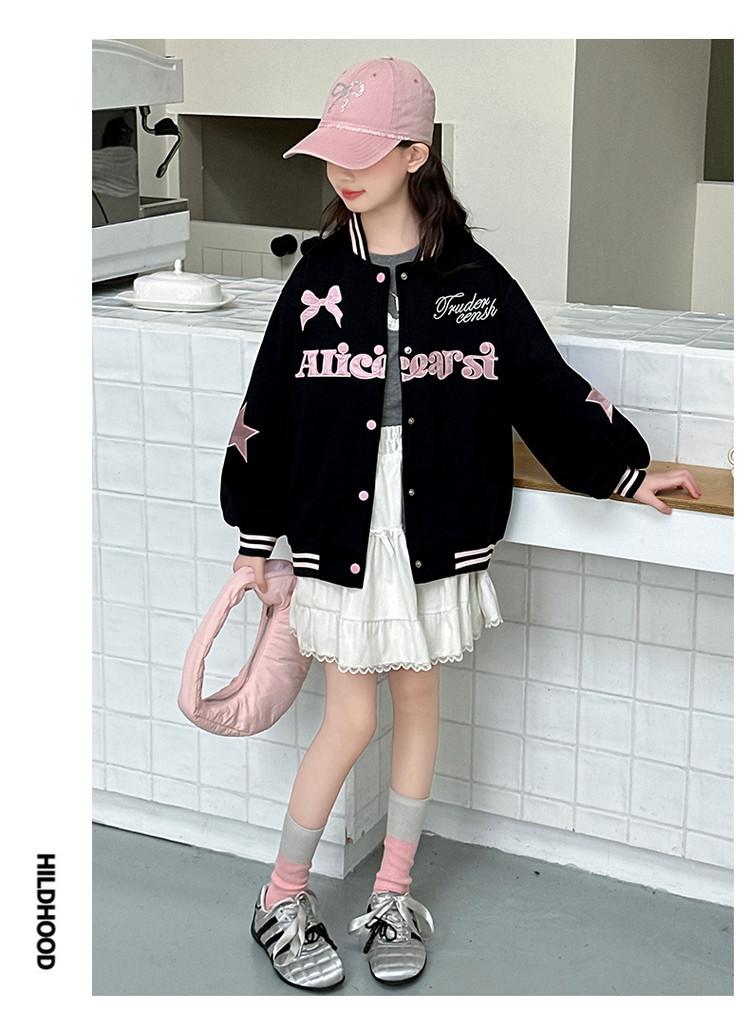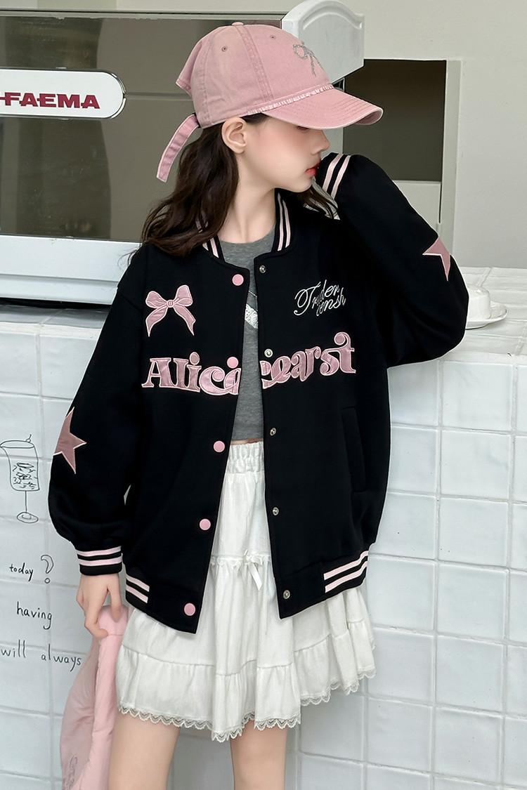 Chaqueta para Niñas 2025 Nueva Primavera y Otoño Niños Elegante Moda Medianos y Grandes Niña Bordado Lazo Uniforme de Béisbol