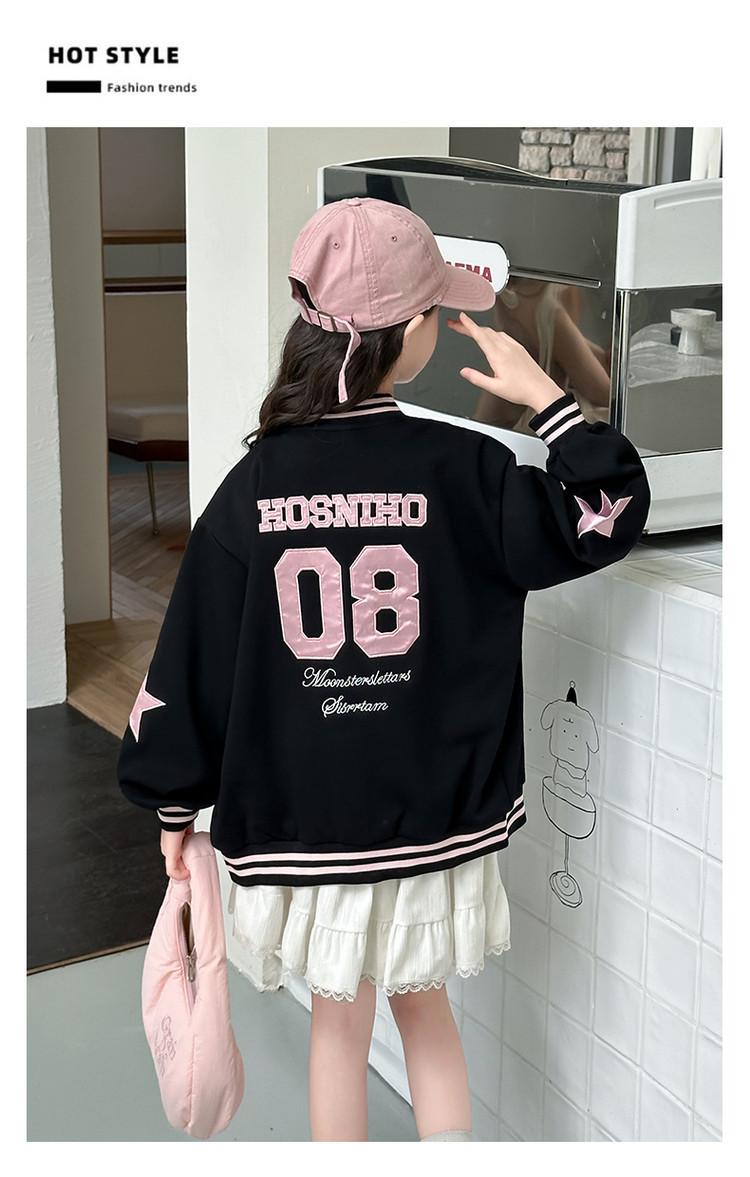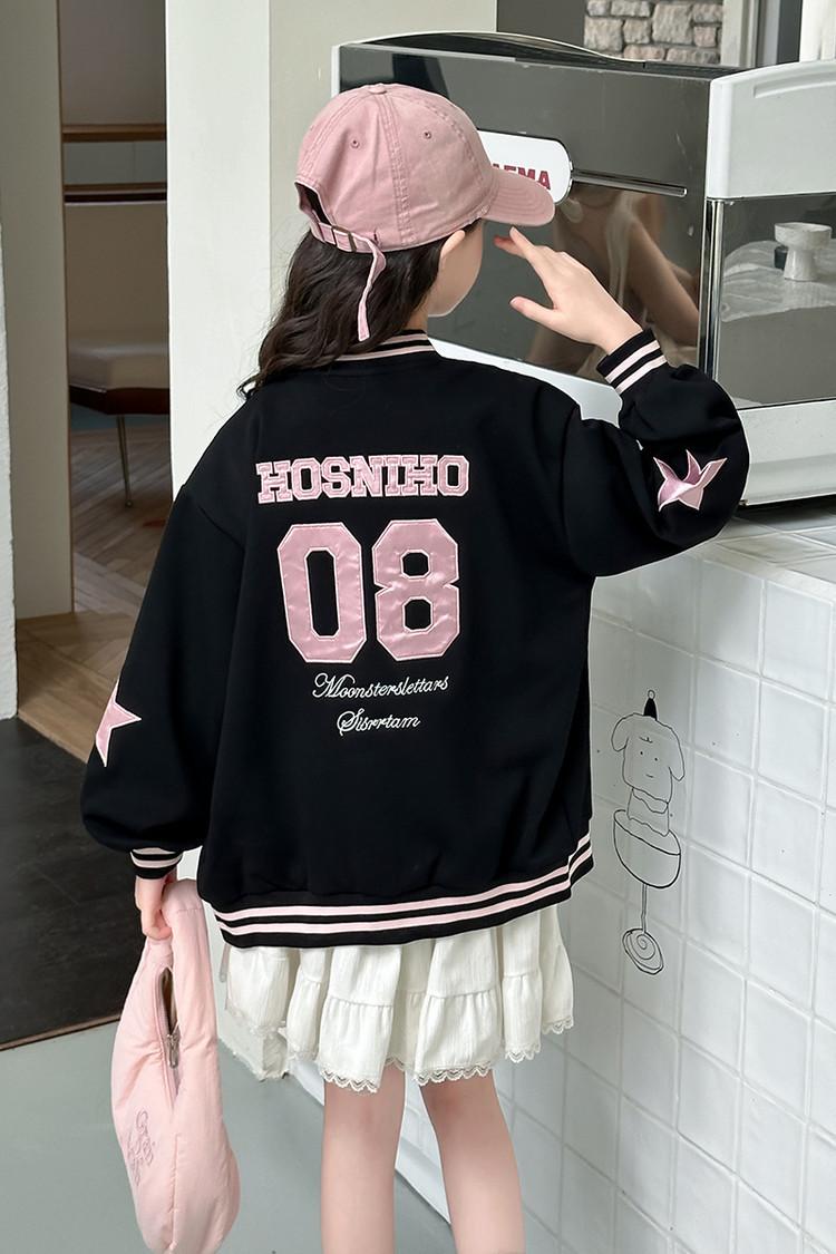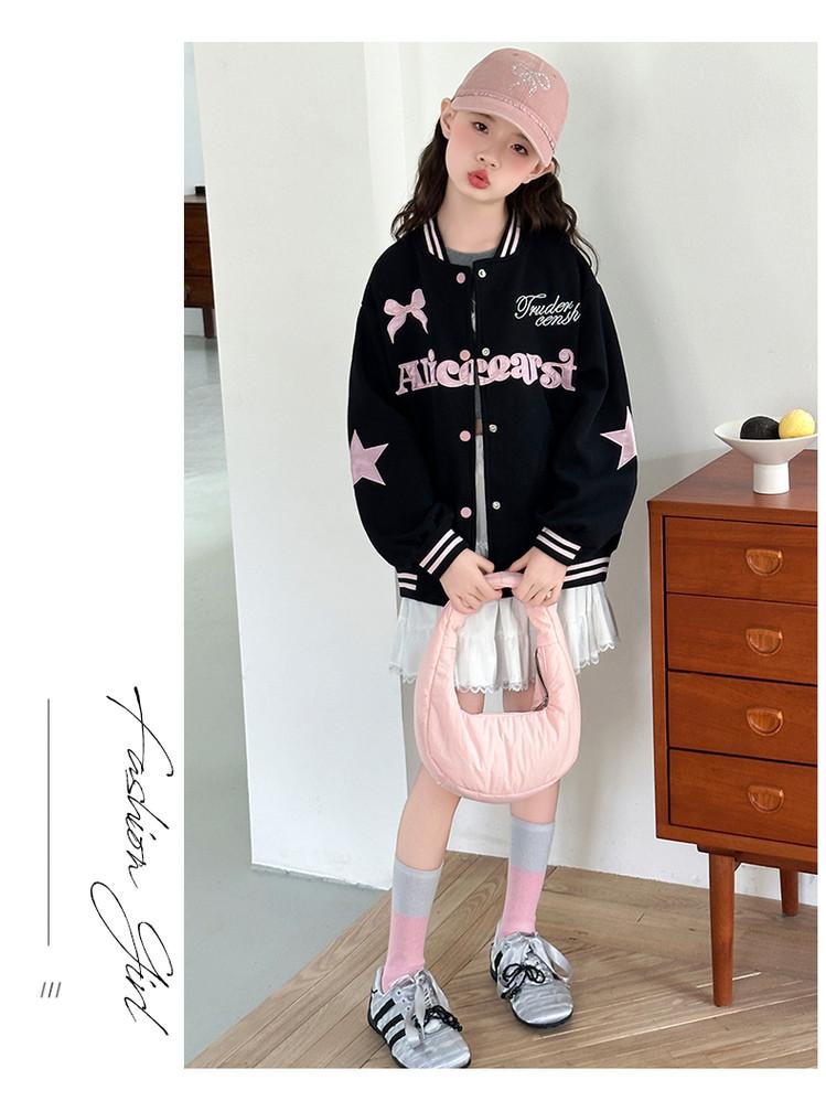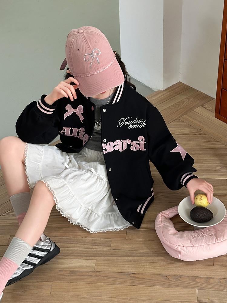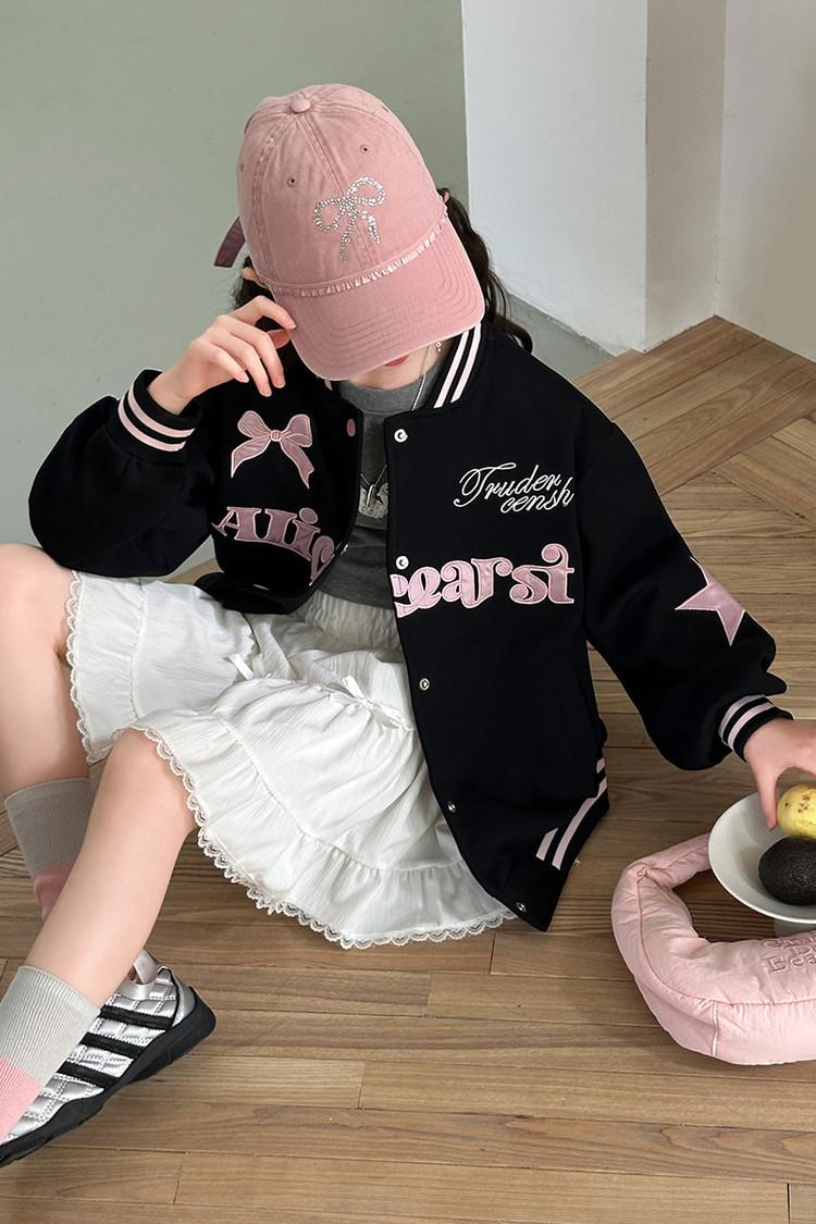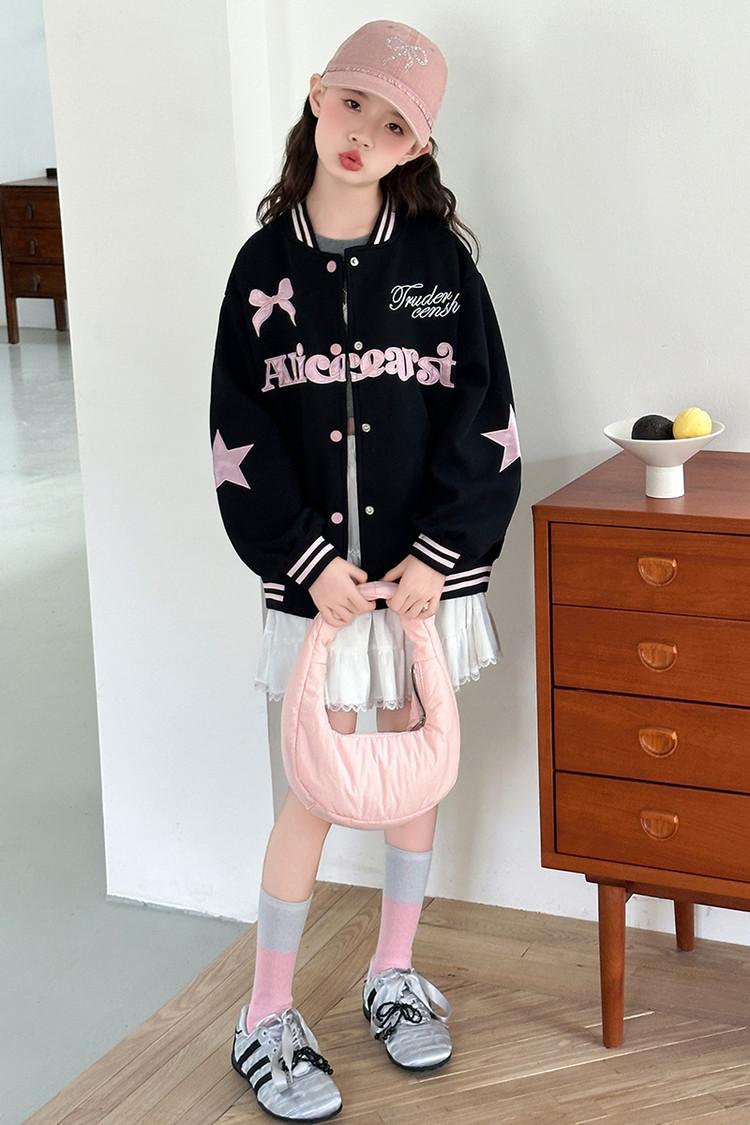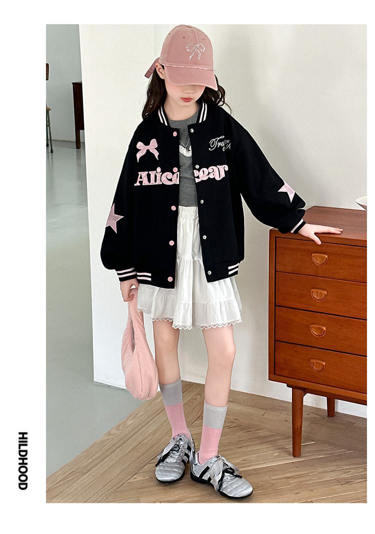 Chaqueta para Niñas 2025 Nueva Primavera y Otoño Niños Elegante Moda Medianos y Grandes Niña Bordado Lazo Uniforme de Béisbol