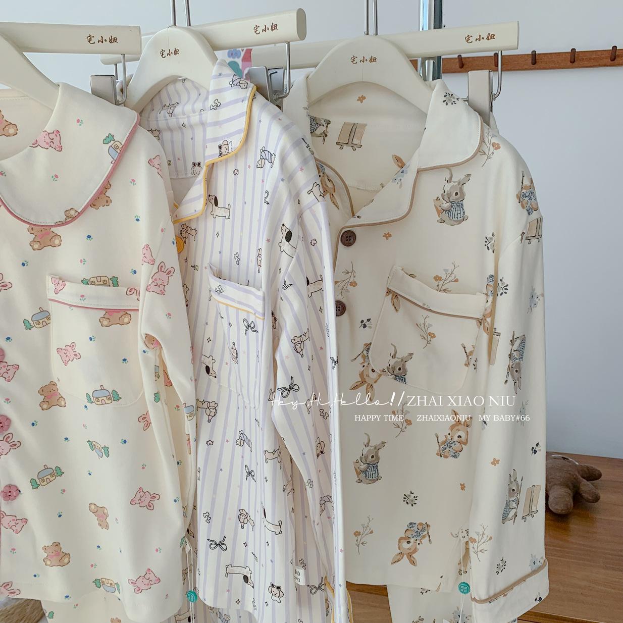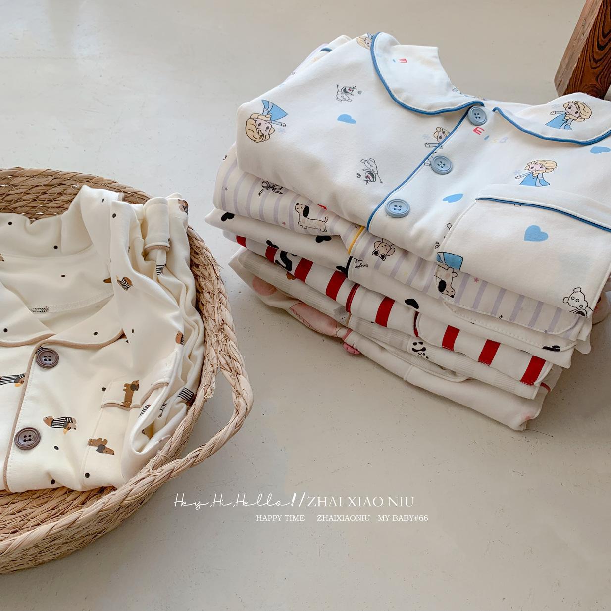 Conjunto de Ropa para el Hogar para Niños Estilo Primavera y Otoño de Algodón 100% Clase A para Niños y Niñas Manga Larga de Algodón Completo Pantalón Largo Pijama para Bebé