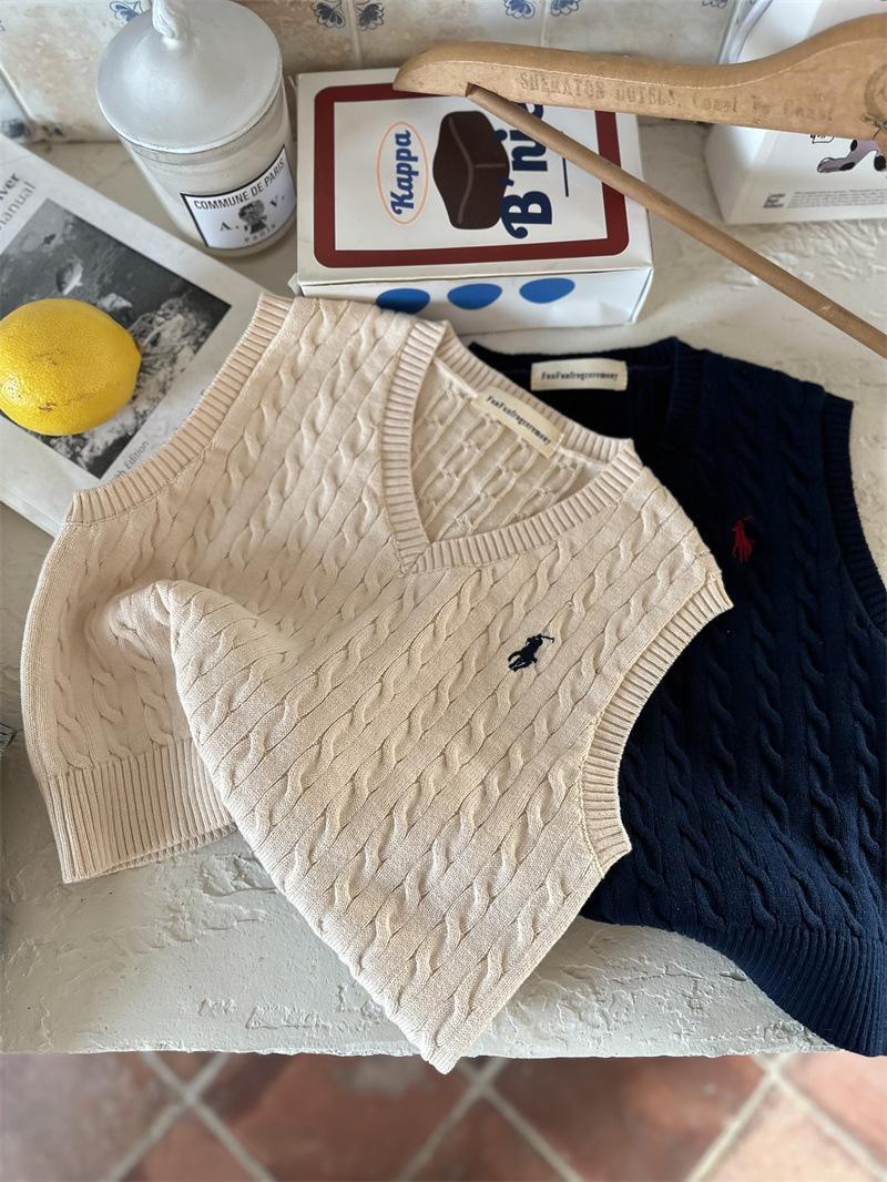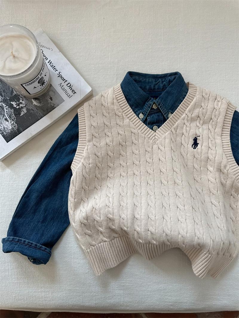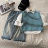 Chaleco Suéter Coreano para Niños Otoño Nuevo Top Versátil Moderno Chaleco Tejido para Bebé Niñas Color Sólido