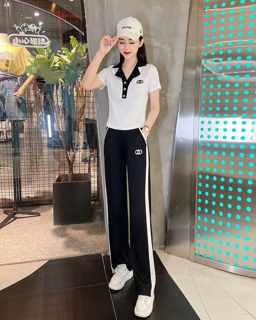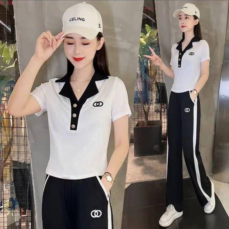 Traje Deportivo de Manga Corta con Solapa de Moda para Mujer Verano 2023 Nuevo Elegante Reductor de Edad Moderno Traje Profesional Conjunto de Dos Piezas