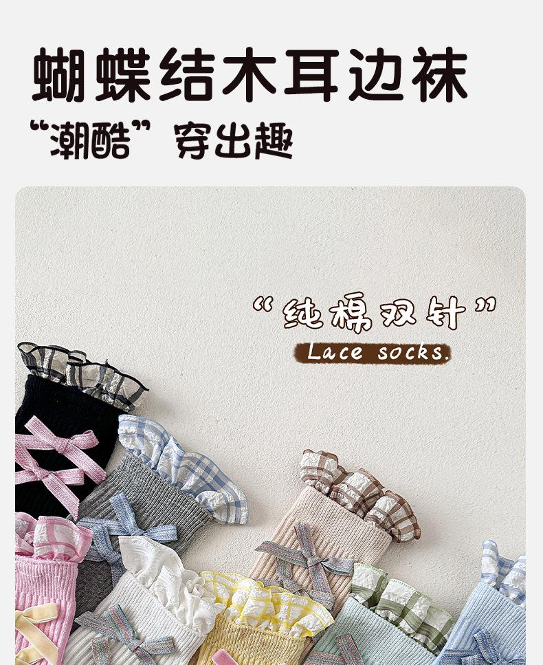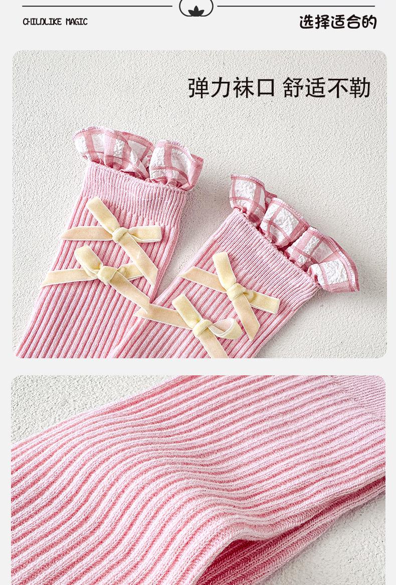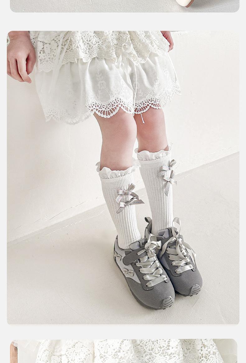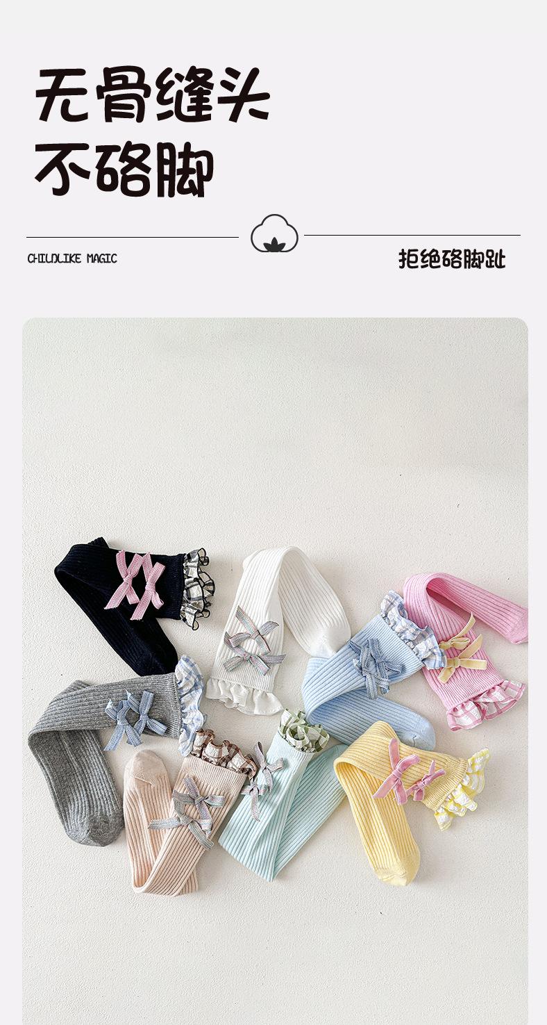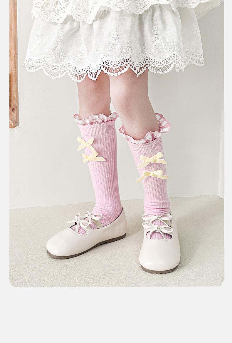 Calcetines para Niños Primavera y Otoño Algodón Peinado Doble Aguja Media Caña Calcetines para Niñas Estilo Coreano Lazo Calcetines de Princesa Calcetines Apilables para Bebé