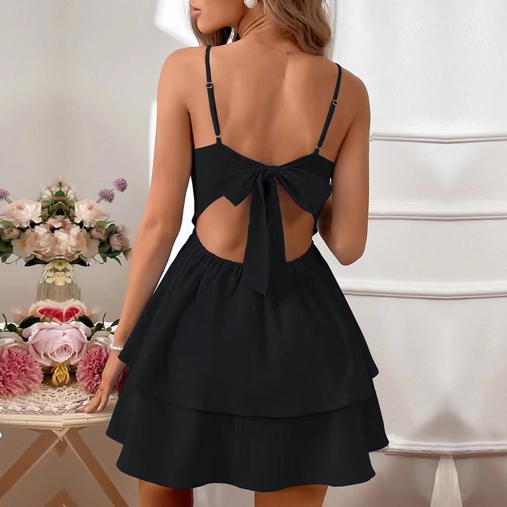 Amazon Transfronterizo Europeo y Americano Primavera y Verano Lazo de Moño Corto Sexy Vestido Mini de Tirantes