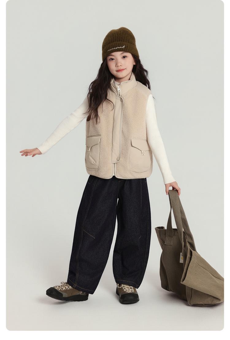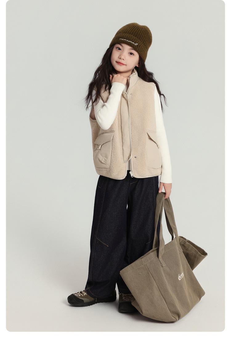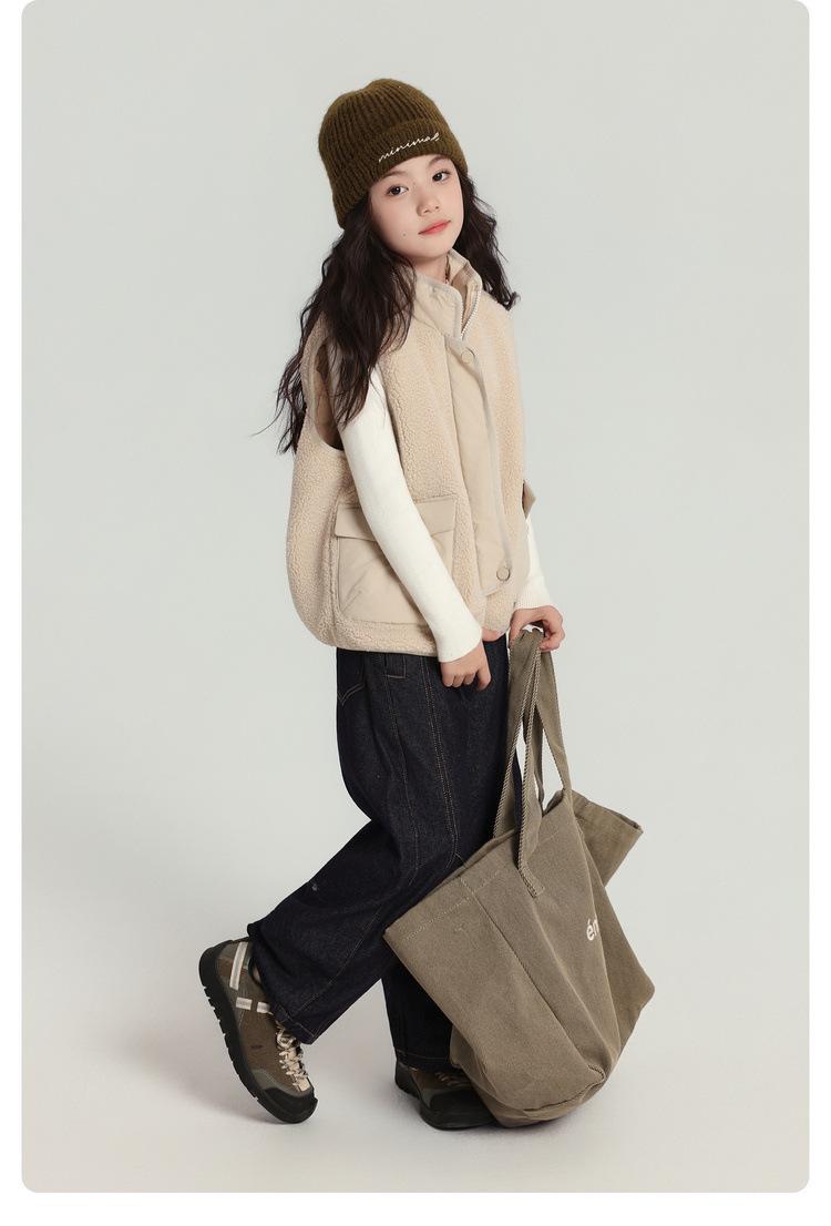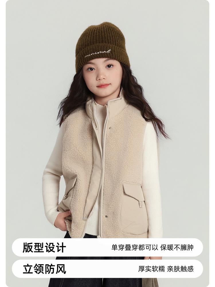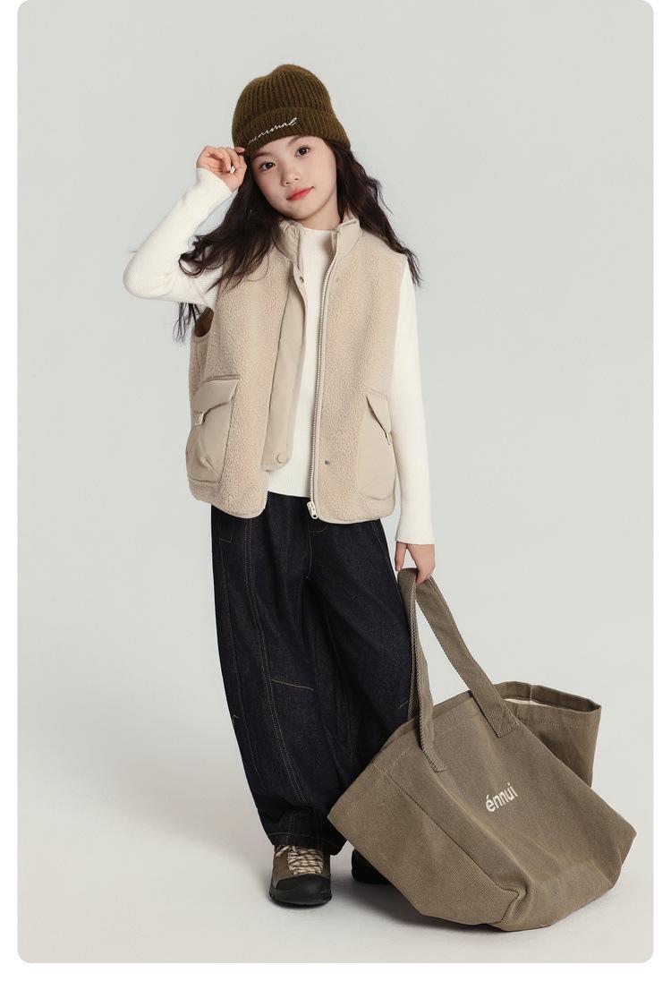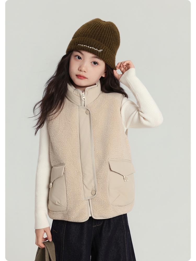 Pudding Haru Top para Niña con Cuello Alto y Acolchado de Algodón 2025 Otoño e Invierno Nuevo Estilo Chaleco de Felpa para Bebé