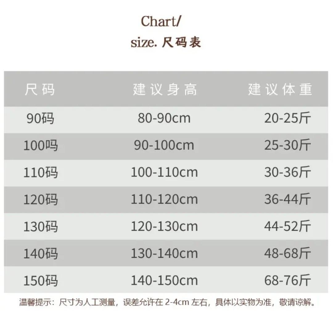 Children (3~8 years old, 100~140cm)