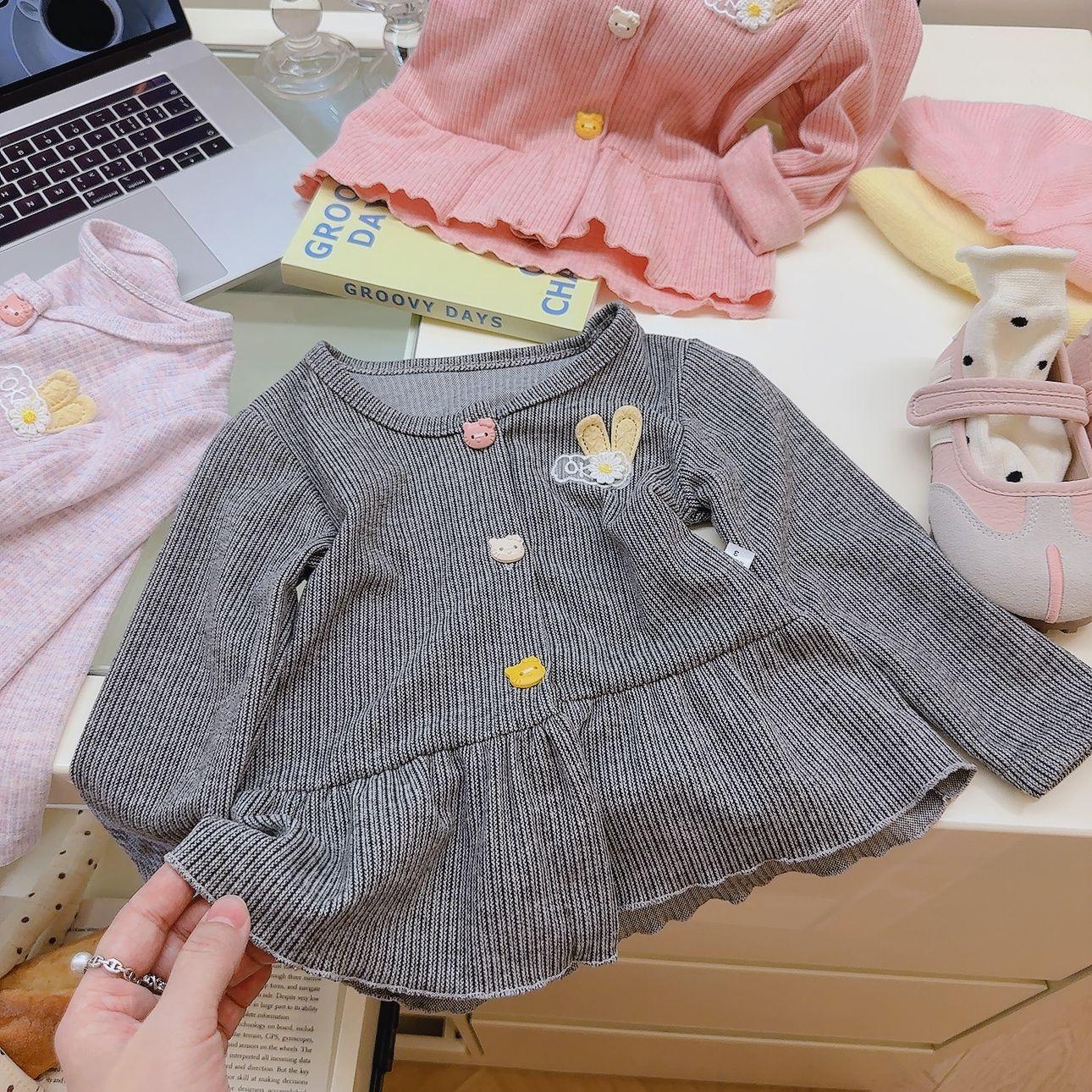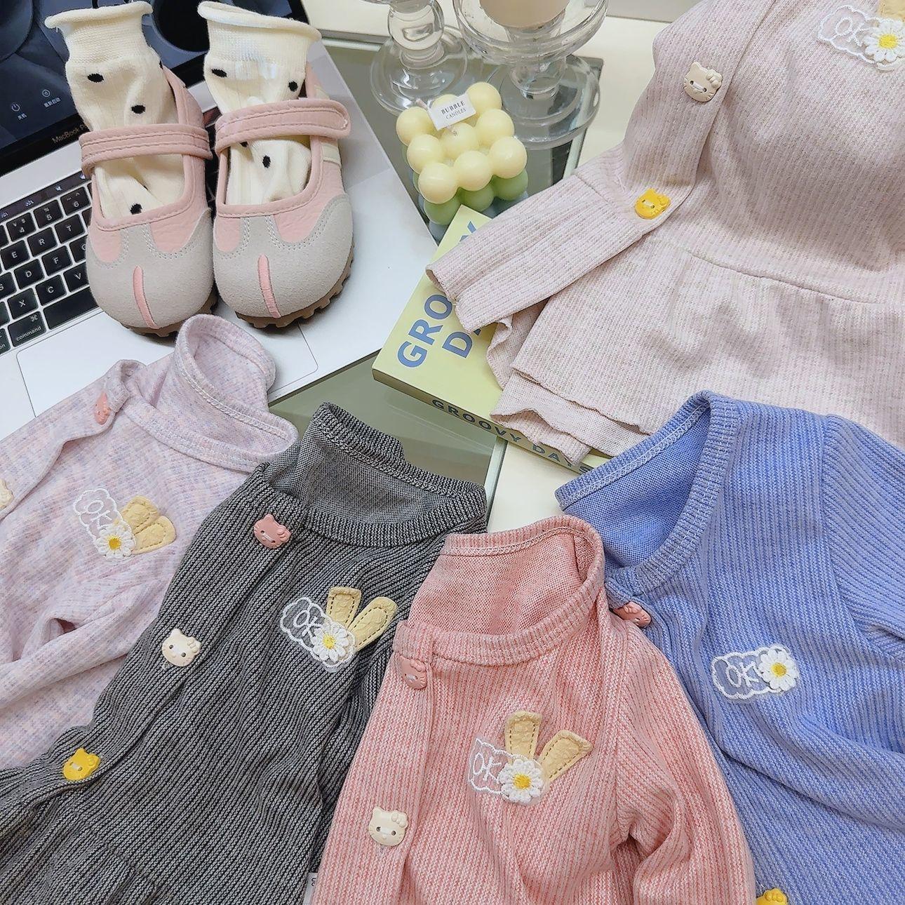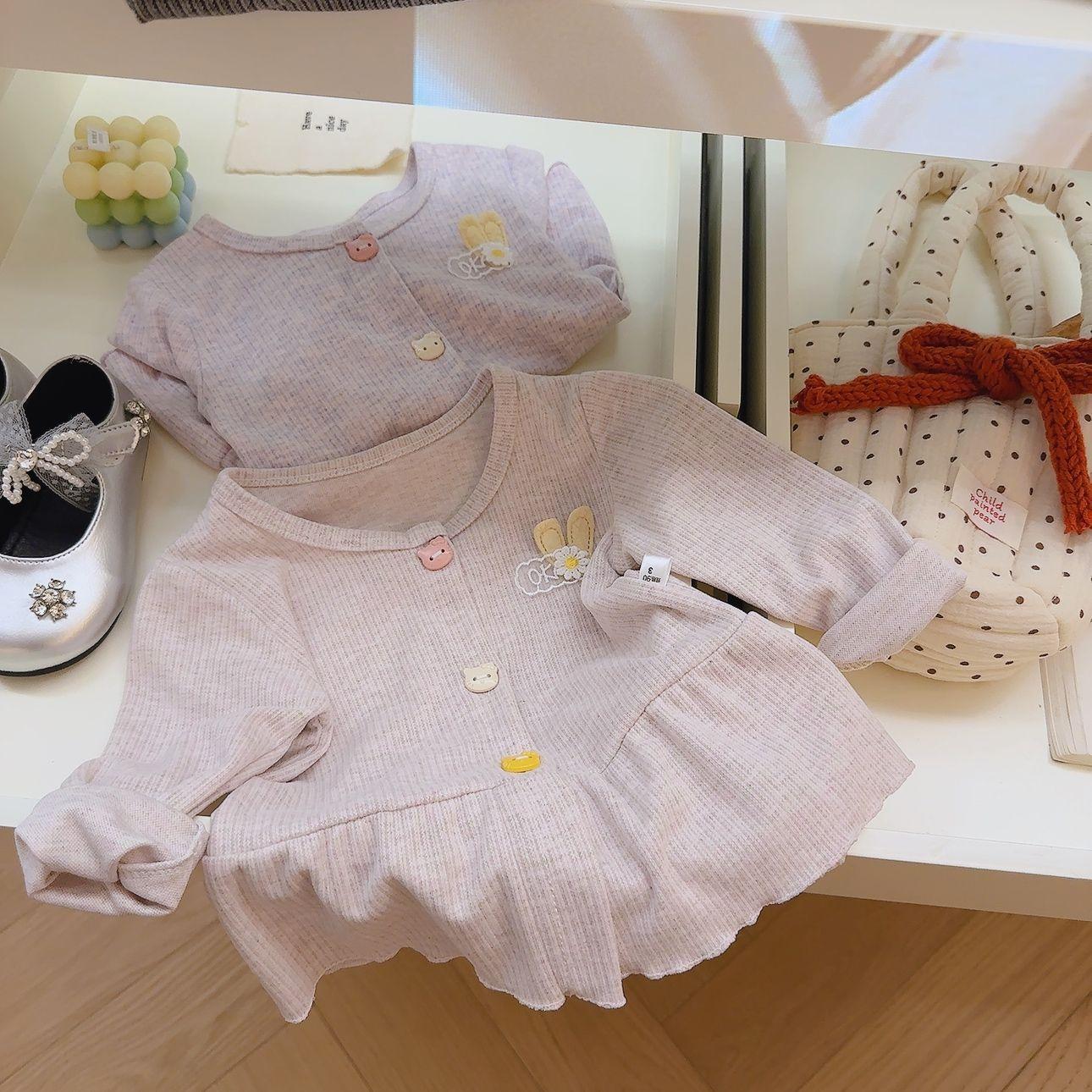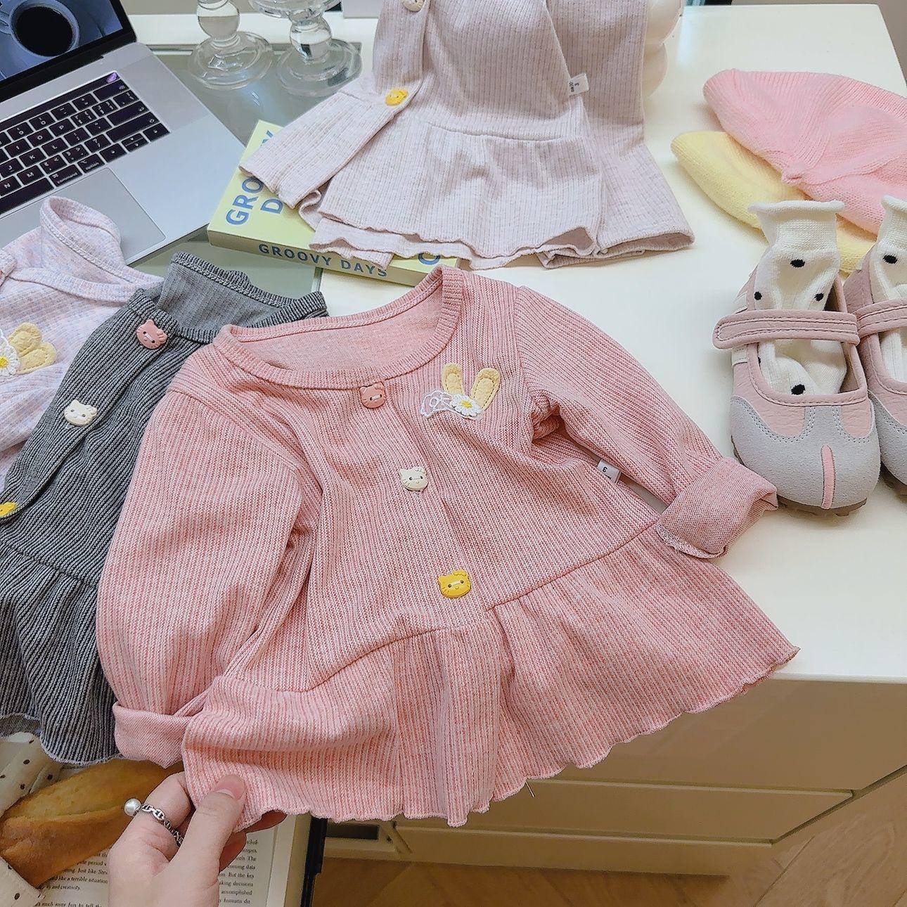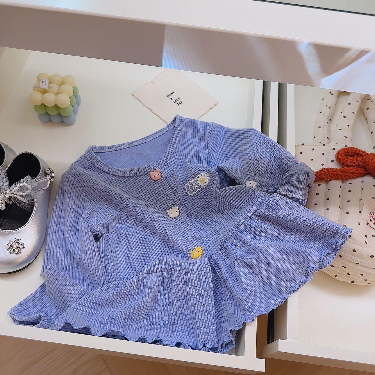 Cárdigan de punto para niños de moda 2025, top versátil para bebé niña, vestido cárdigan de primavera y otoño