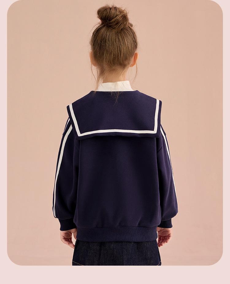 Ropa Nueva de Otoño 2025 para Niños Chaqueta de Cuello Marino Estilo Preppy para Niñas Top Deportivo Casual de Moda para Niños Medianos y Grandes