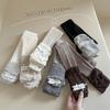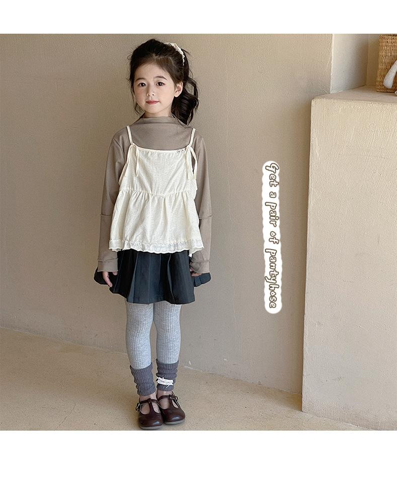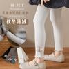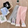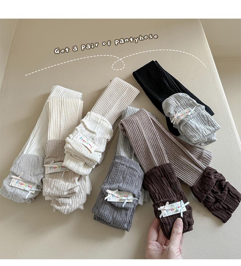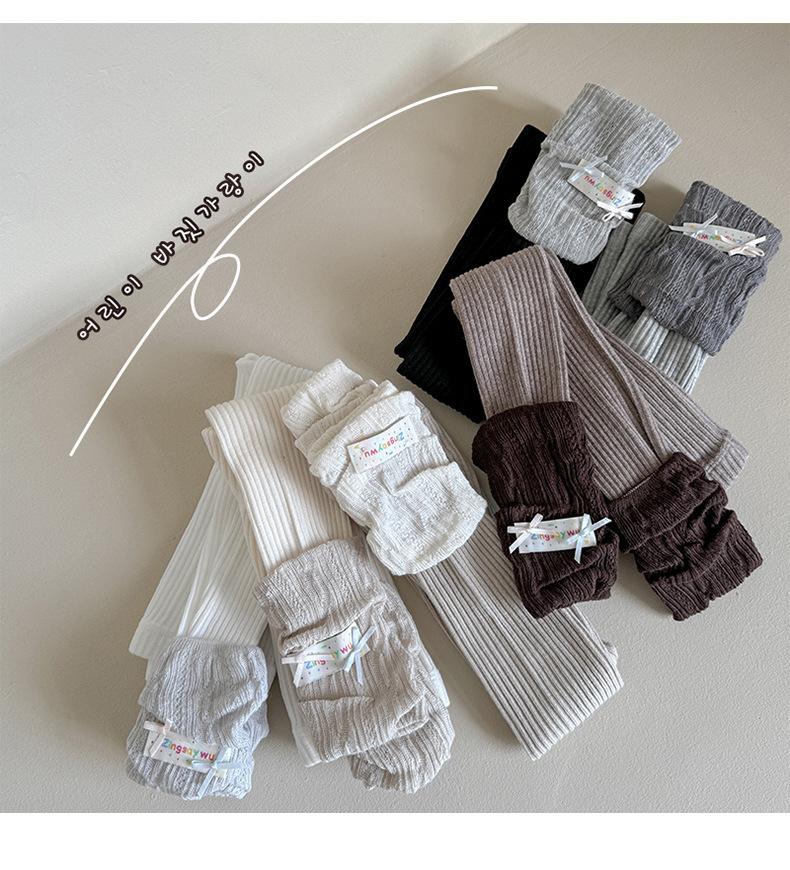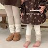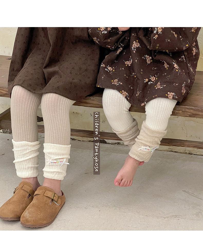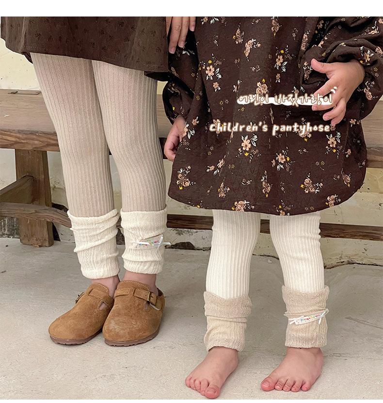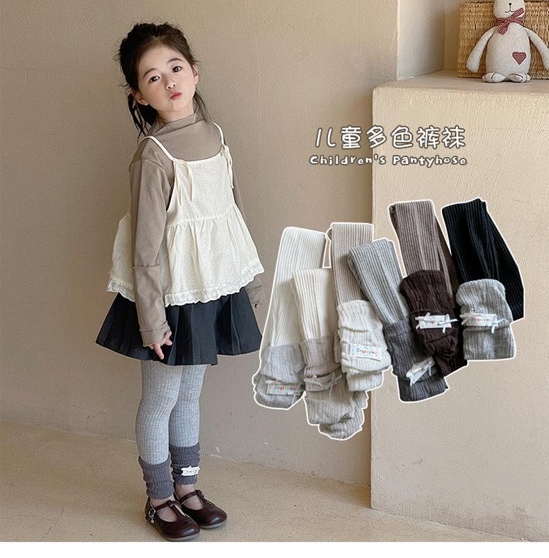 2025 nuevos leggings para niños otoño e invierno ropa exterior niñas lazo etiqueta de tela medias tejidas niñas pantalones de nueve puntos