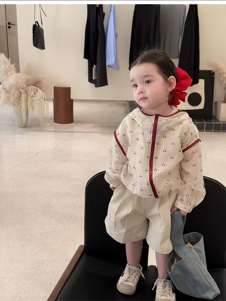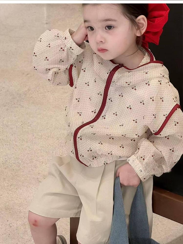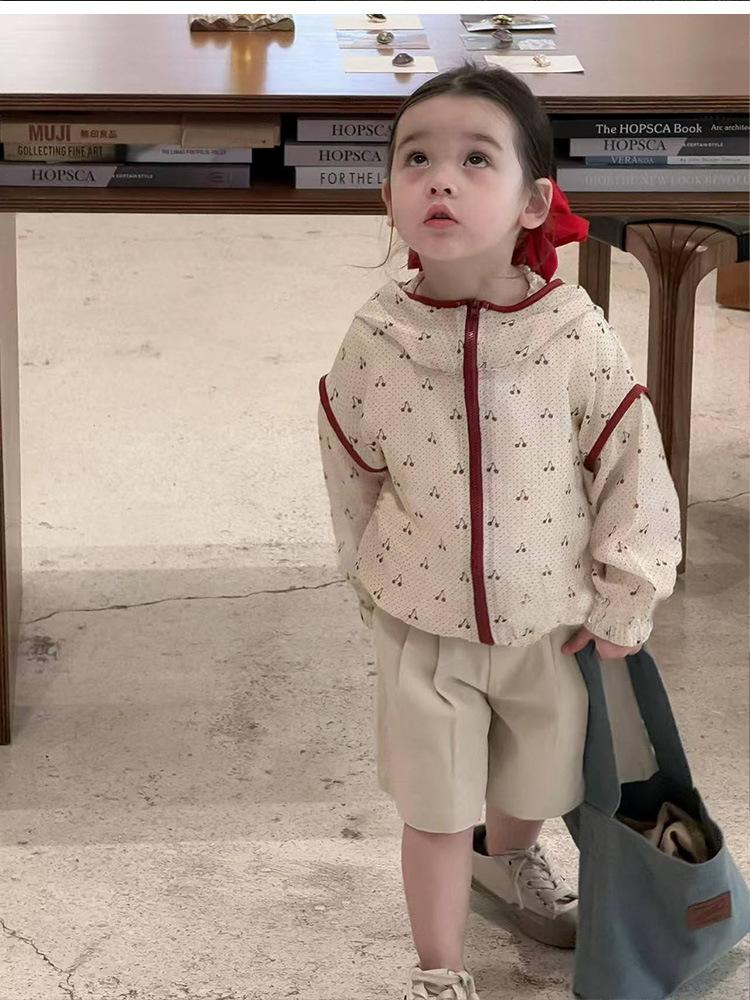 Abrigo para niña 2025 Verano Nuevo Coreano para Bebé Estilo Occidental Estampado con Capucha Protección Solar Cárdigan Fino Ropa para la Piel