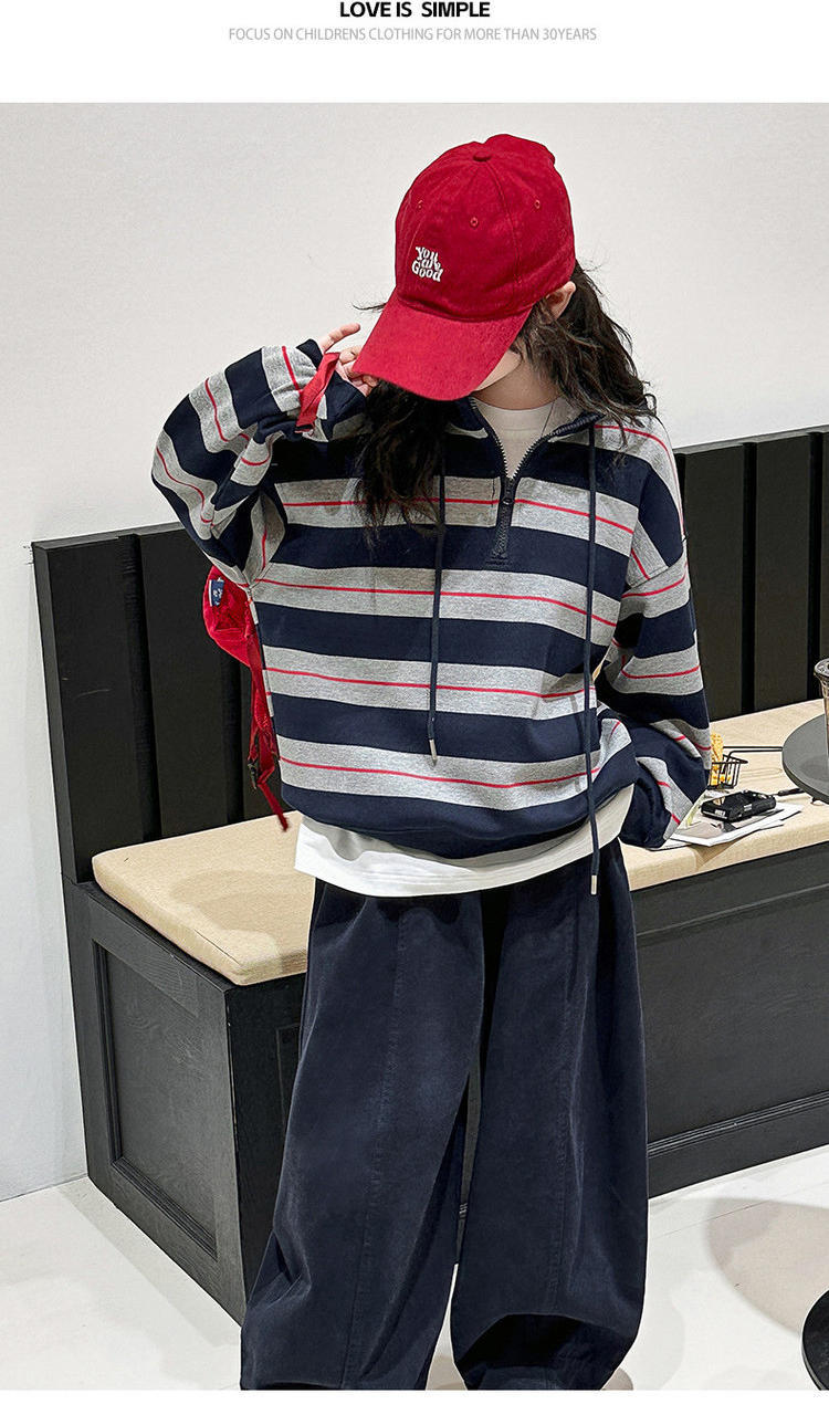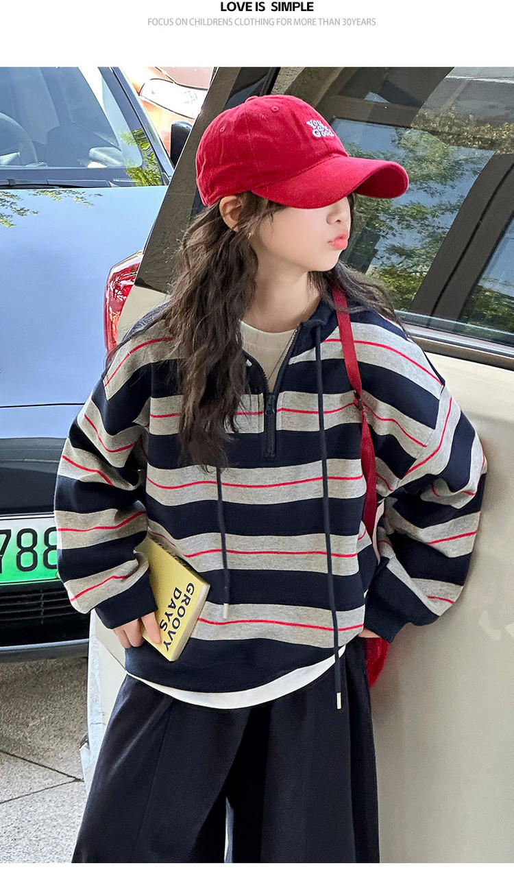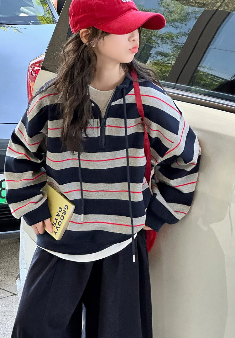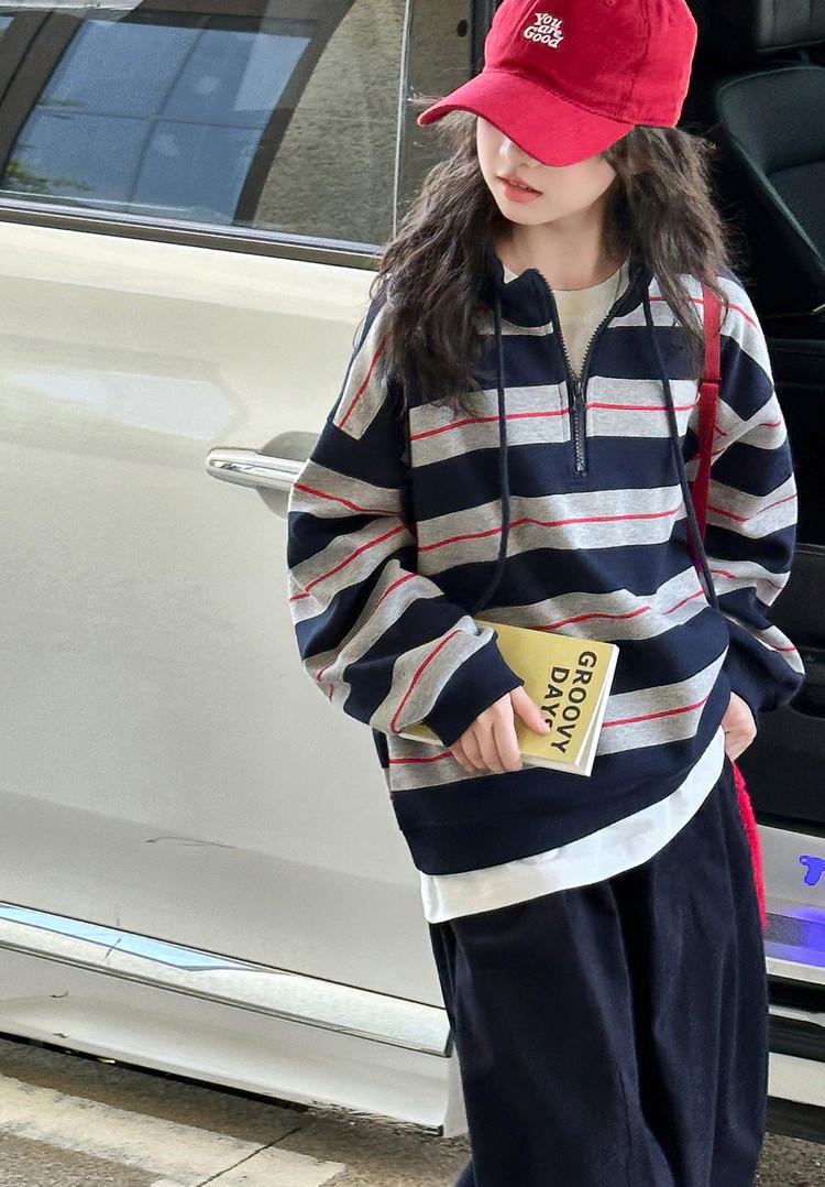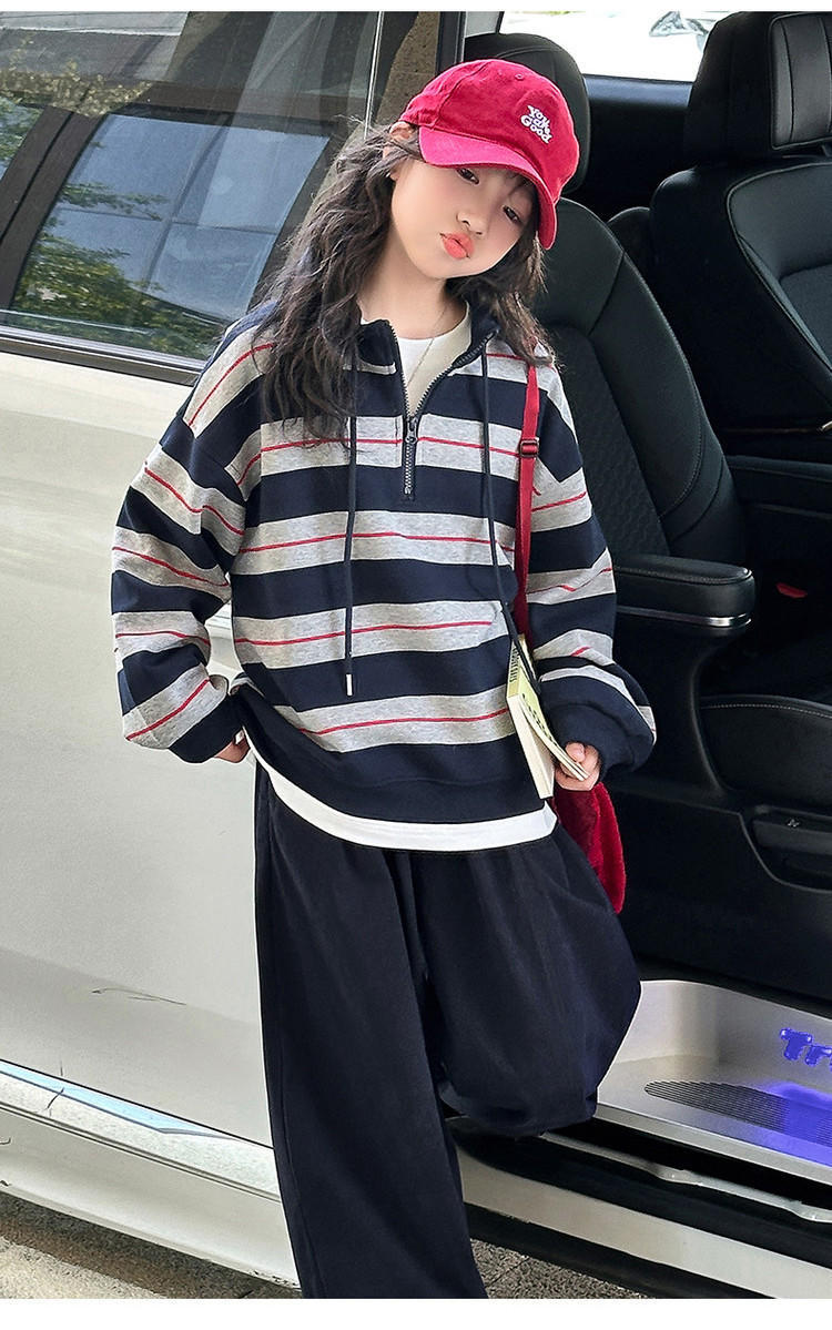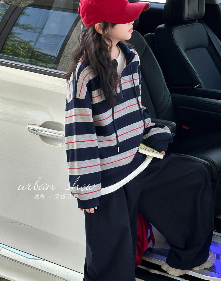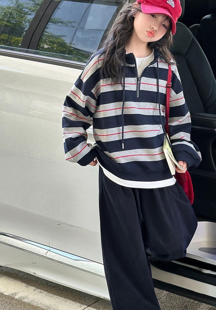 Conjunto Sudadera Simple Rayada Otoño Moda Niñas Top Versátil Casual con Capucha Estilo Coreano ins Estilo Perezoso