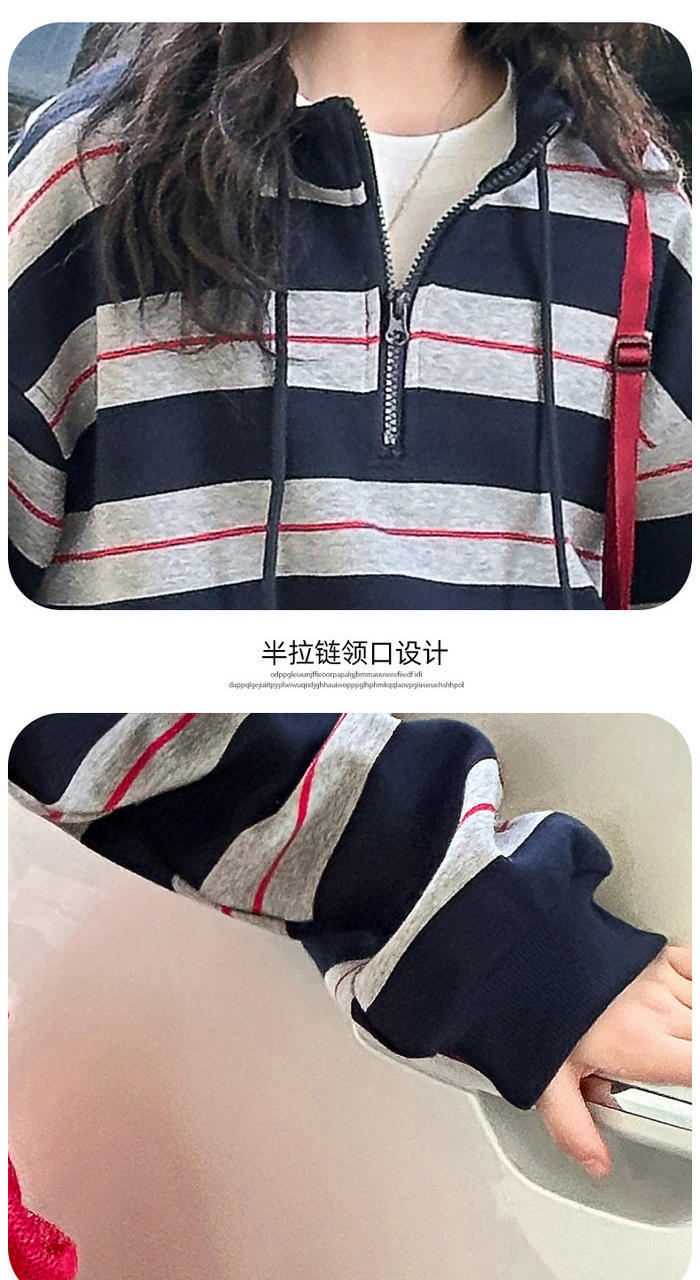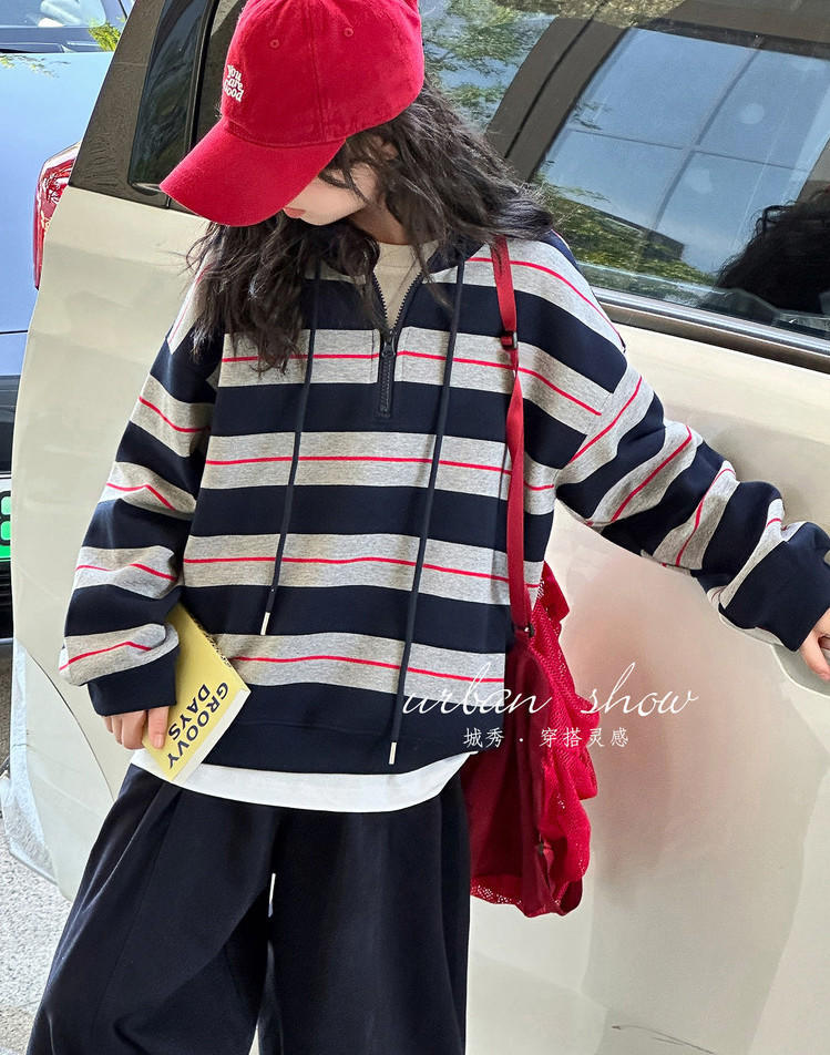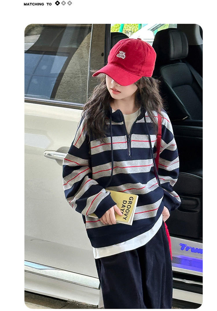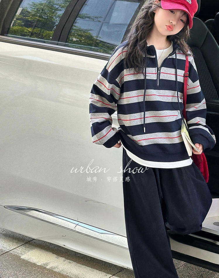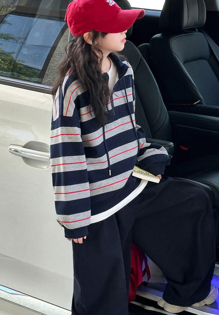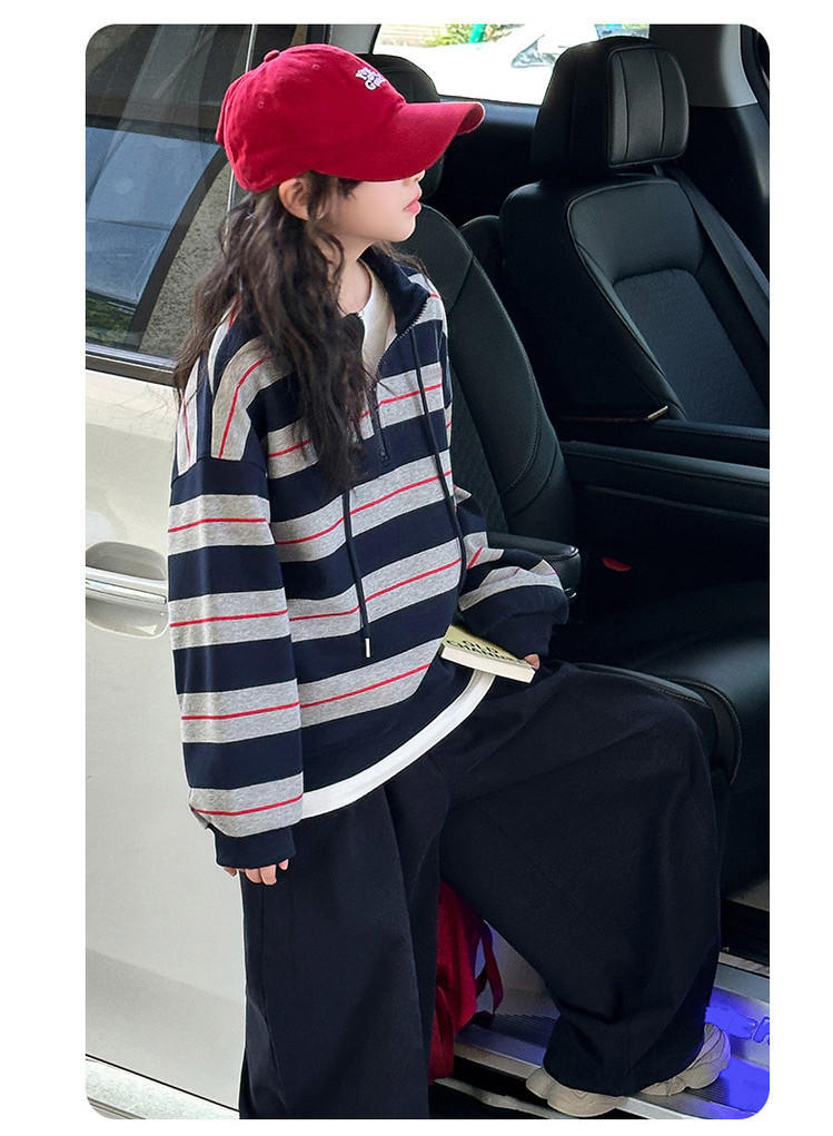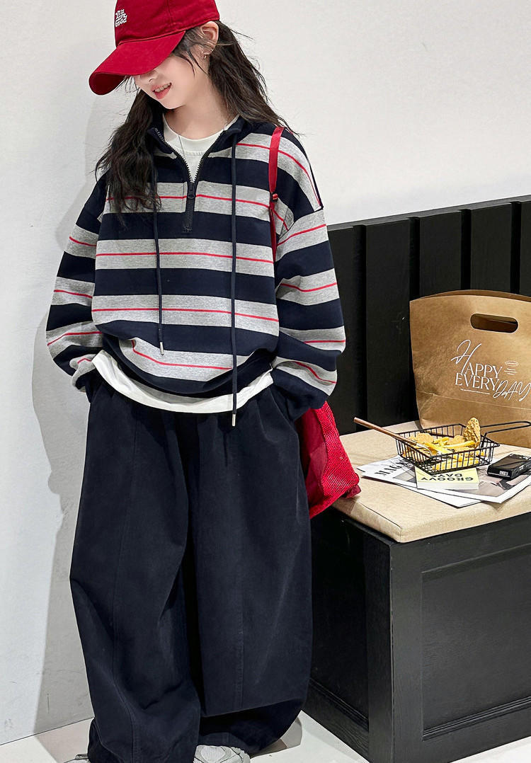 Conjunto Sudadera Simple Rayada Otoño Moda Niñas Top Versátil Casual con Capucha Estilo Coreano ins Estilo Perezoso