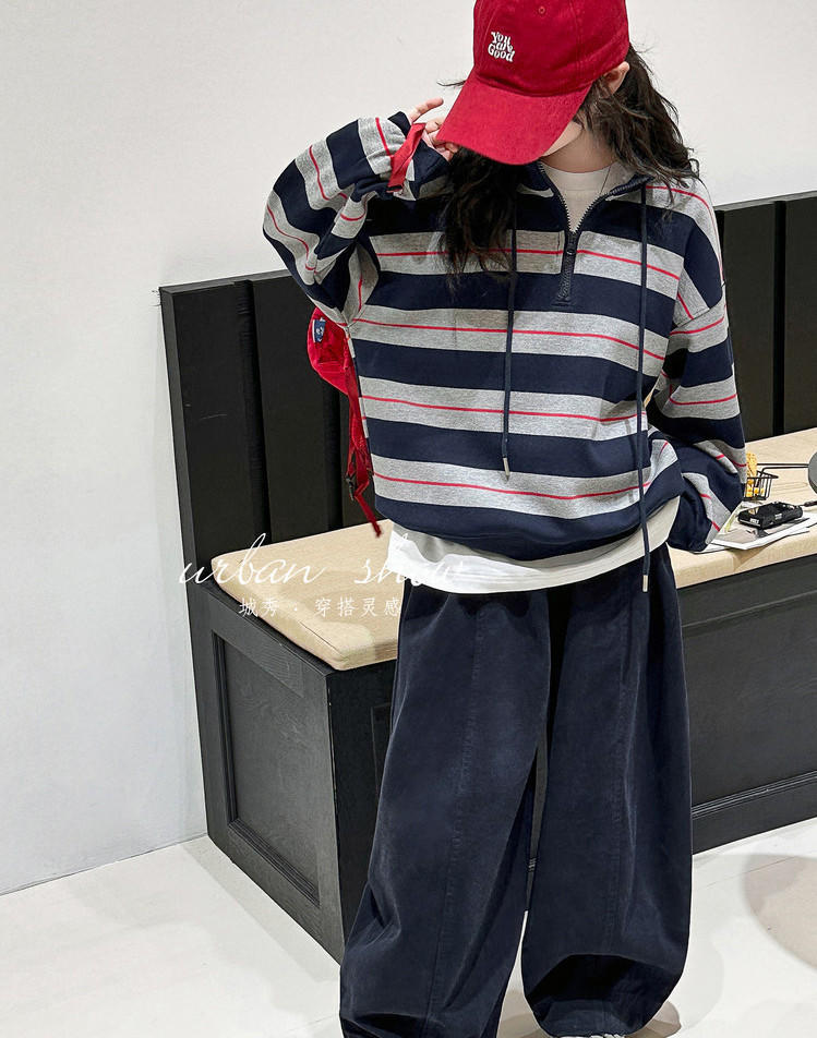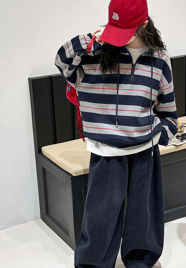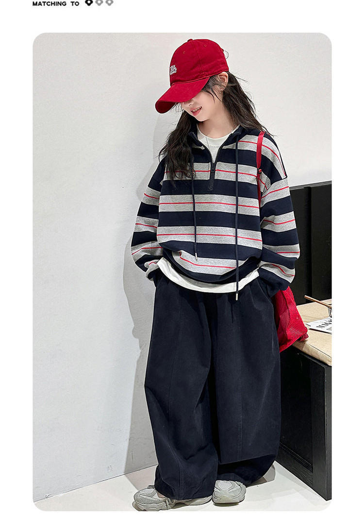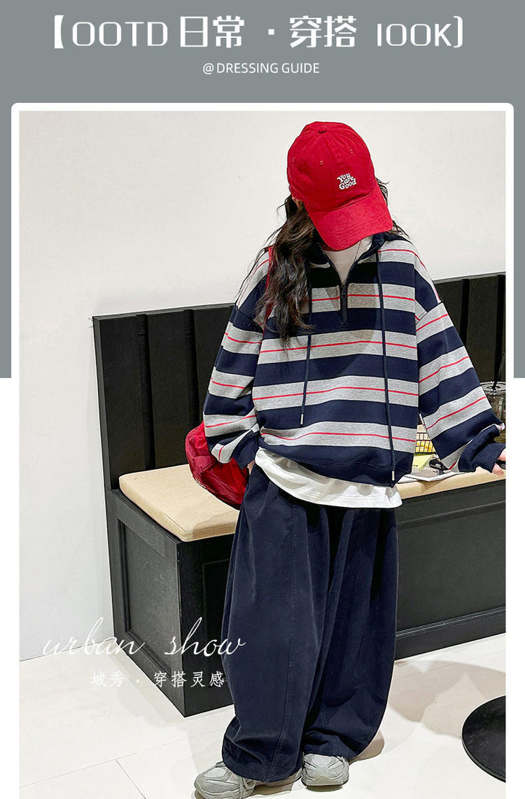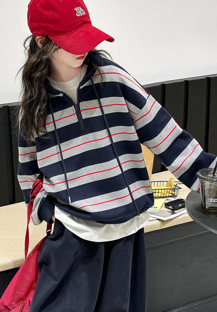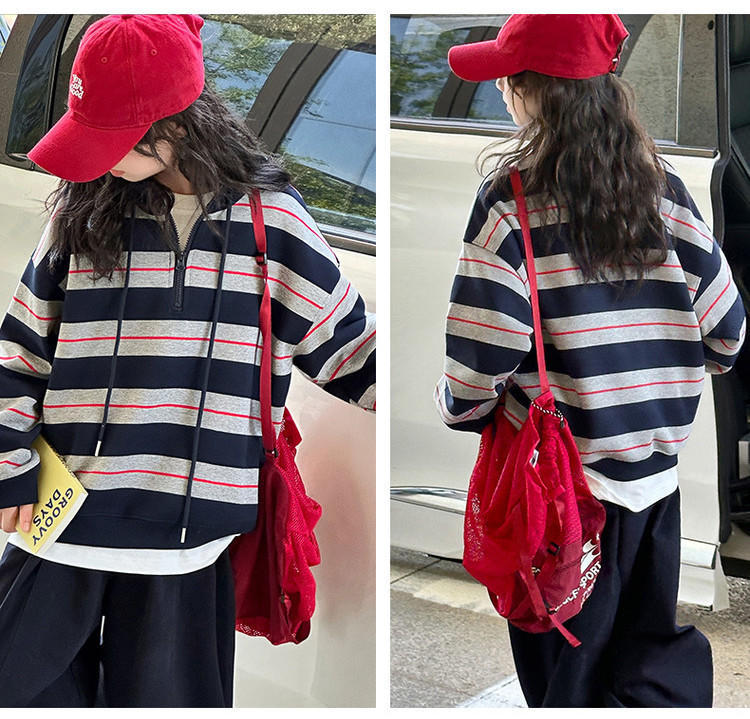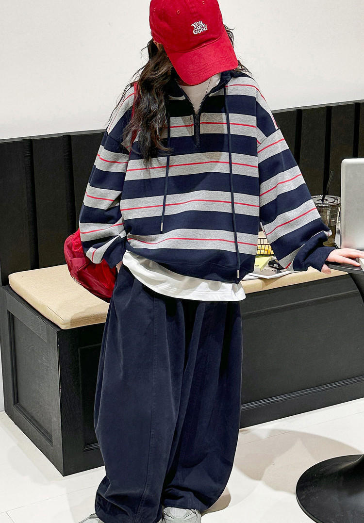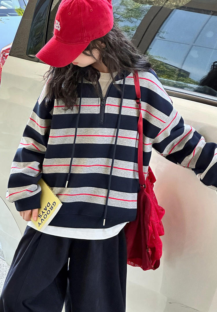 Conjunto Sudadera Simple Rayada Otoño Moda Niñas Top Versátil Casual con Capucha Estilo Coreano ins Estilo Perezoso