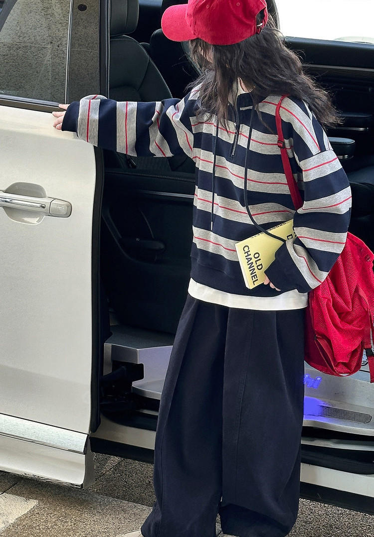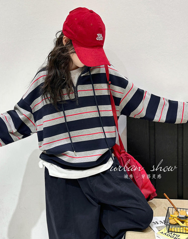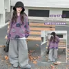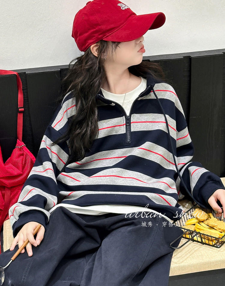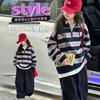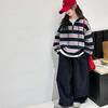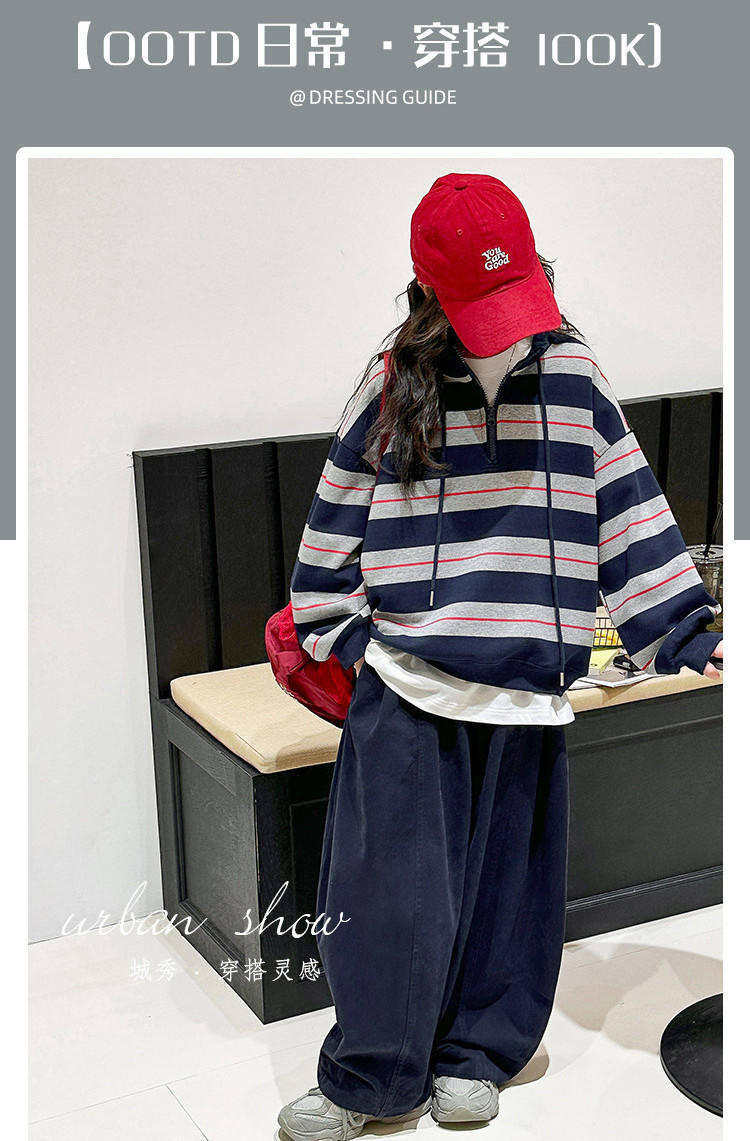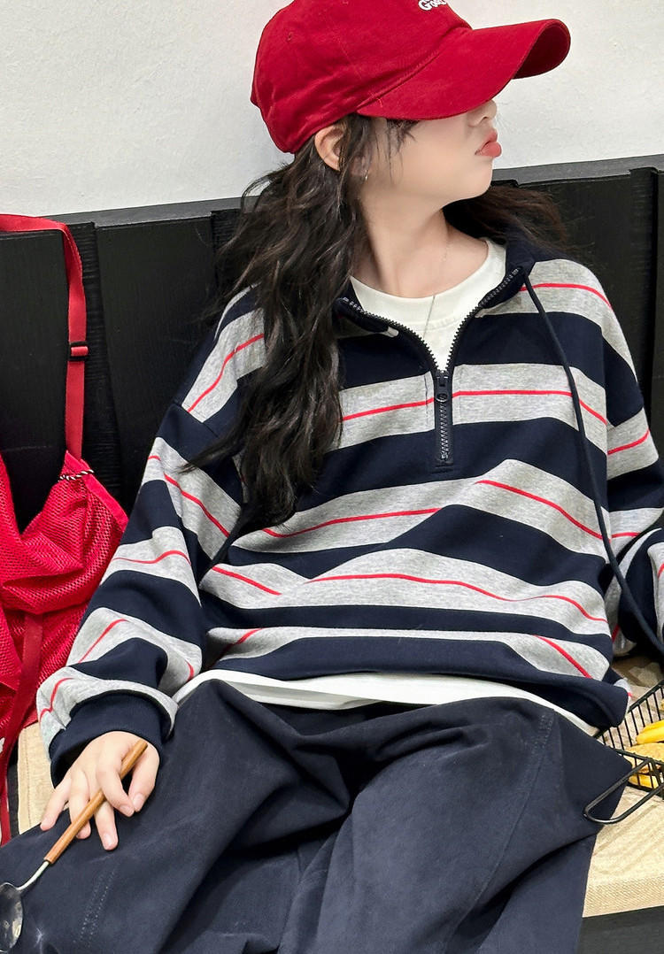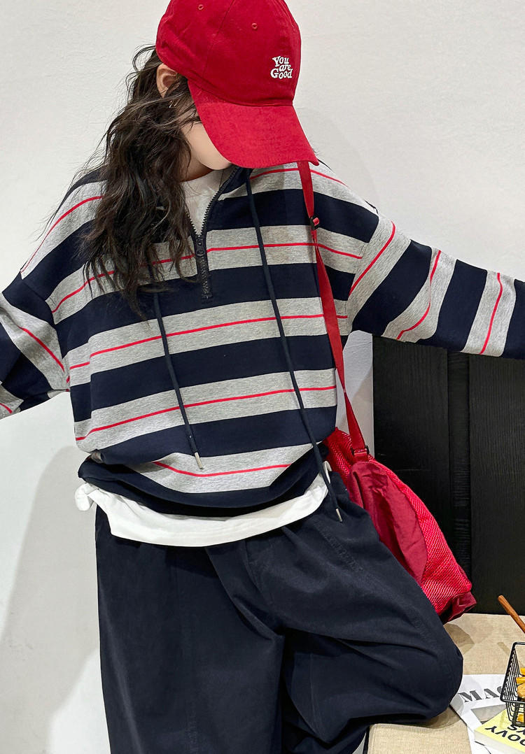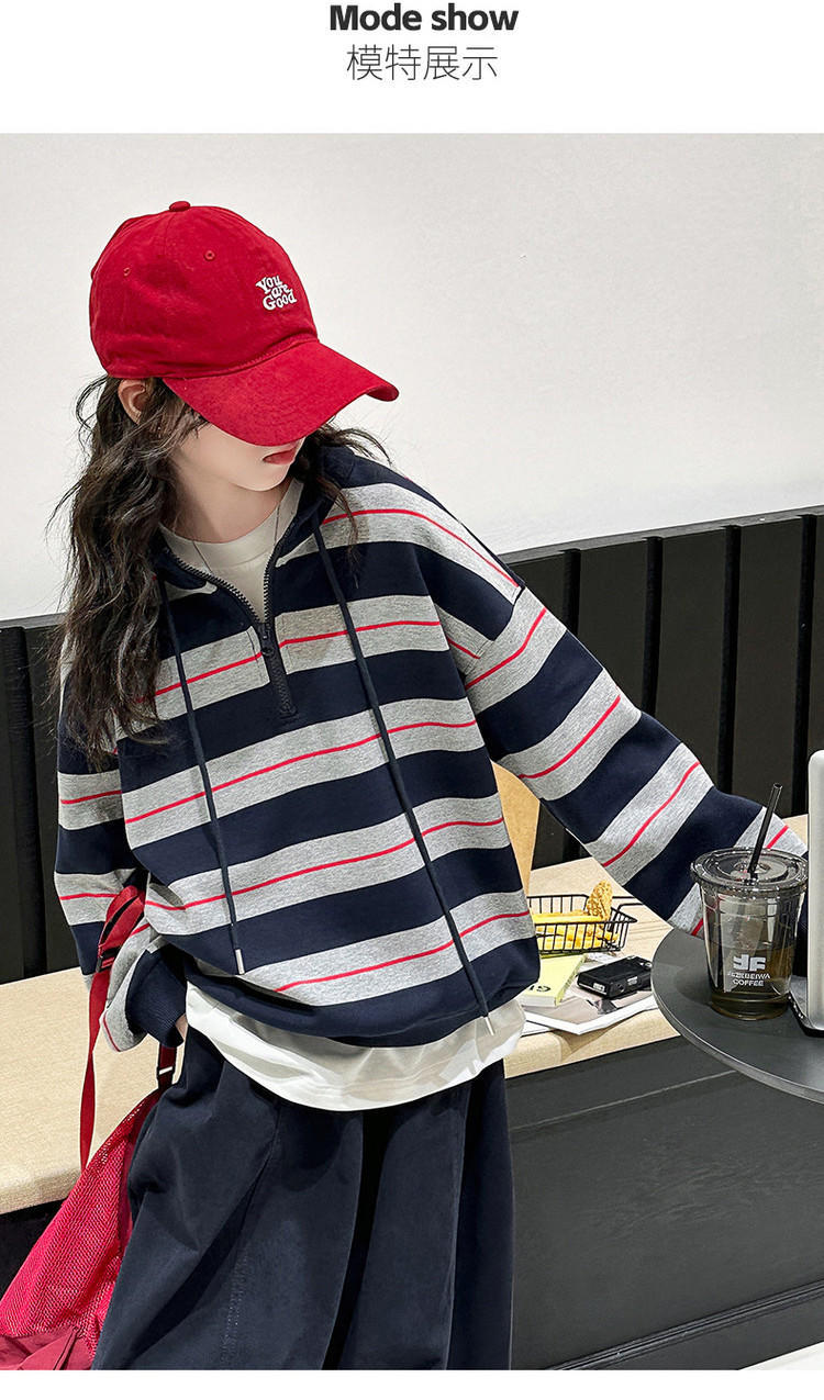 Conjunto Sudadera Simple Rayada Otoño Moda Niñas Top Versátil Casual con Capucha Estilo Coreano ins Estilo Perezoso