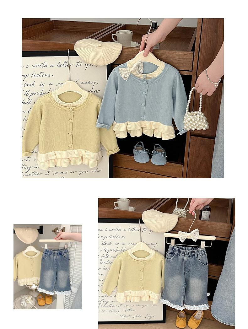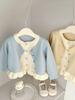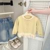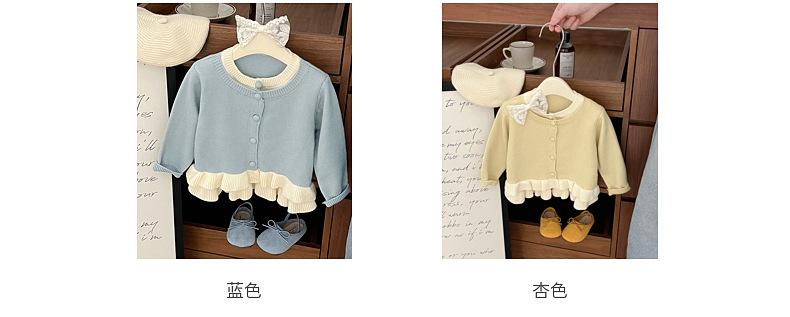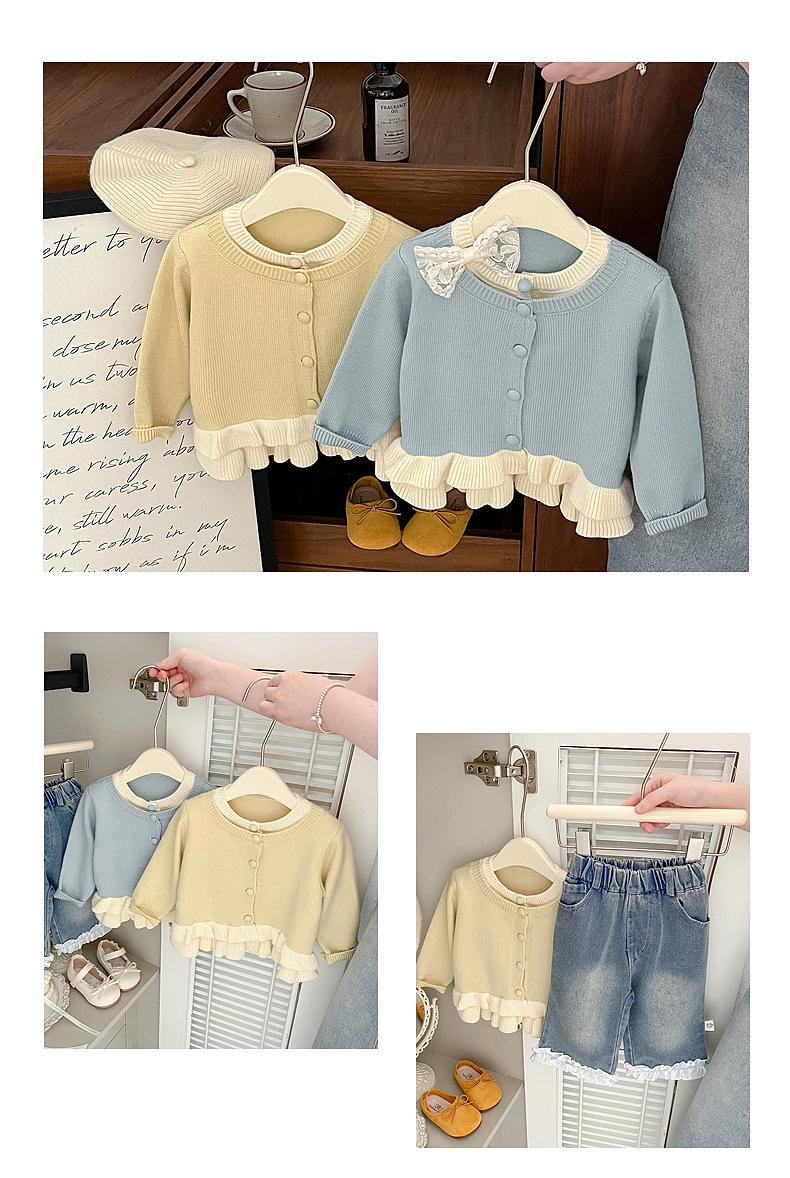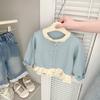 Nuevo Cárdigan de Punto con Encaje y Bloques de Color de Moda para Niñas, Estilo Coreano de Otoño, Ropa de Primavera para Bebé