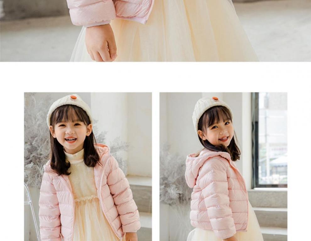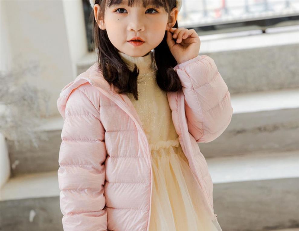 Chaqueta ligera de plumón para niño Invierno Niñas Elegante Infantil Plumón de pato blanco con capucha Abrigo ultradelgado