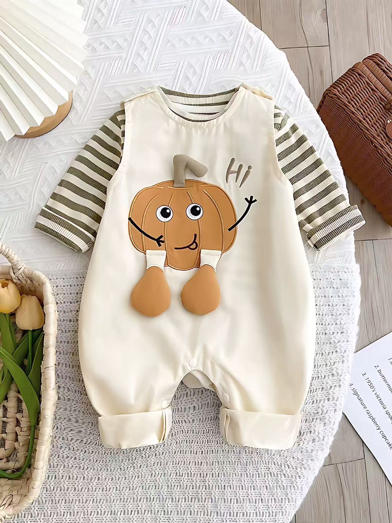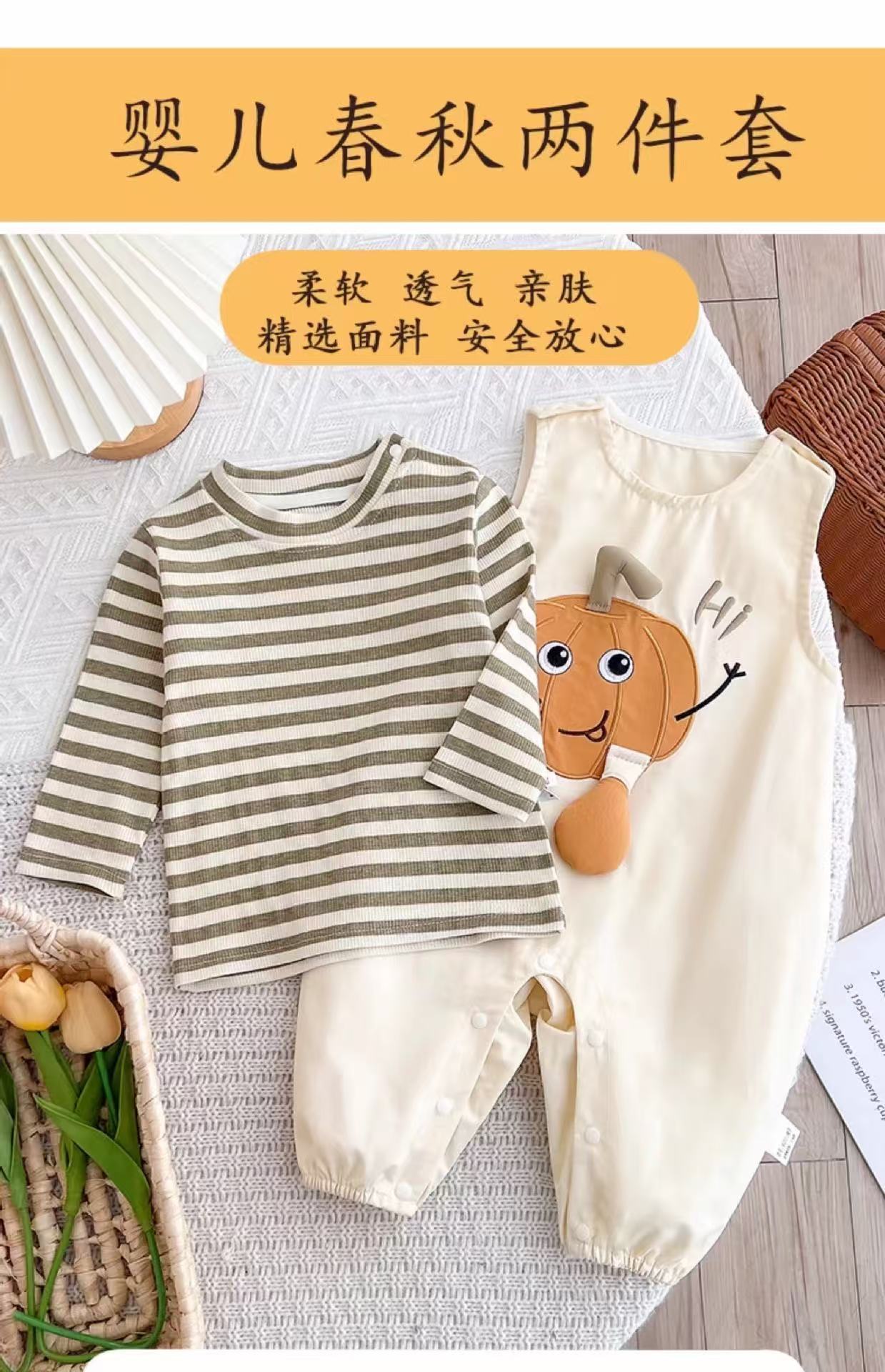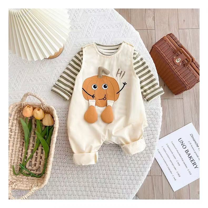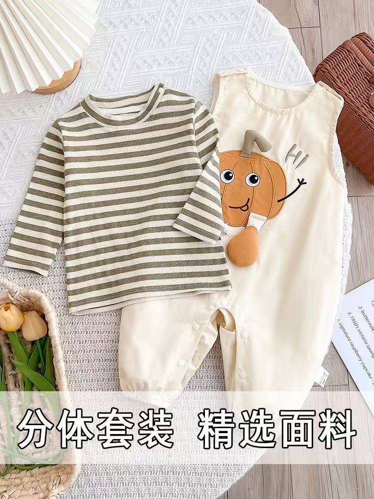 Conjunto de primavera y otoño para niños y niñas, ropa para bebés, lindo body a rayas, mameluco súper lindo, conjunto de dos piezas a la moda
