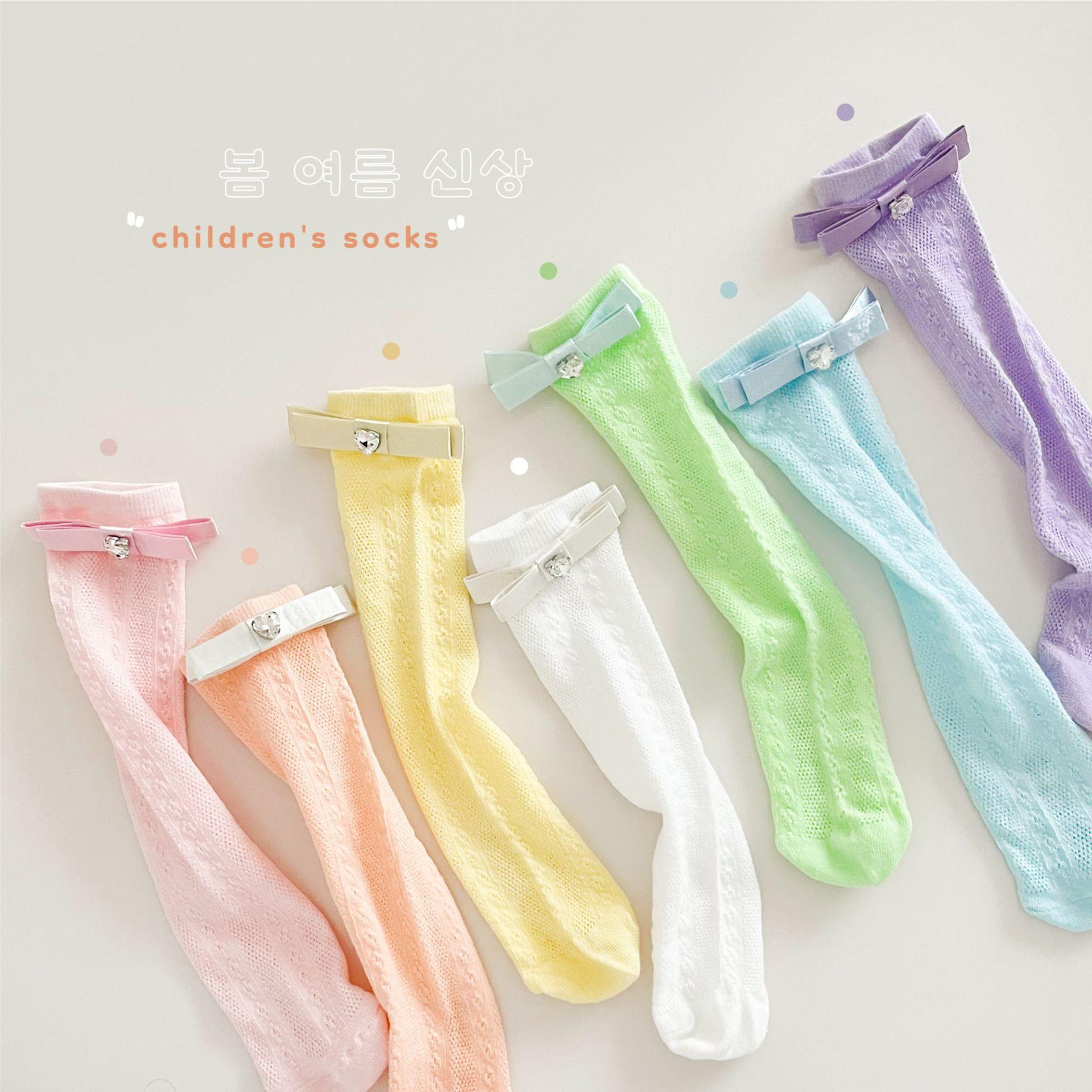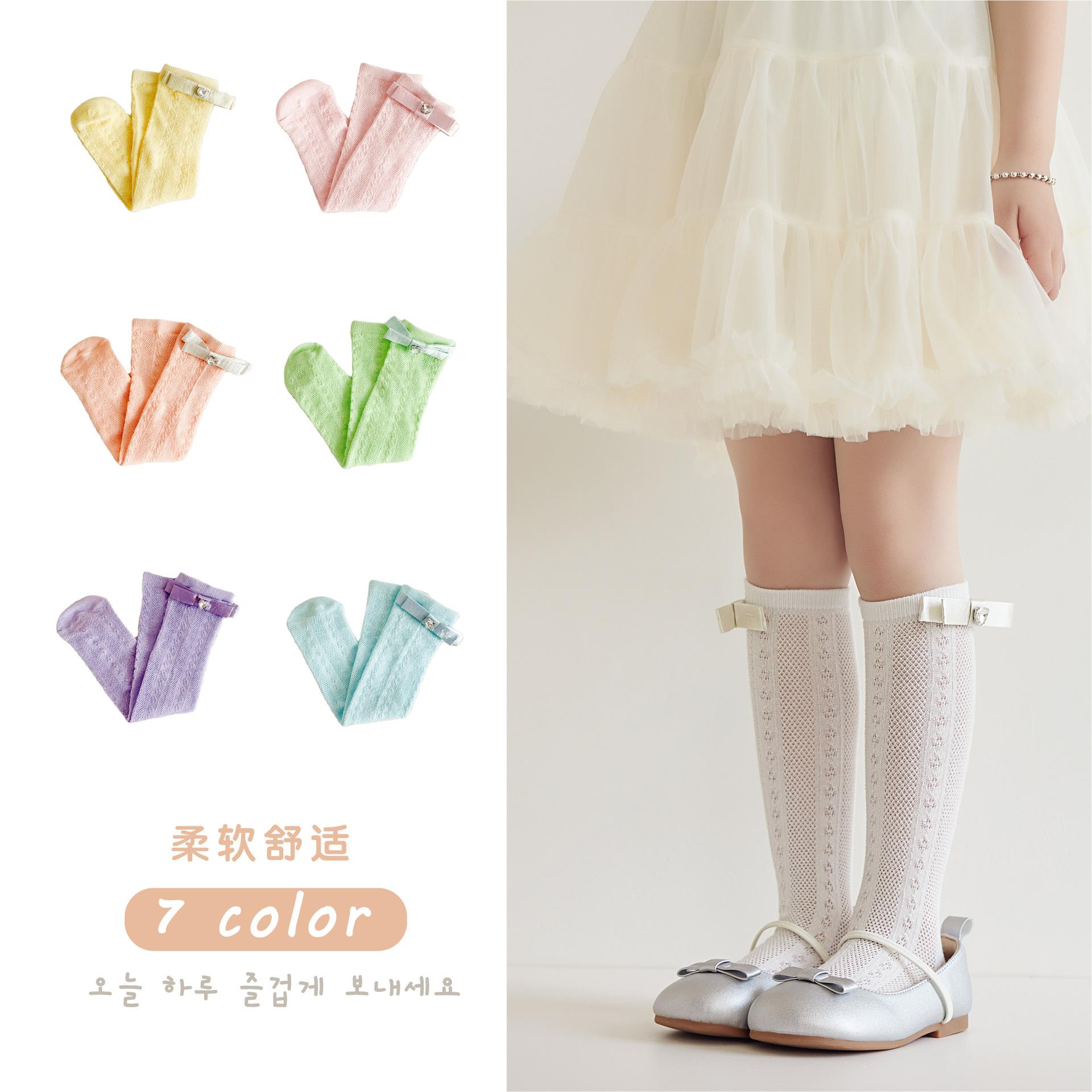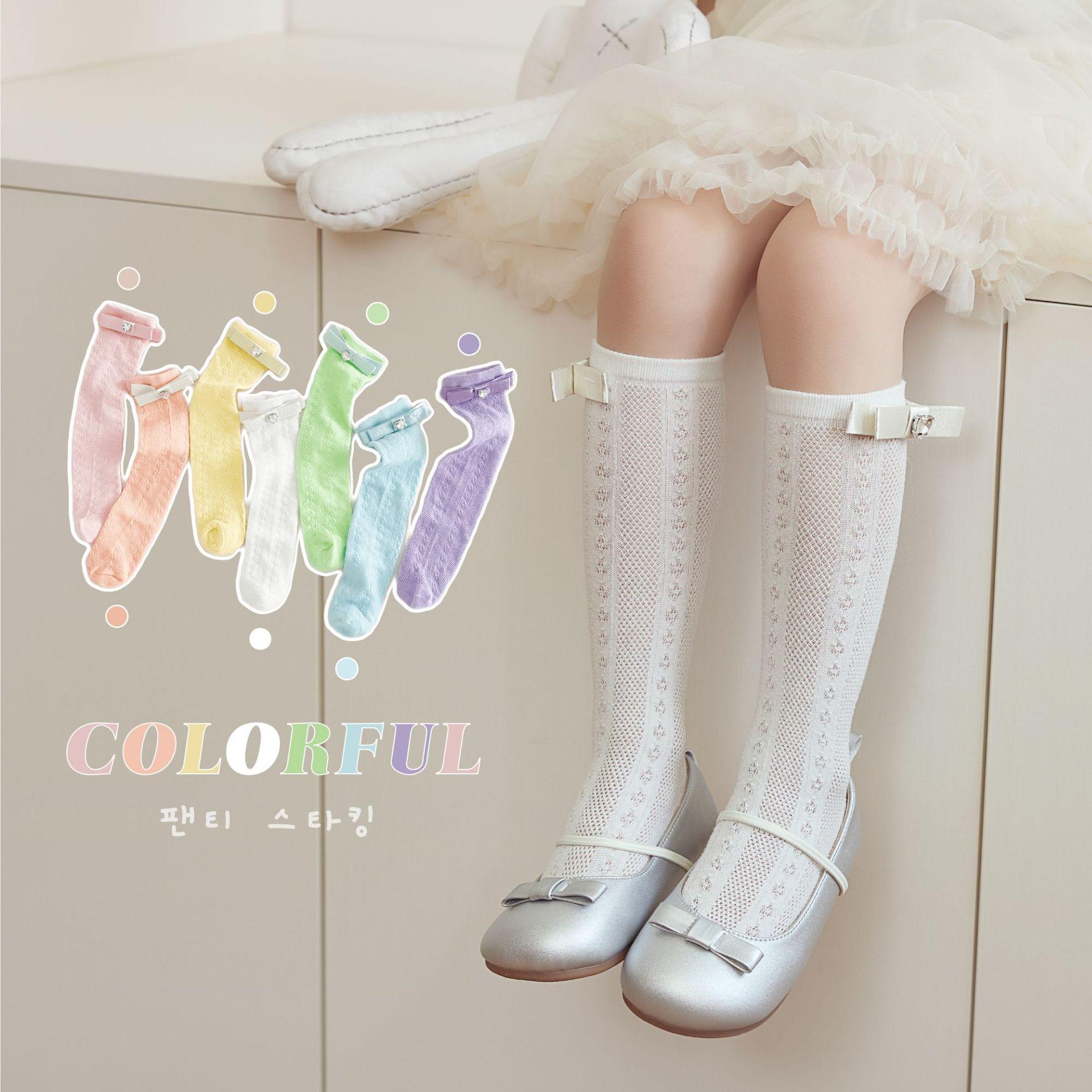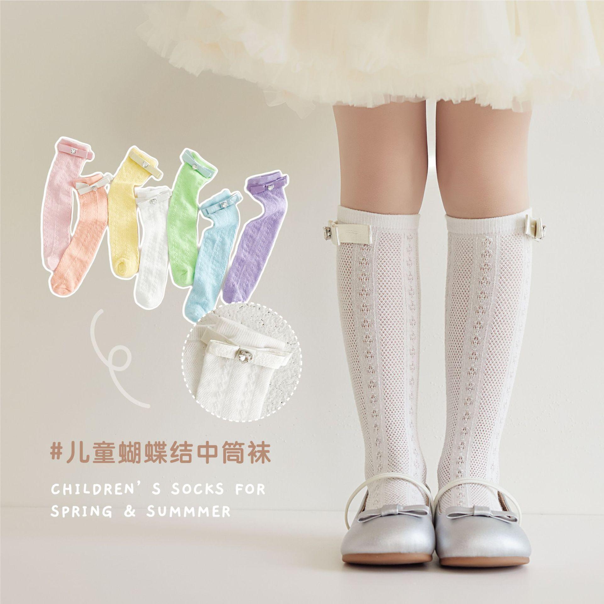 Calcetines de Media Caña para Niñas Primavera Verano Algodón Fino Calcetines de Princesa para Niños Estilo Coreano Moda Encaje Lazo Calcetines Altos hasta la Rodilla para Bebé