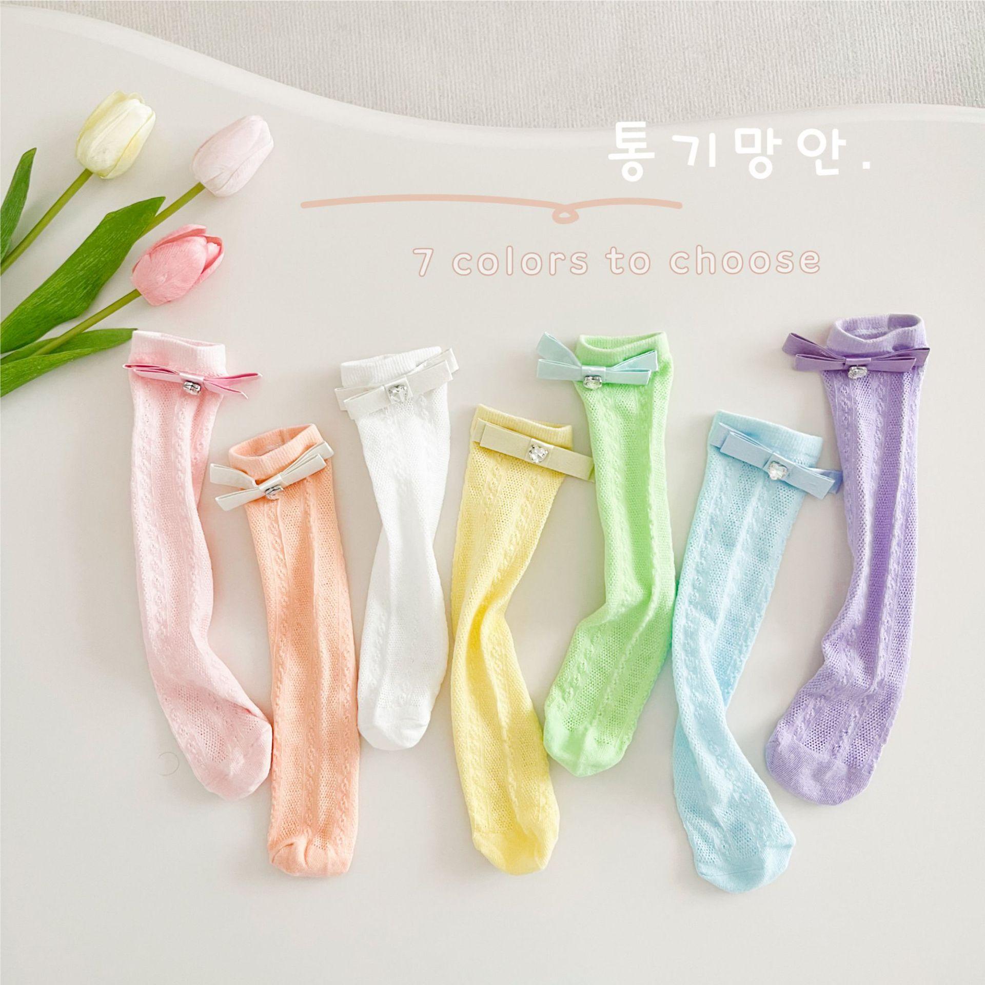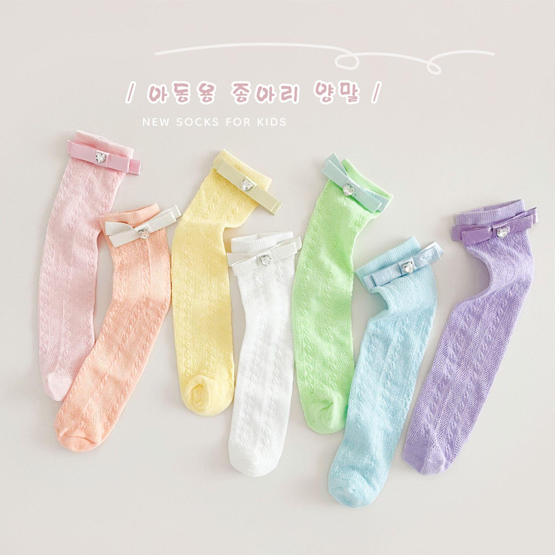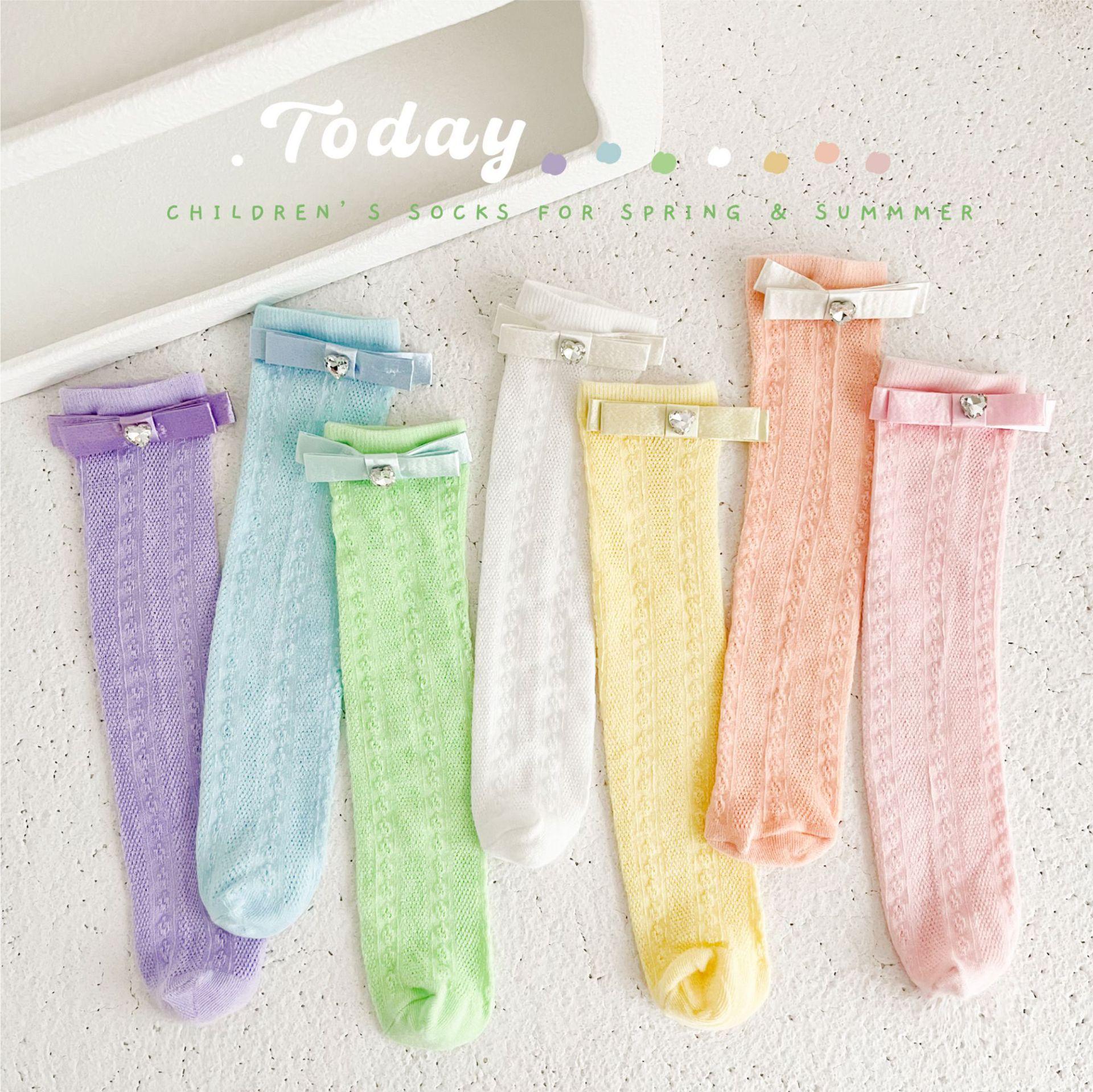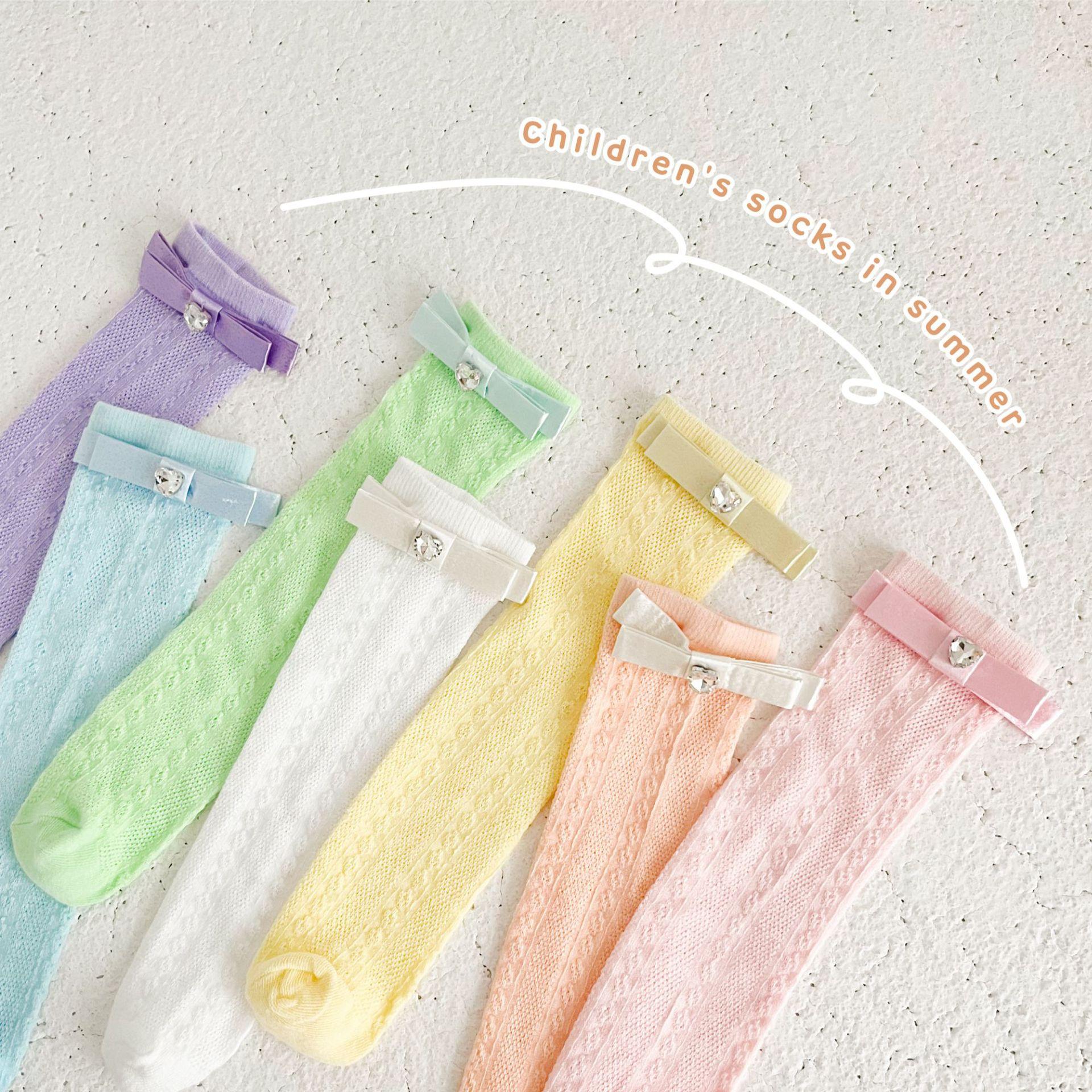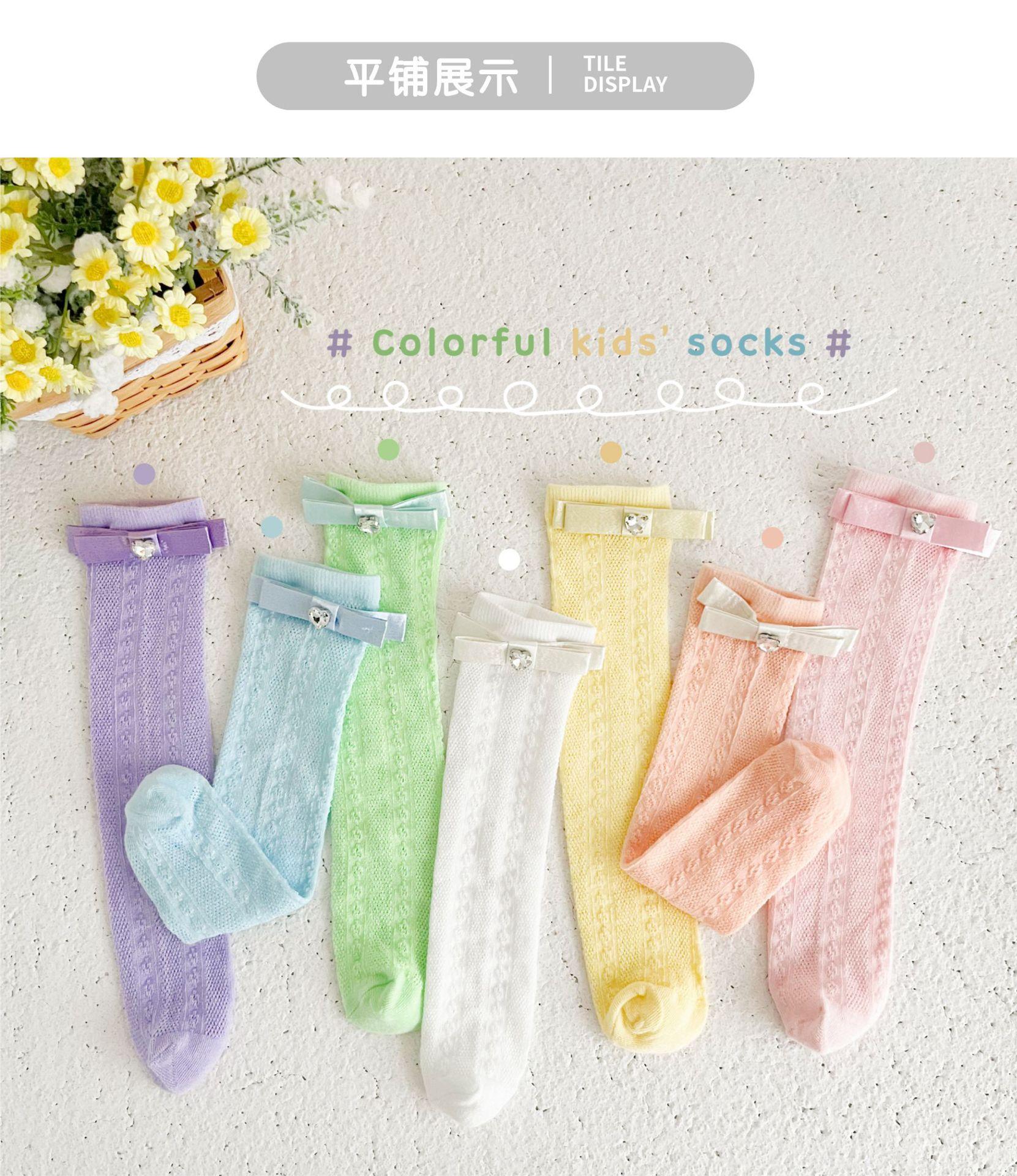 Calcetines de Media Caña para Niñas Primavera Verano Algodón Fino Calcetines de Princesa para Niños Estilo Coreano Moda Encaje Lazo Calcetines Altos hasta la Rodilla para Bebé