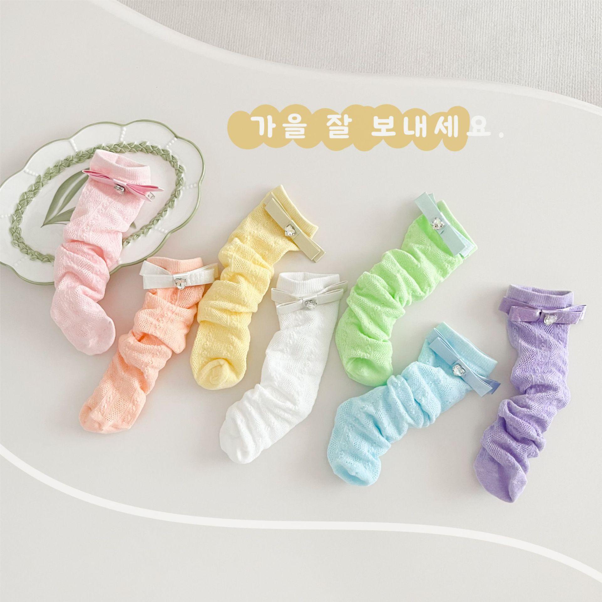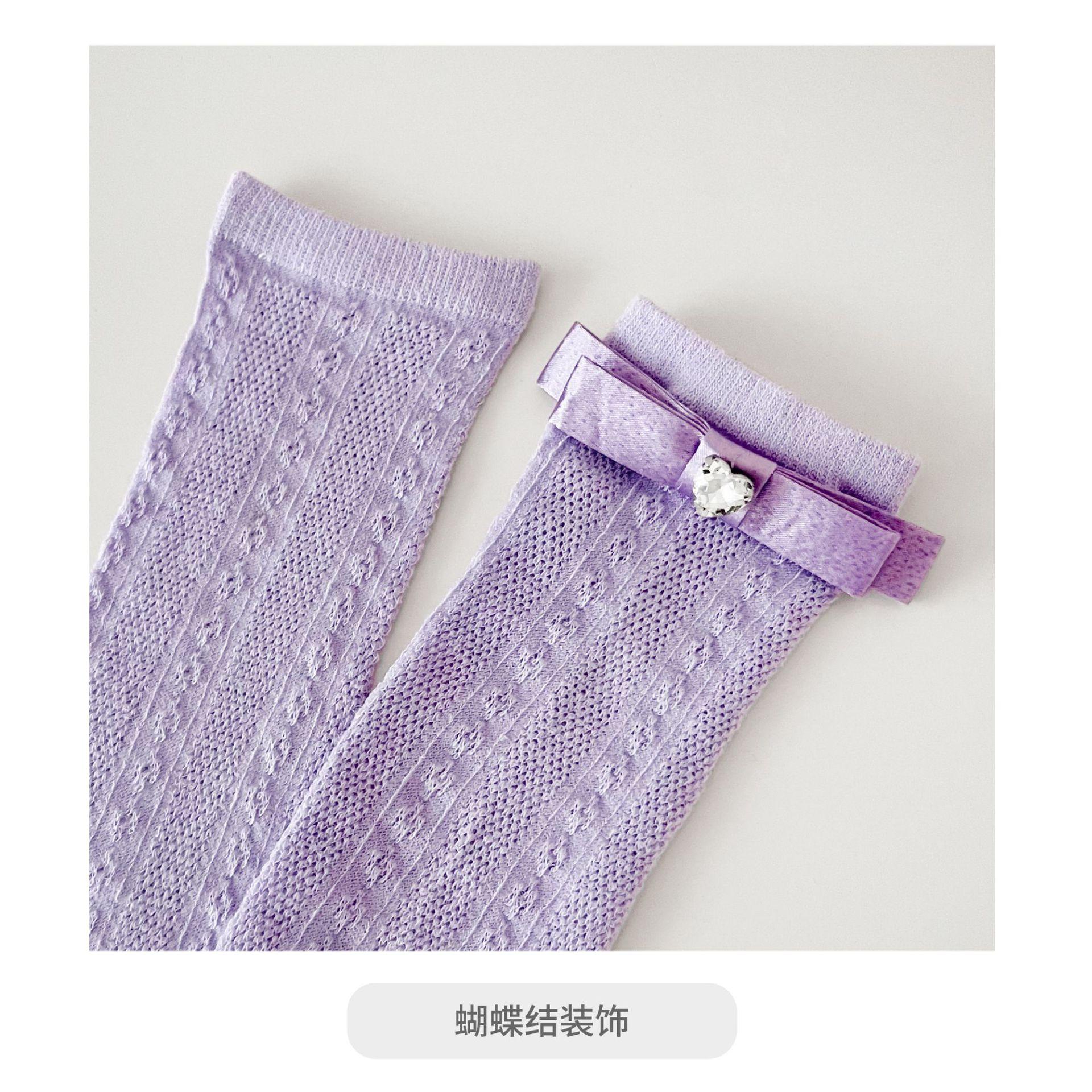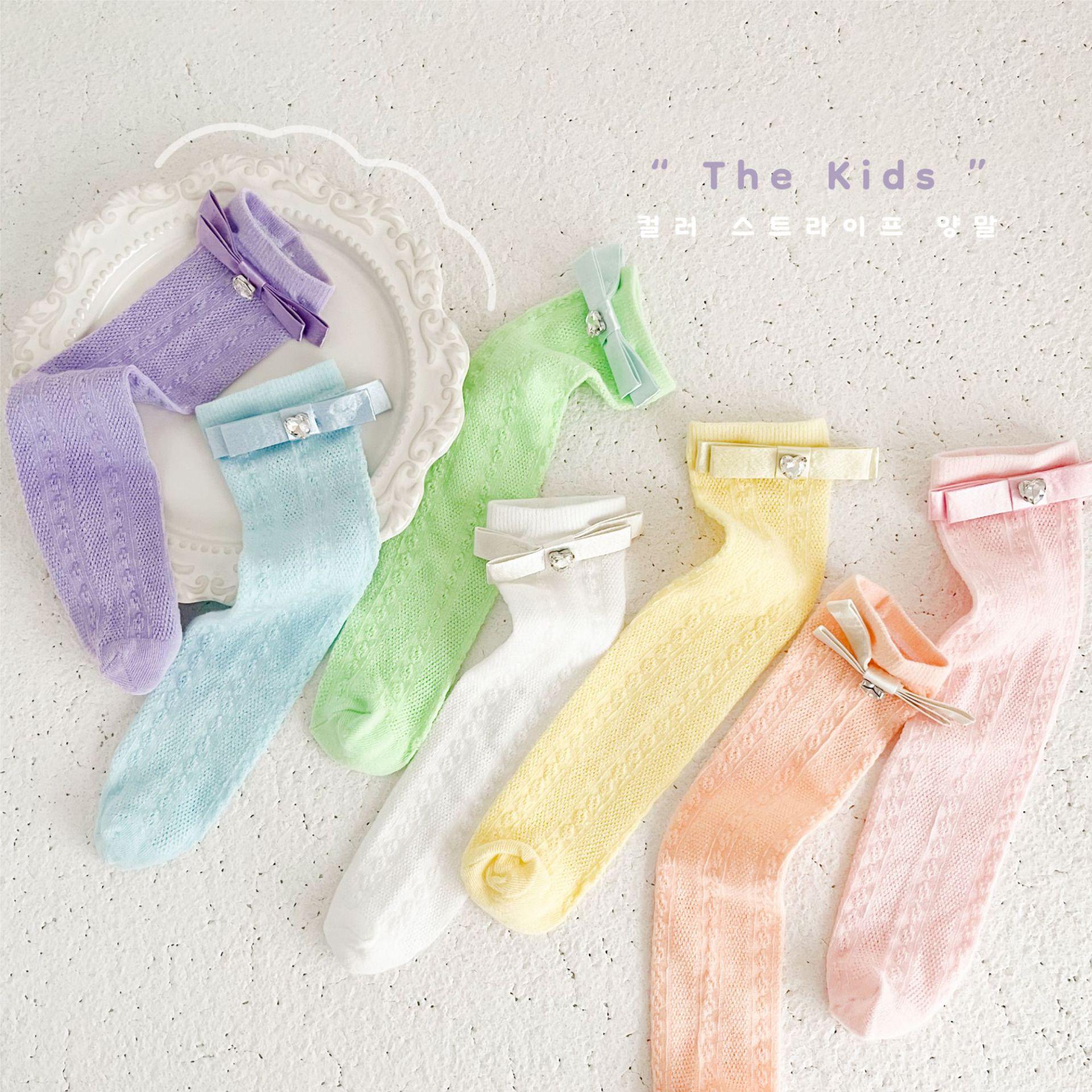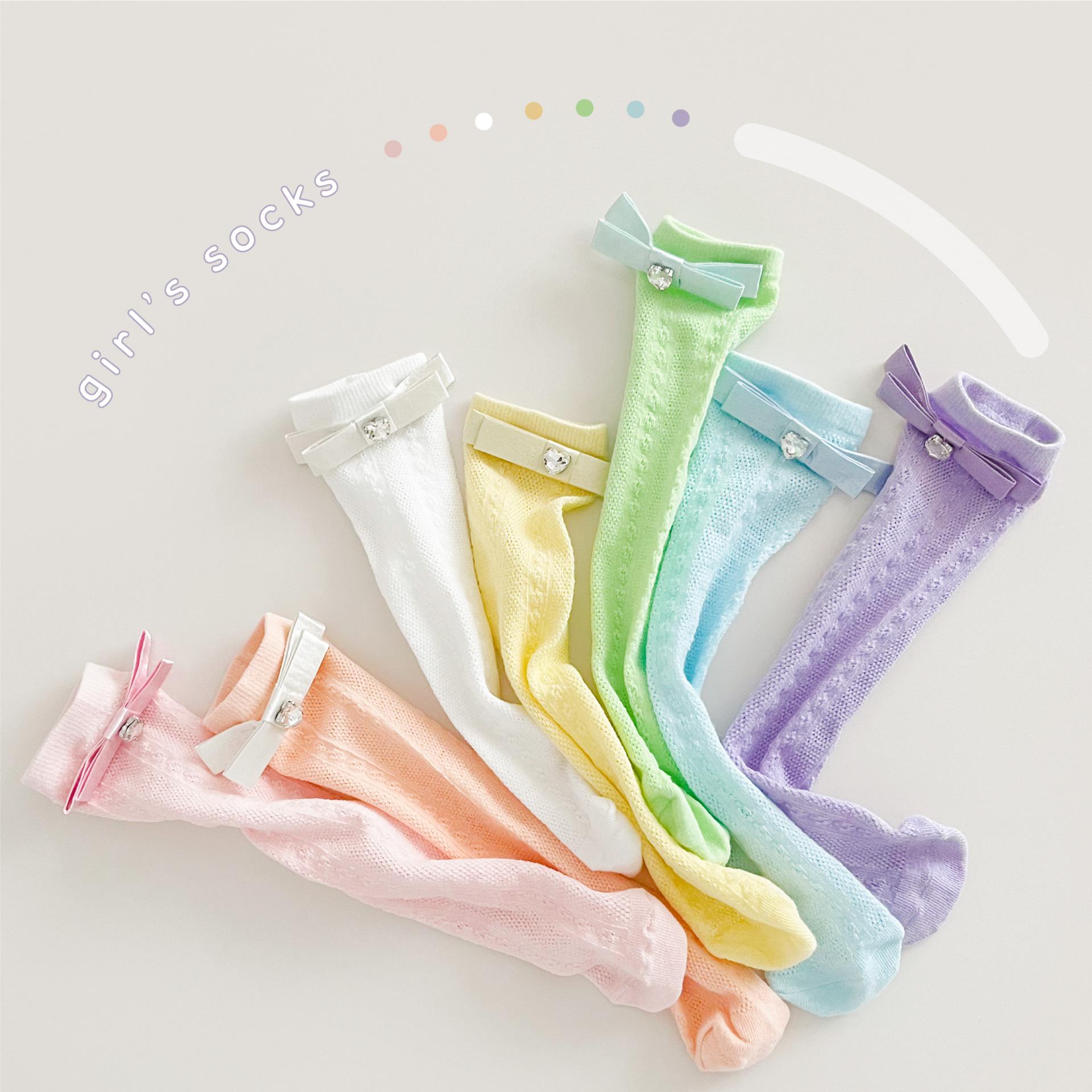 Calcetines de Media Caña para Niñas Primavera Verano Algodón Fino Calcetines de Princesa para Niños Estilo Coreano Moda Encaje Lazo Calcetines Altos hasta la Rodilla para Bebé