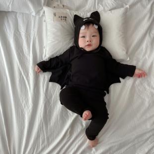 mameluco de bebé de Halloween estilo ins primavera 2025 mameluco de bebé para exterior diseño de murciélago conjunto de mameluco