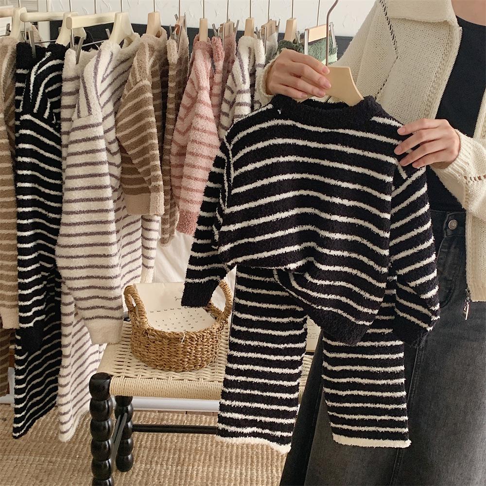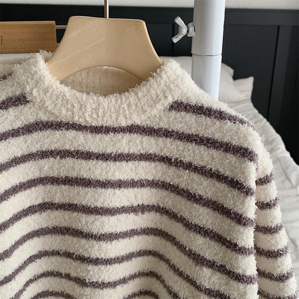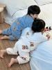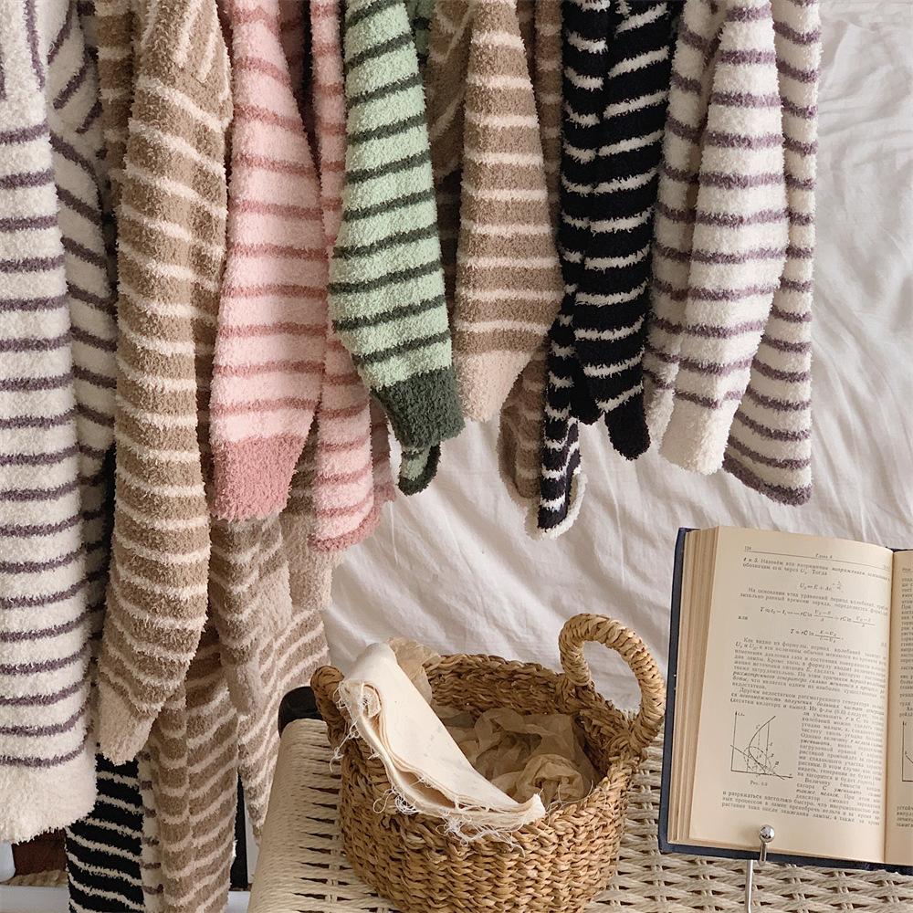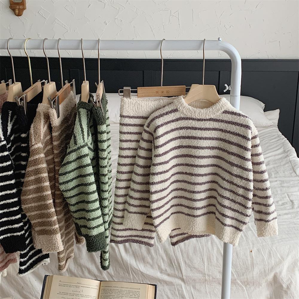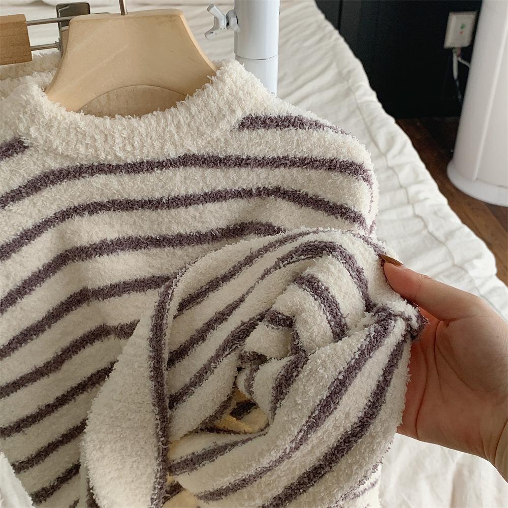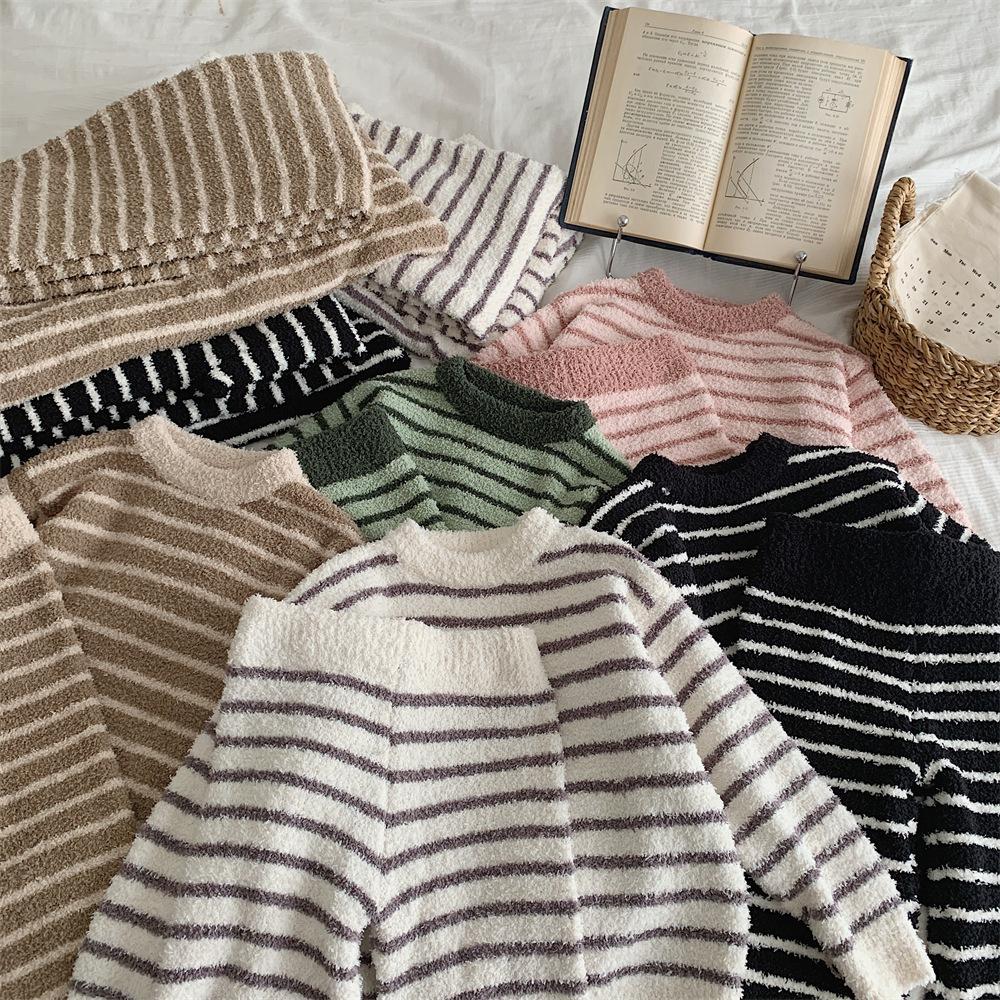 Montaigne Ropa de Casa de Forro Polar Nube al Tacto para Padres e Hijos Otoño e Invierno Nuevo Rayado Forro Polar de Media Cara Niños y Niñas Conjunto de Pijama Cálido y Agradable para la Piel