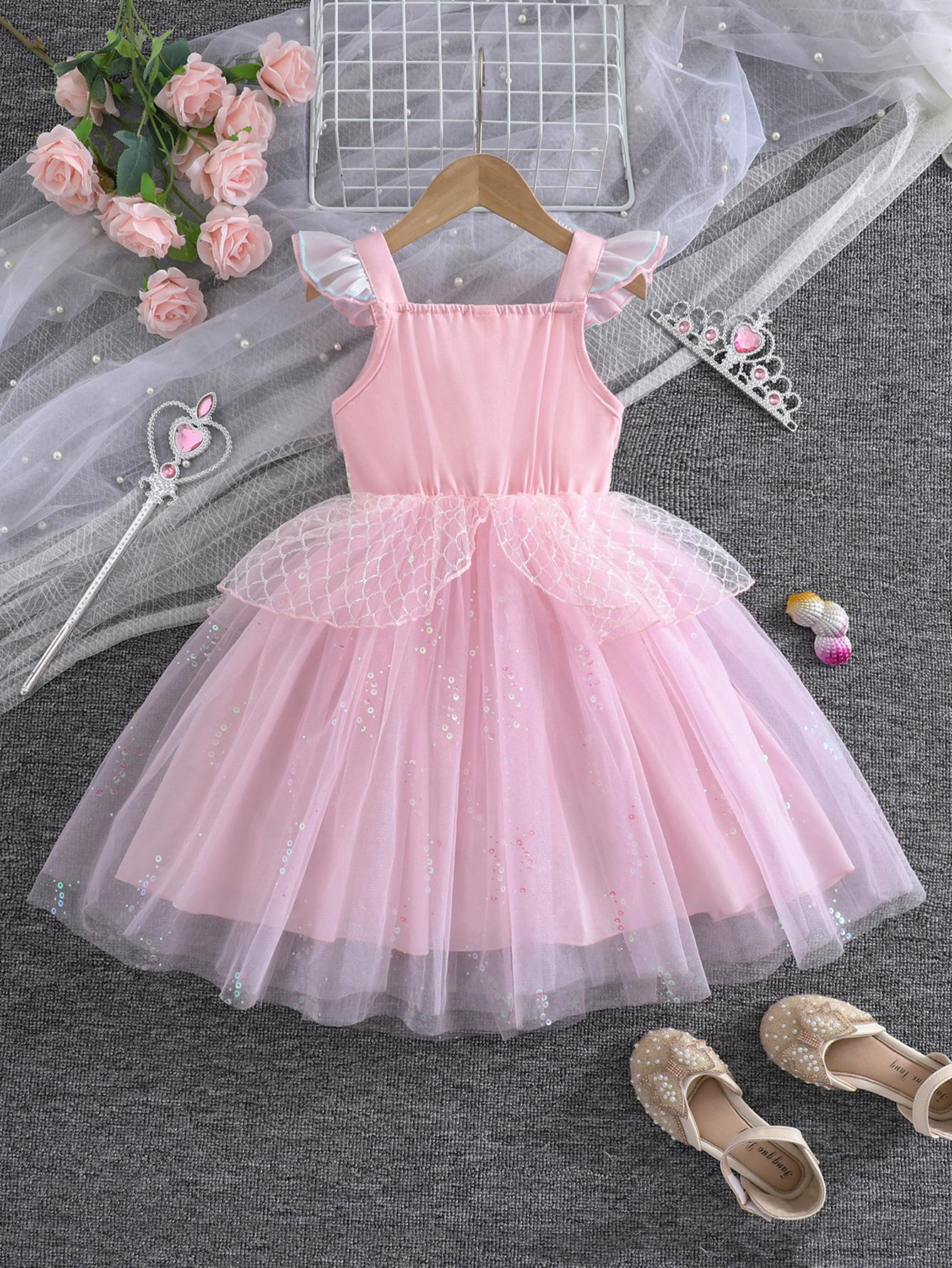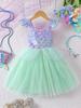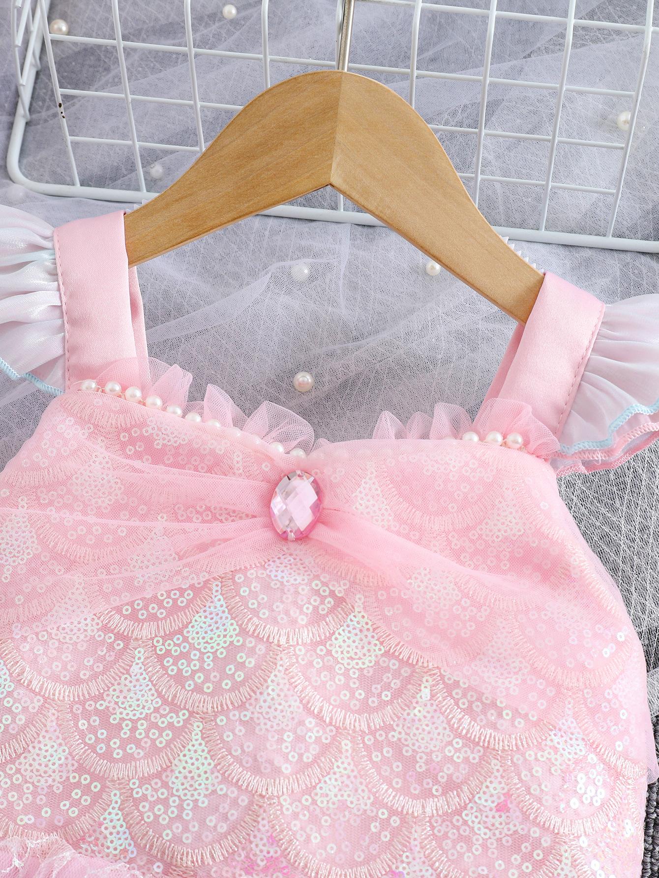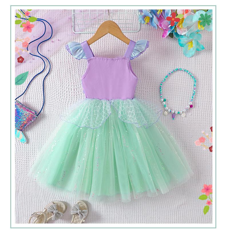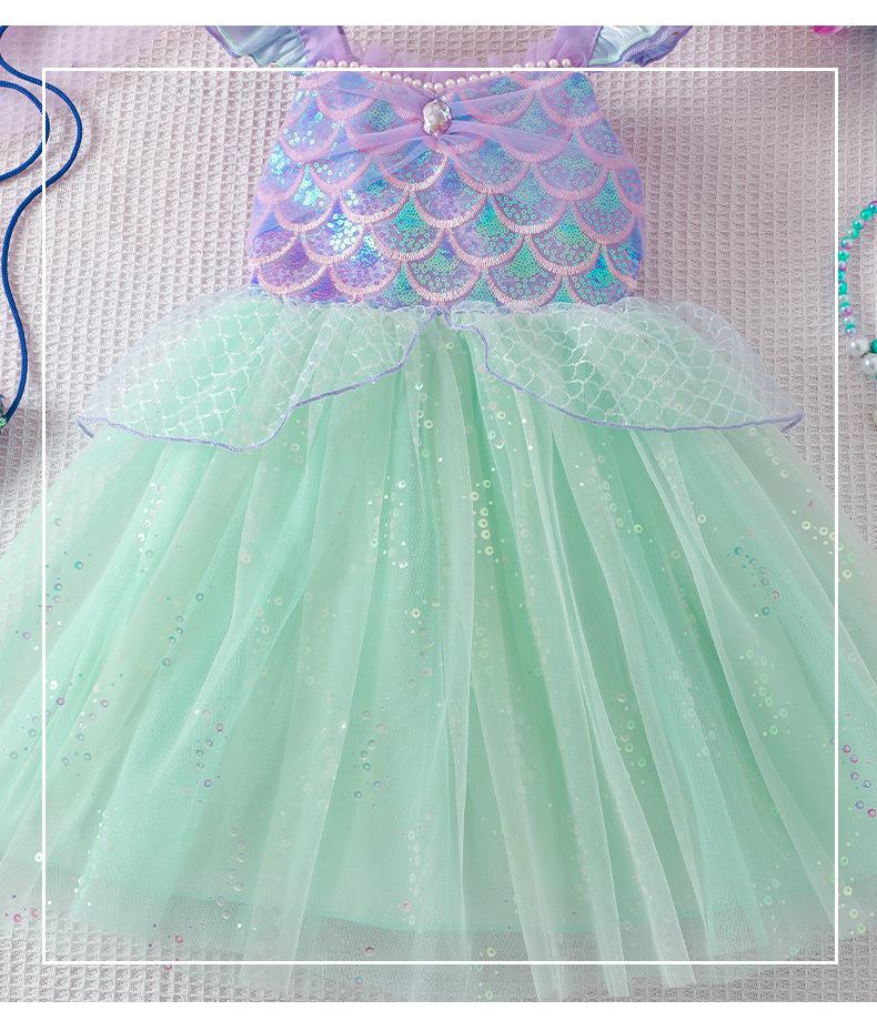 Vestido Camisola de Malla de Verano de Estilo Caliente Transfronterizo para Niñas, Vestido de Princesa Sirena con Lentejuelas de Halloween para Bebé