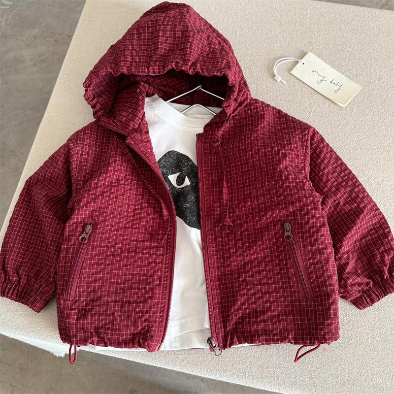 Chaqueta para Niños 2025 Ojo de Rendija Otoño Nuevo Producto Niños y Niñas Color Sólido con Capucha Cierre de Cremallera Chaqueta Bebé a Cuadros Moderna