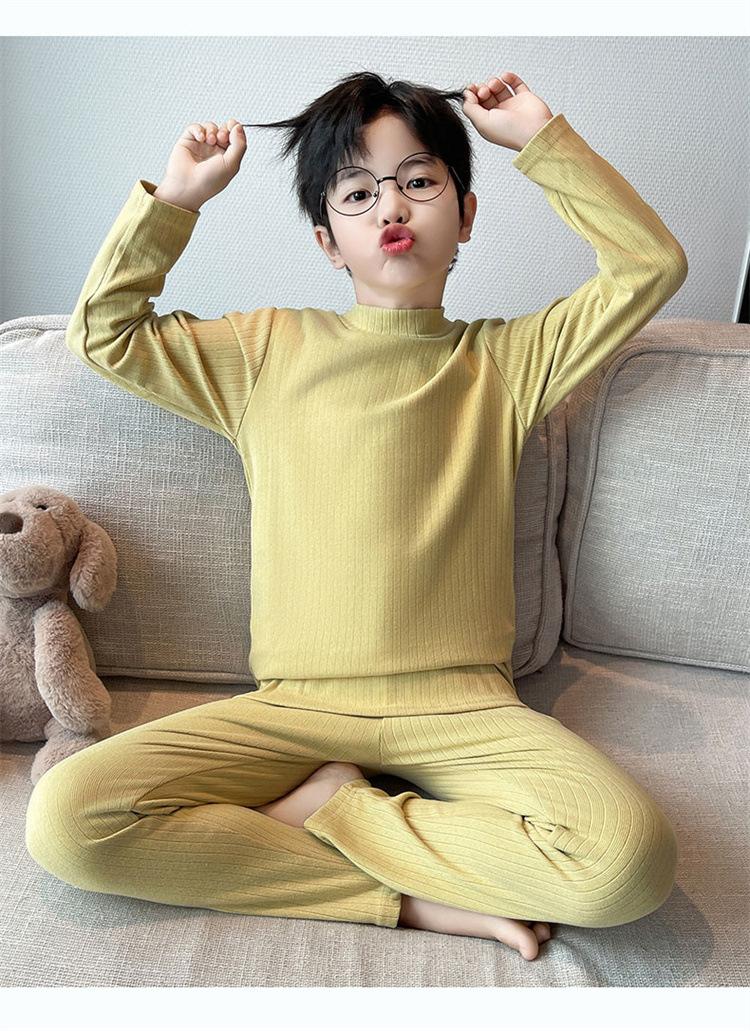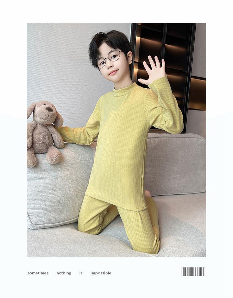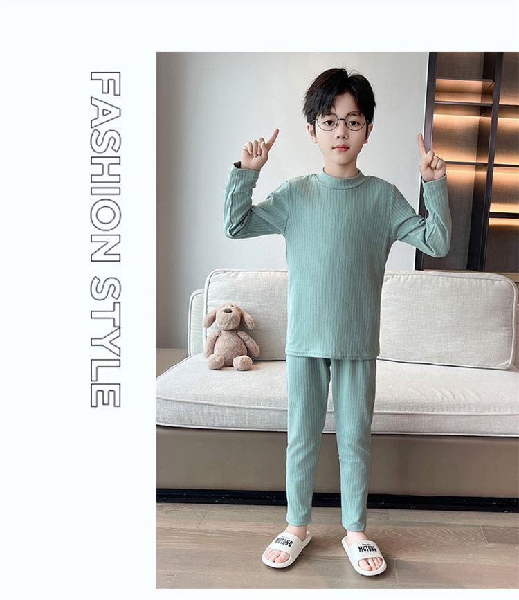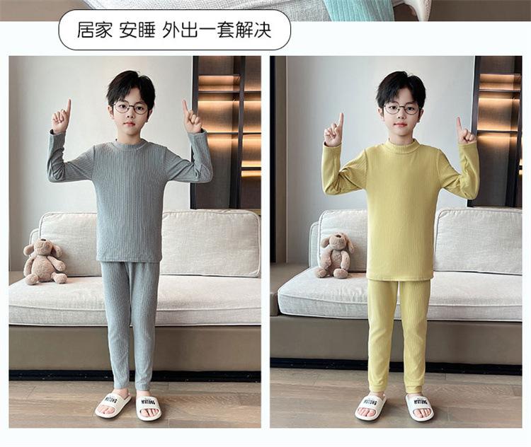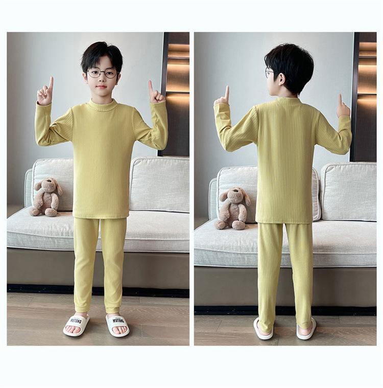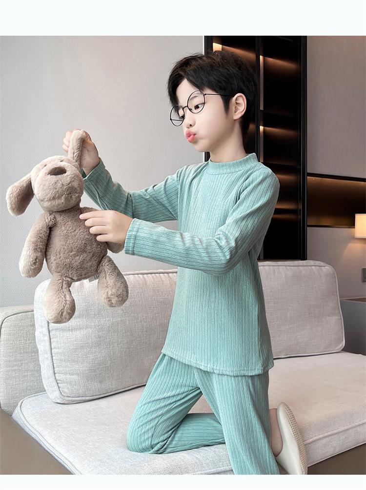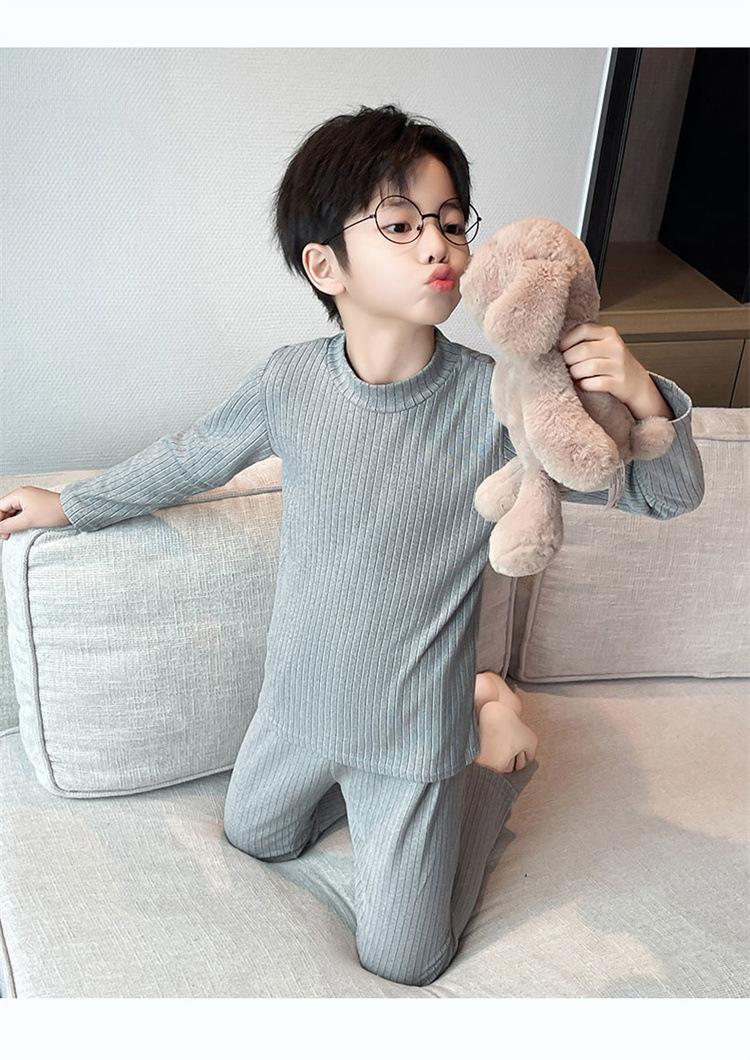Ropa para Niños Conjunto de Pijama para Niños Ropa de Otoño Pantalones de Otoño 2025 Nuevo Estilo Terciopelo Alemán Otoño Niños Medianos y Grandes Ropa Interior de Color Sólido
