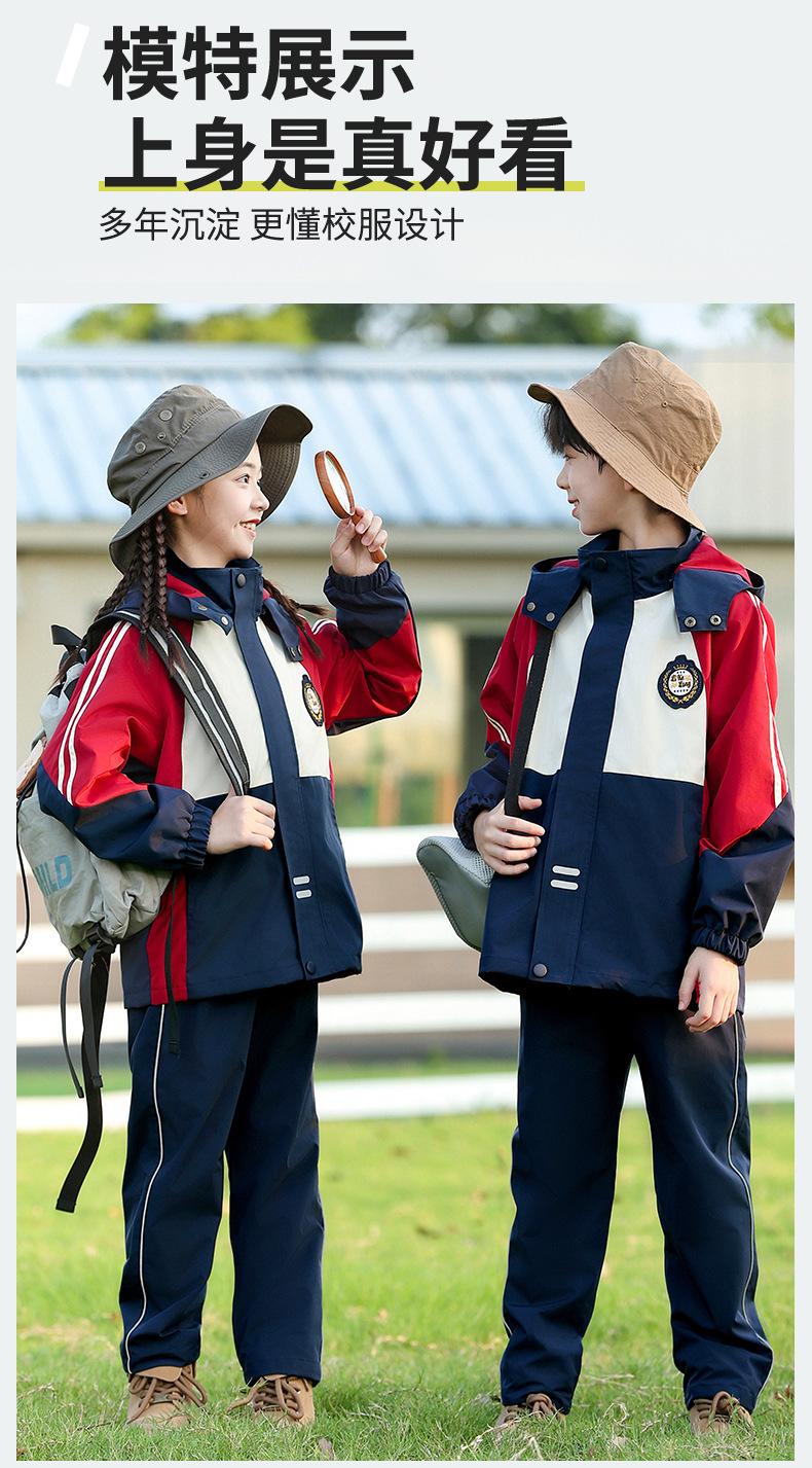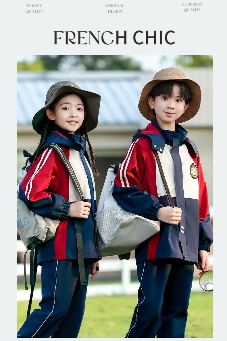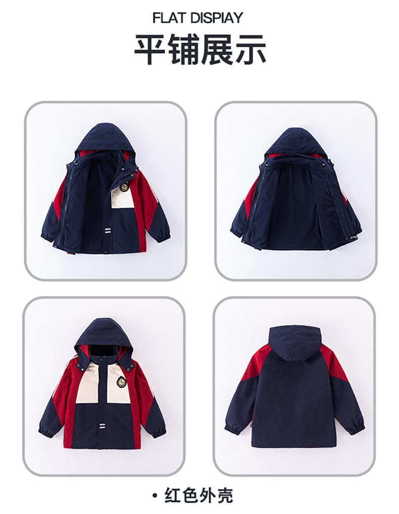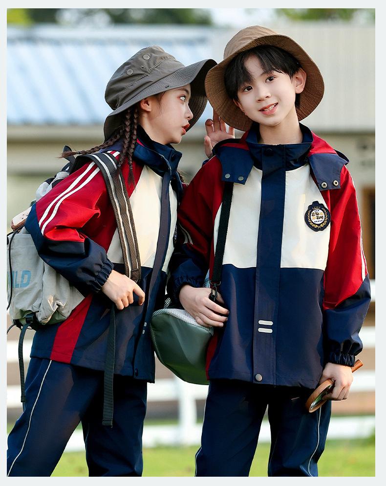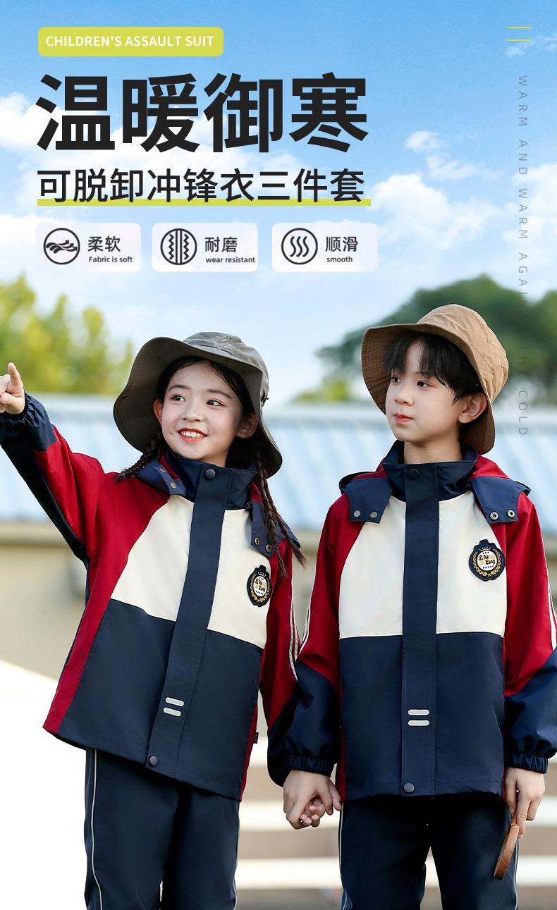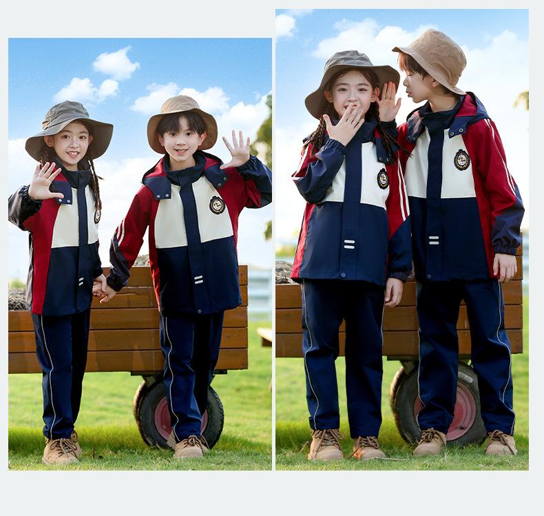 Uniforme escolar de primaria uniforme de clase cortavientos tres en uno de primavera y otoño más conjunto de terciopelo conjunto de tres piezas uniforme de jardín de infantes de otoño e invierno