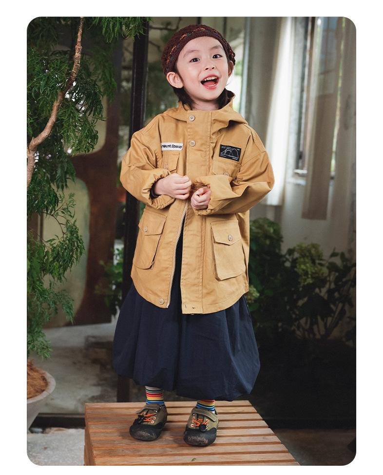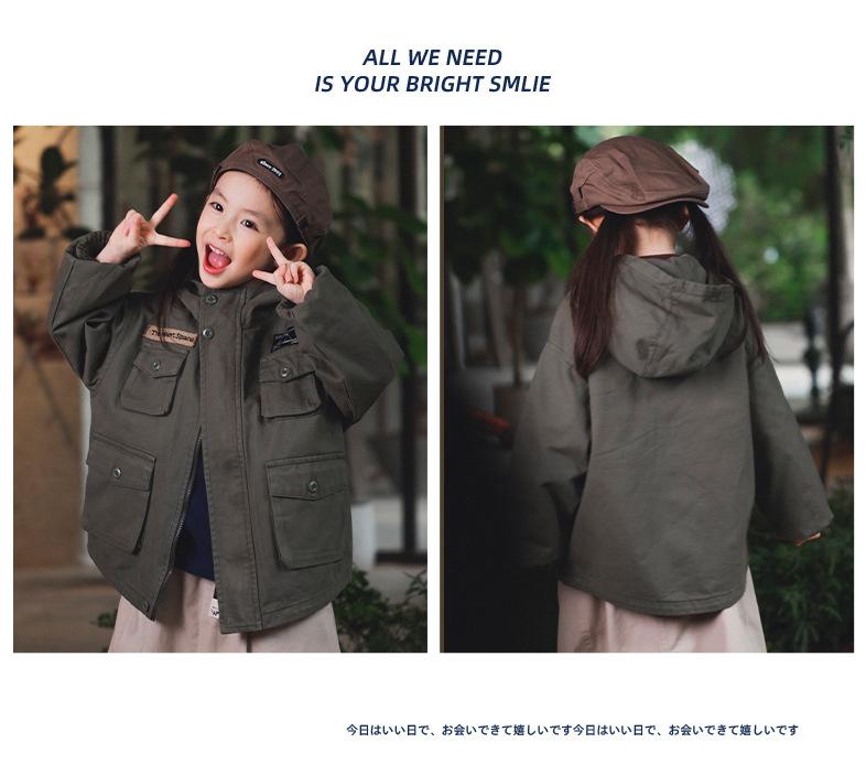 Ropa Infantil de Exterior Estilo Montaña Colección Otoño 2025 Chaqueta de Trabajo Infantil Multibolsillos Resistente al Desgaste Duradera Chaqueta con Capucha para Niñas