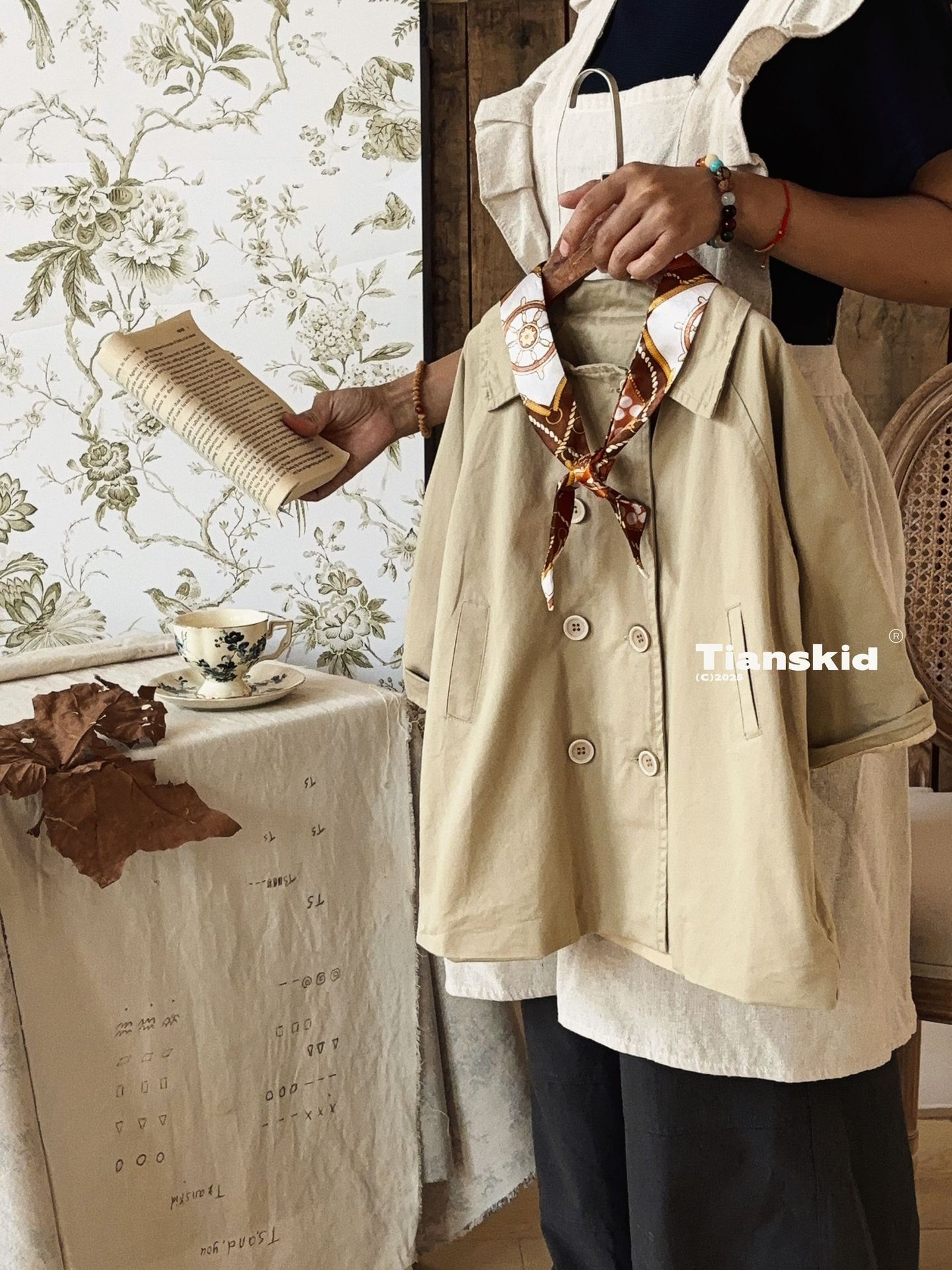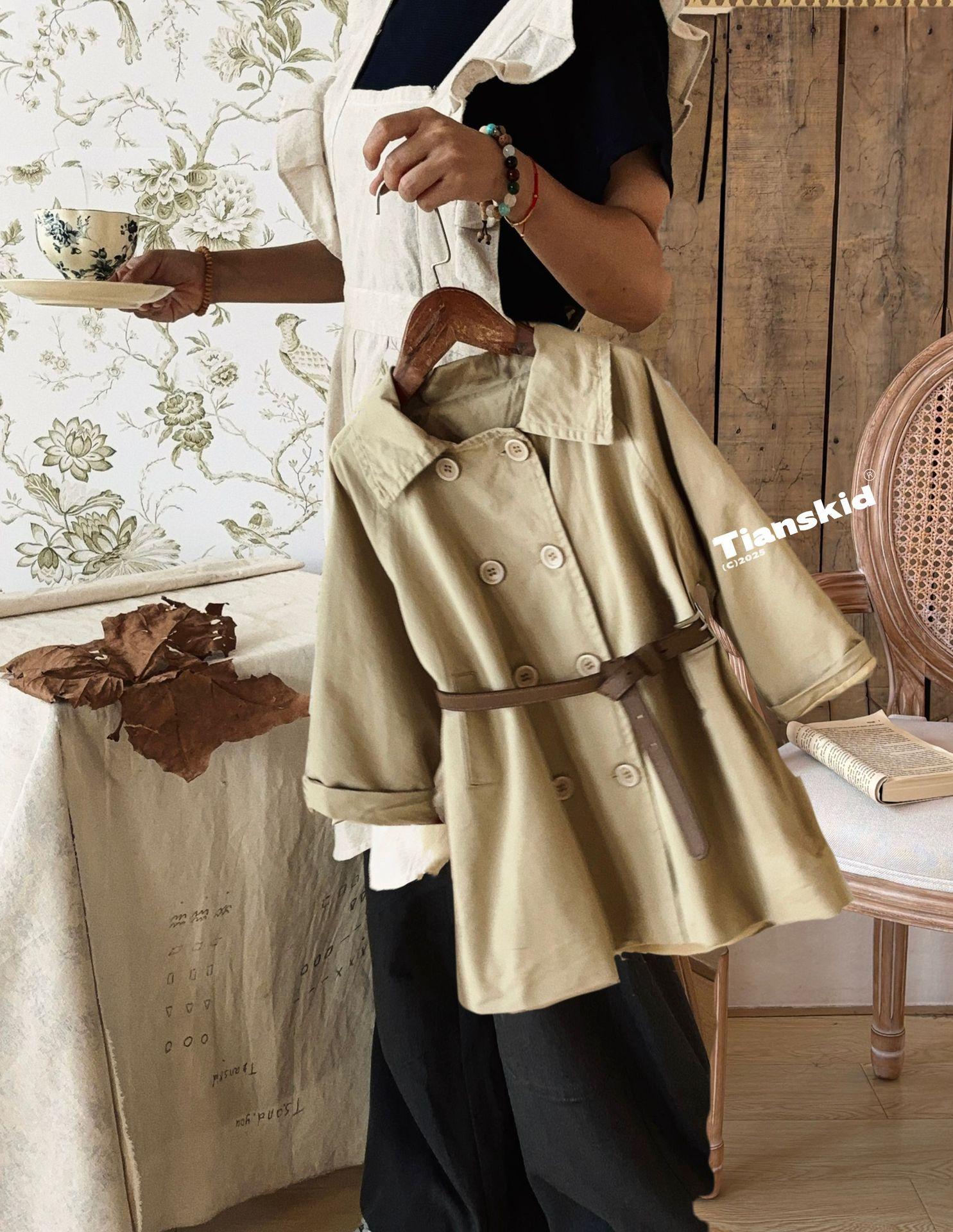 Gabardina Tianskid Otoño 2025, versátil, estilo coreano, color albaricoque claro, 72190